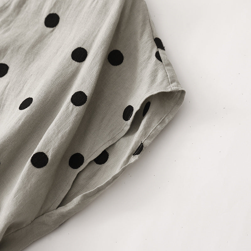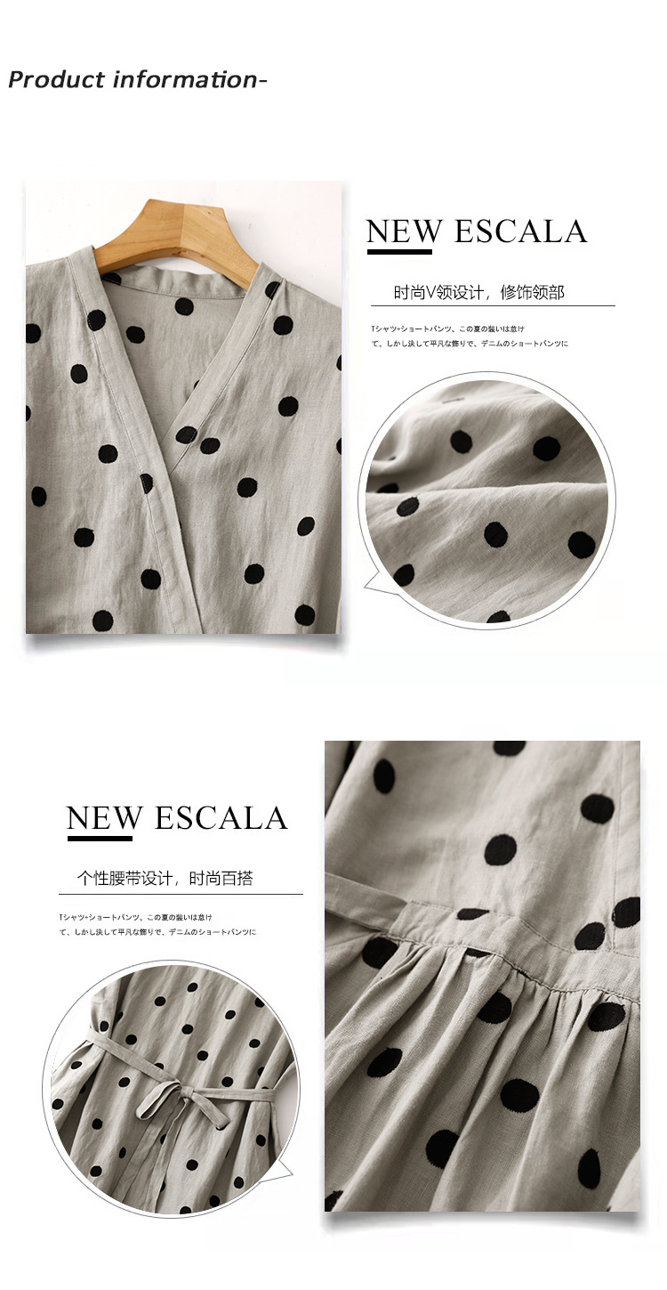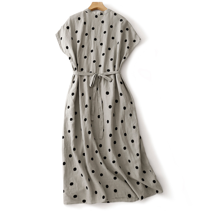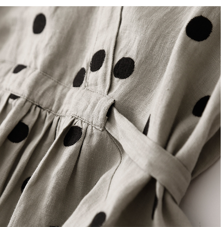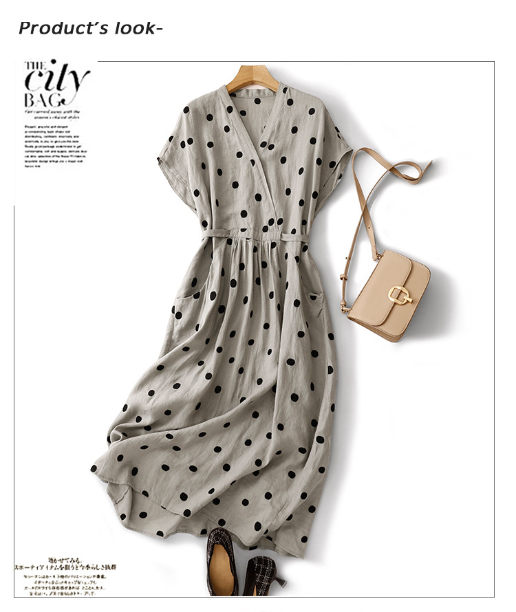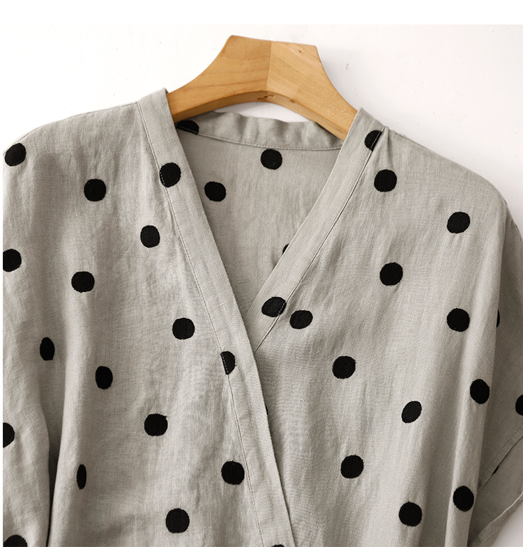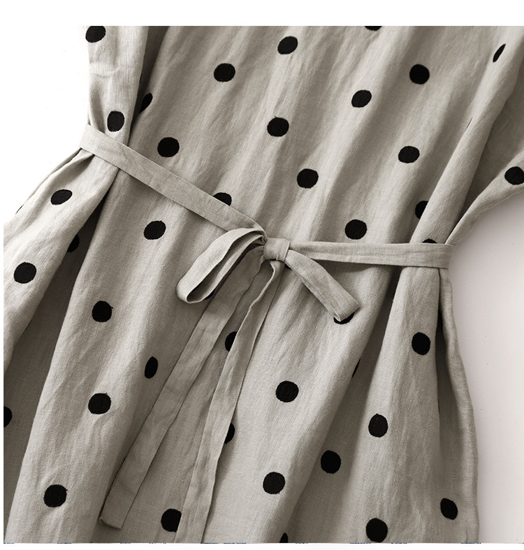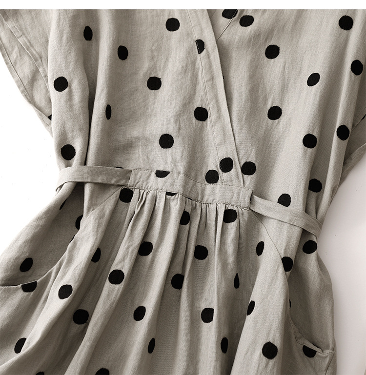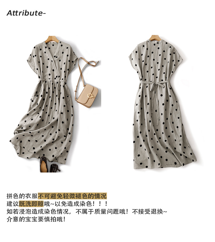 Real shot 2025 summer new cotton and linen literary and retro loose V-neck short-sleeved dress women's medium and long #9552