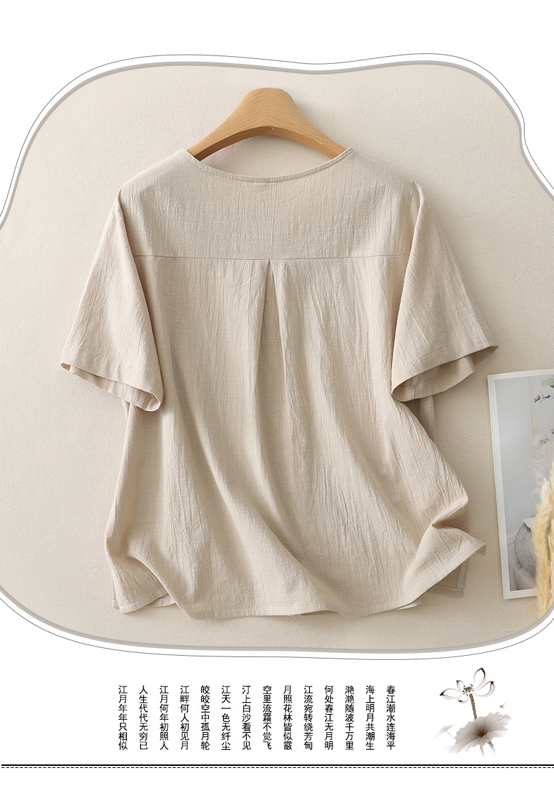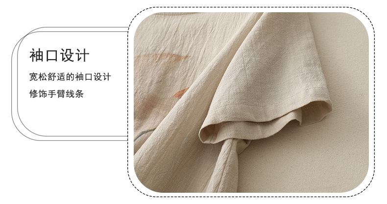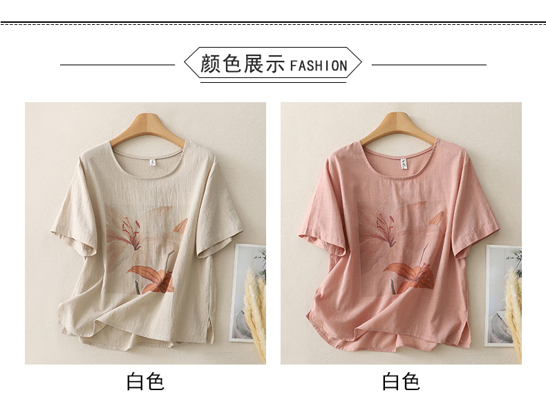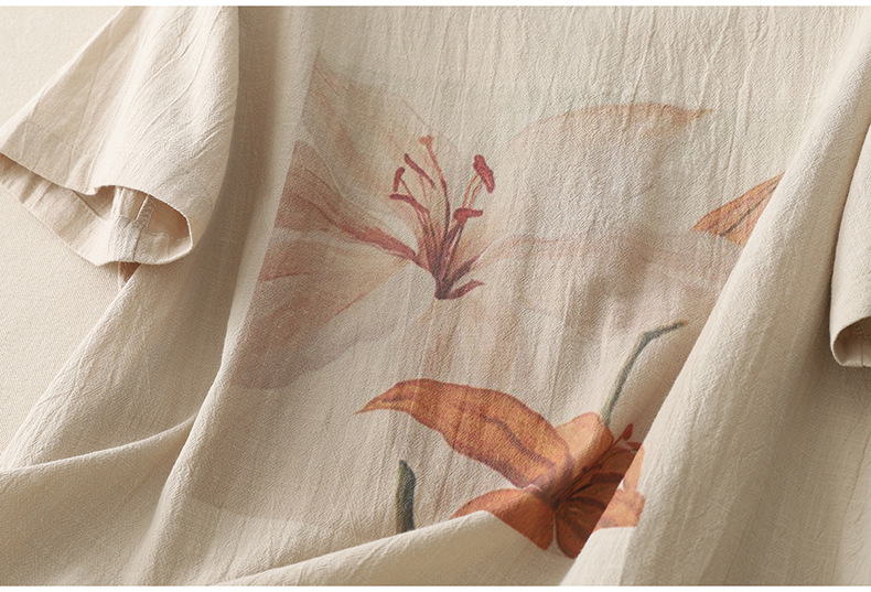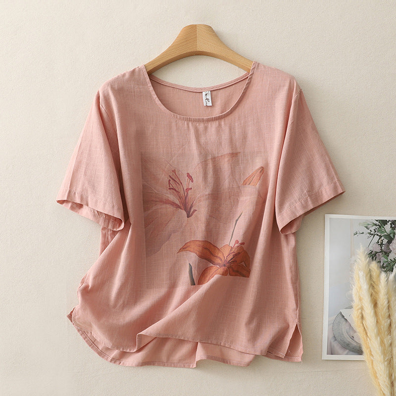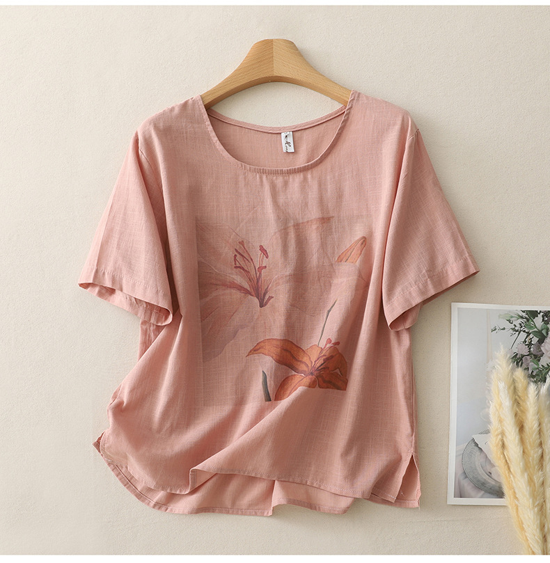 Real shot 2025 summer new cotton and linen literary and retro printing loose casual short-sleeved top T-shirt women