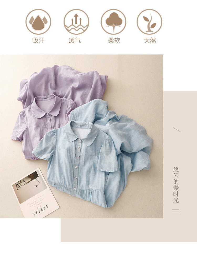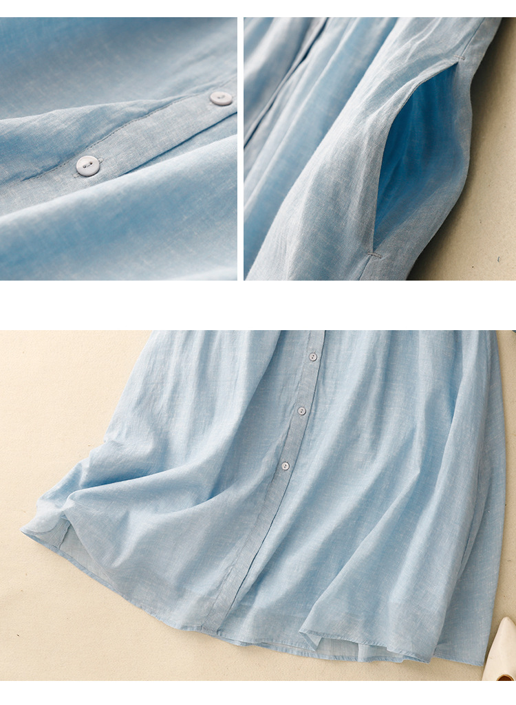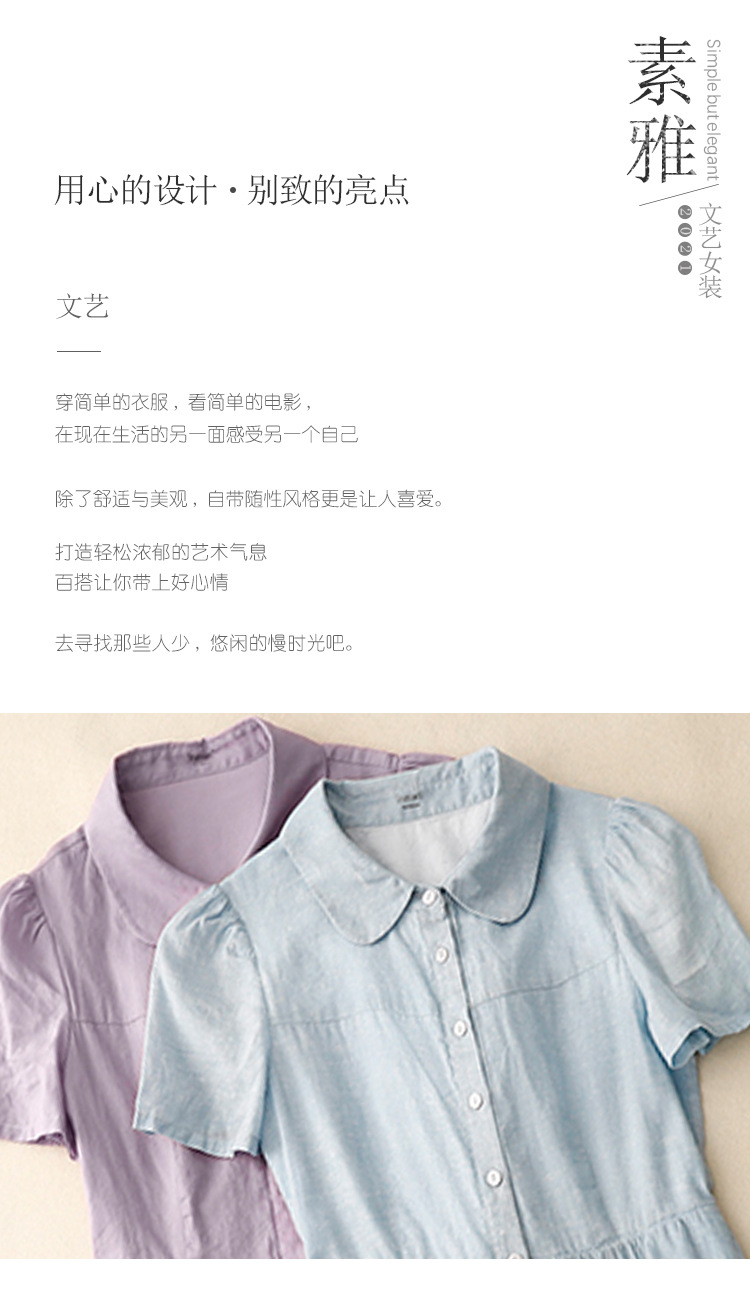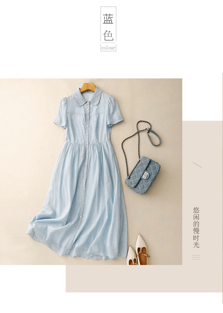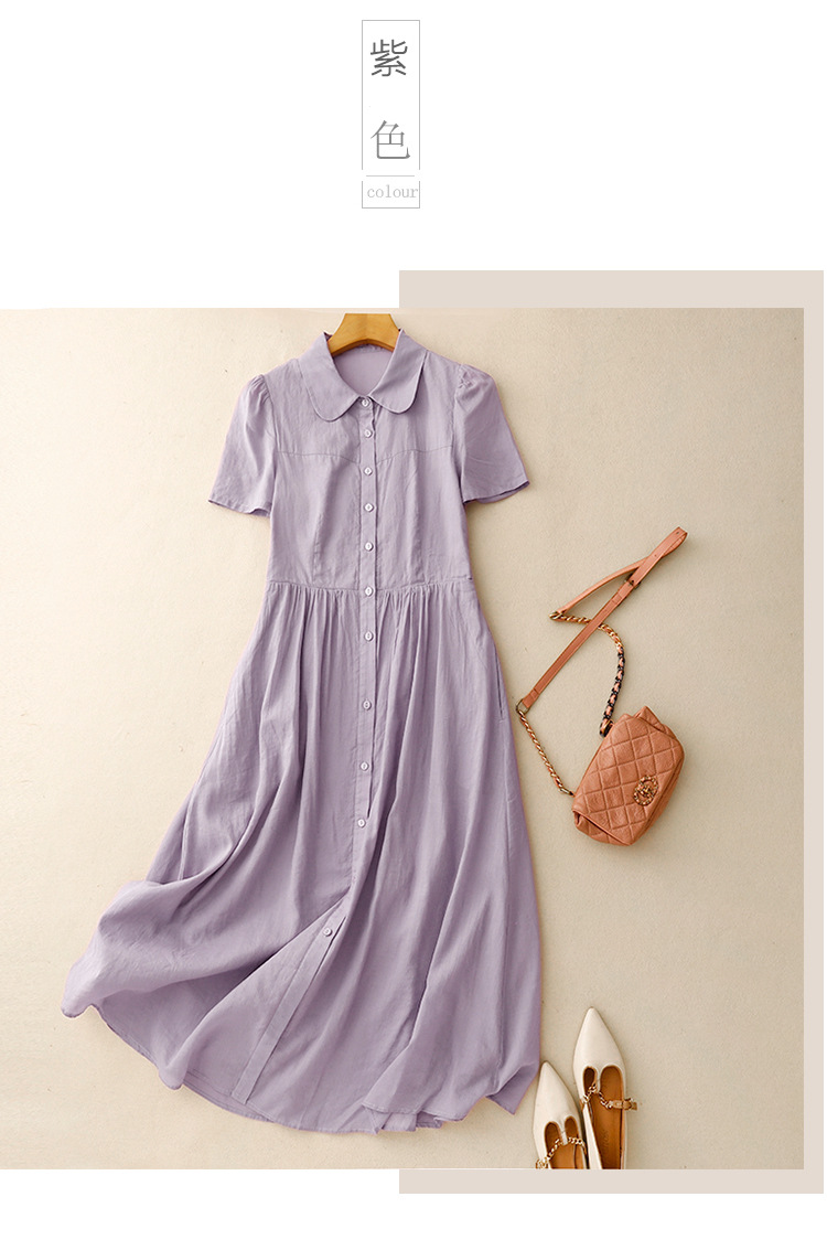 Real shot 2025 summer new cotton and linen literary loose casual large size doll collar dress women's clothing