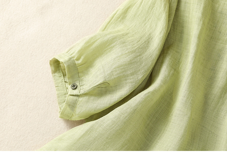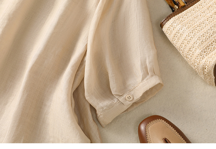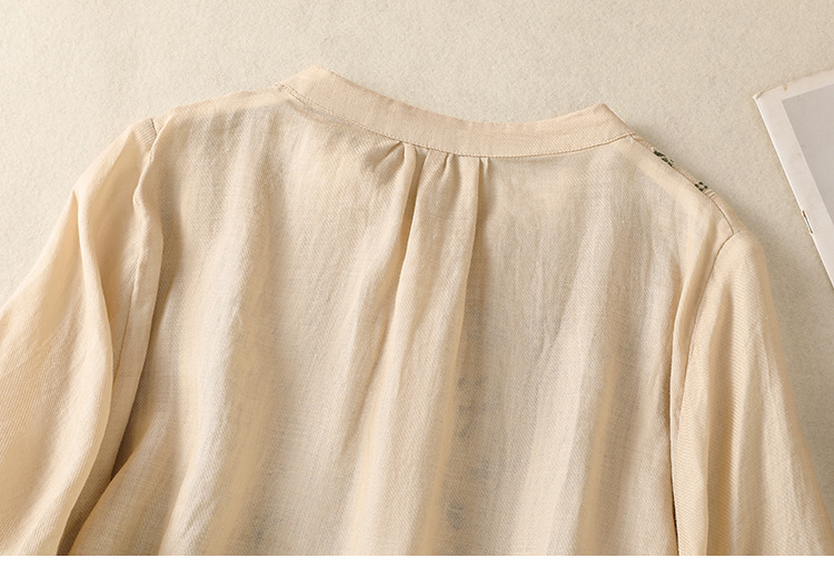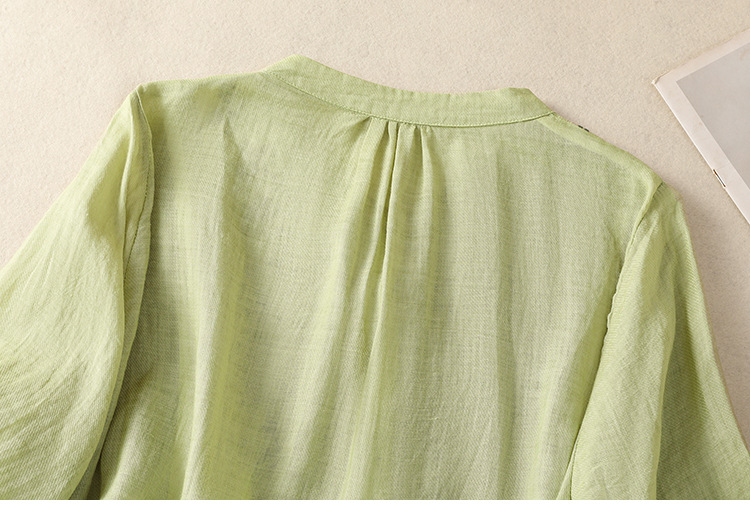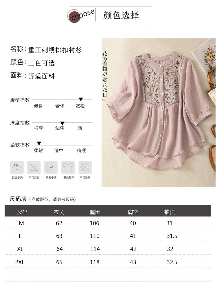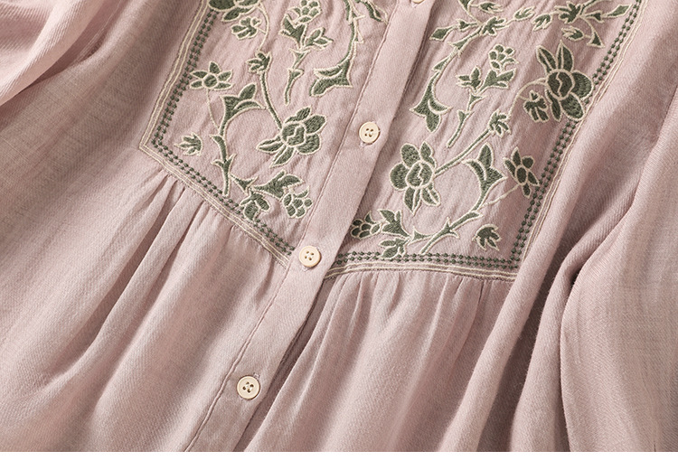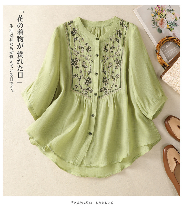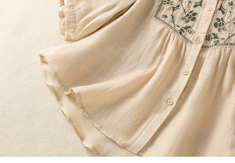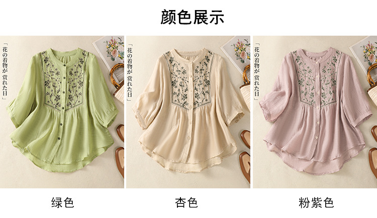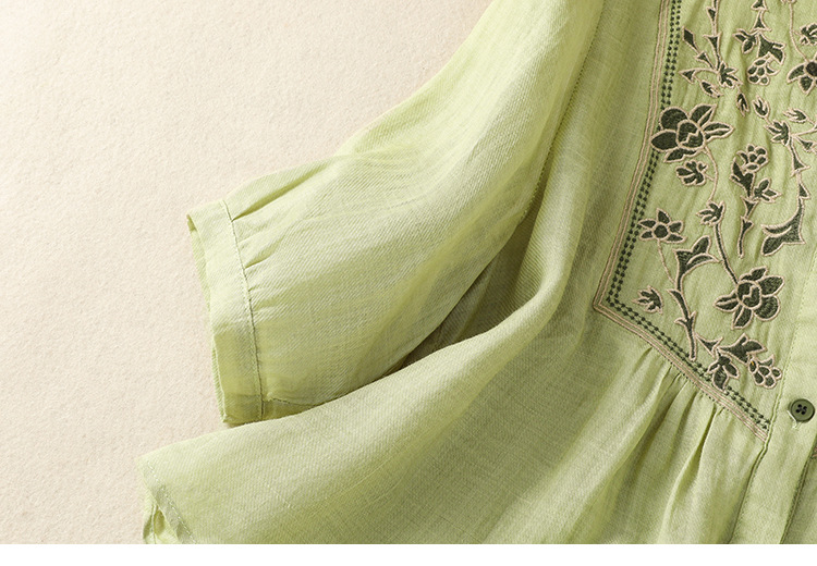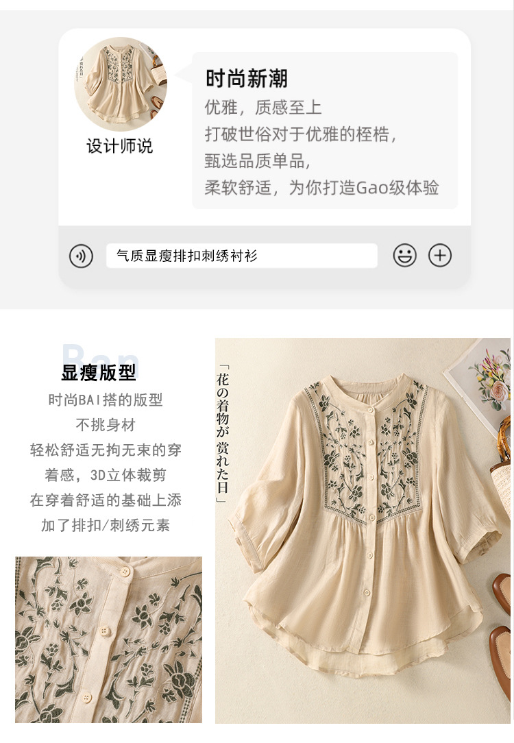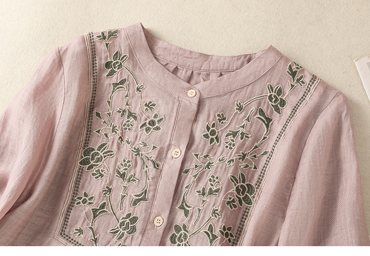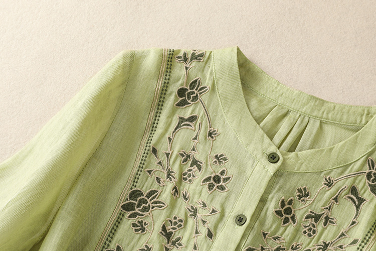 Real shot 2025 summer new cotton and linen literary retro embroidery stand-up collar single-breasted shirt embroidered top women