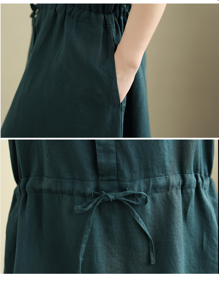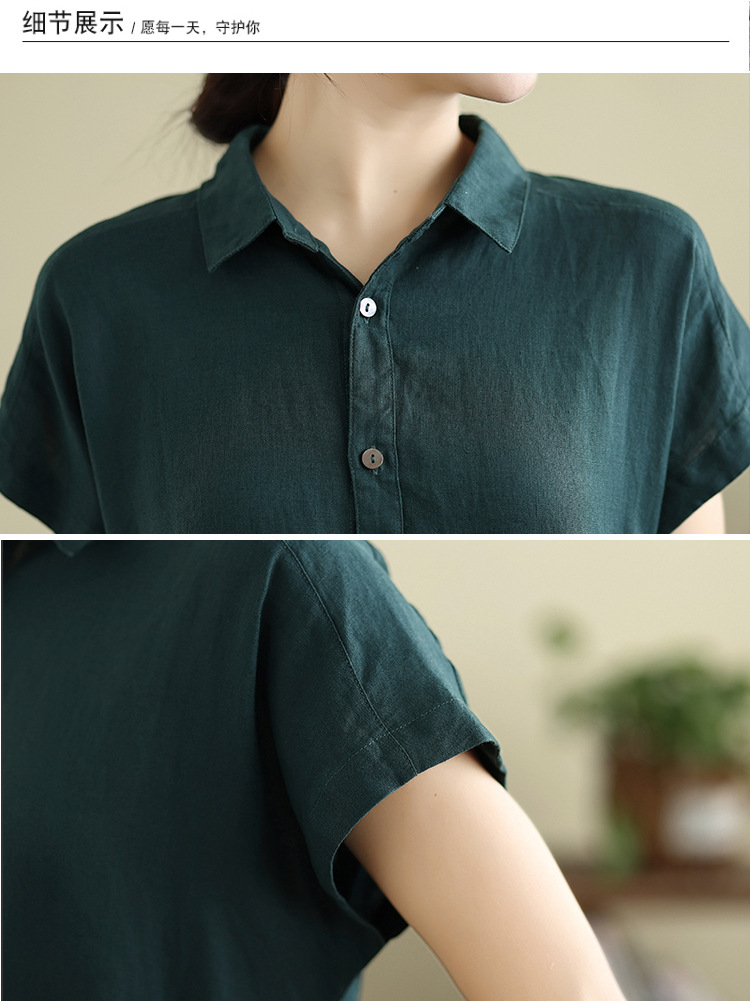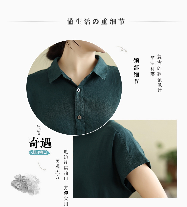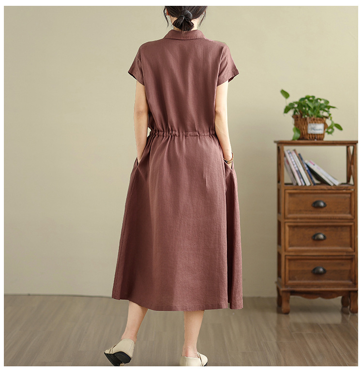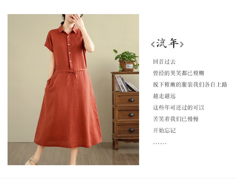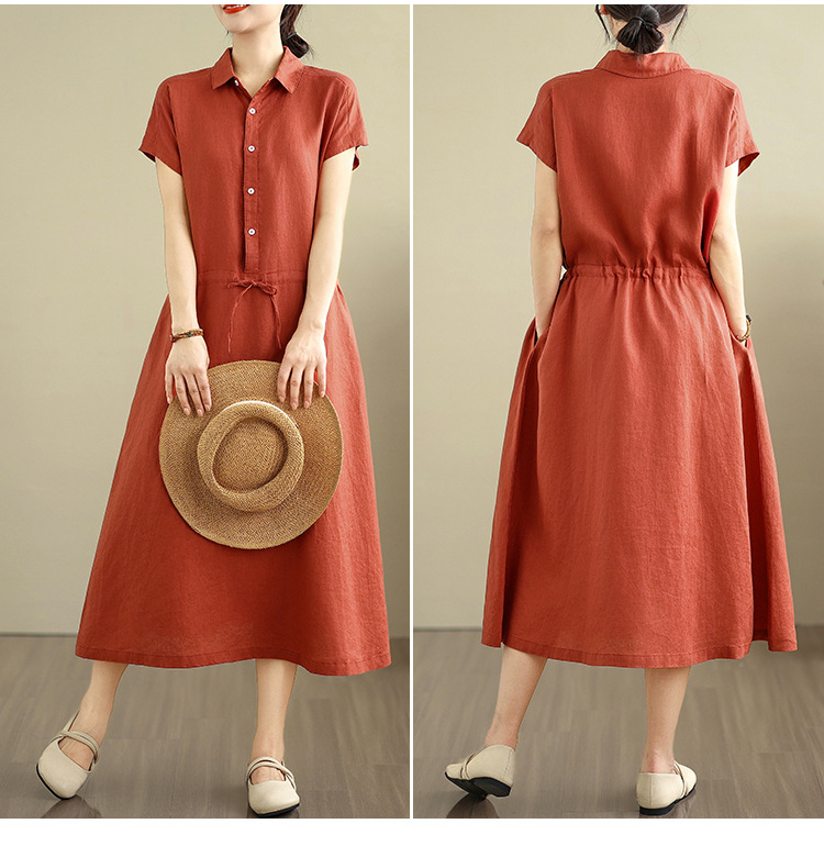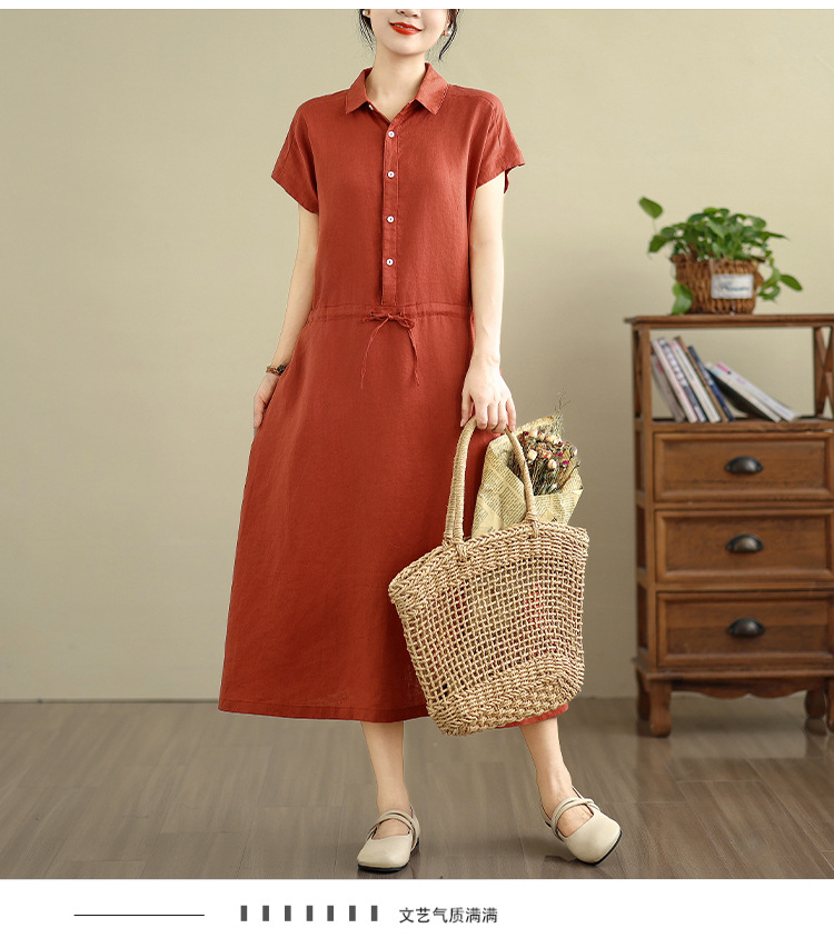 Real shot 2025 summer new cotton and linen shirt dress short sleeve lapel simple commuter shirt skirt women's clothing
