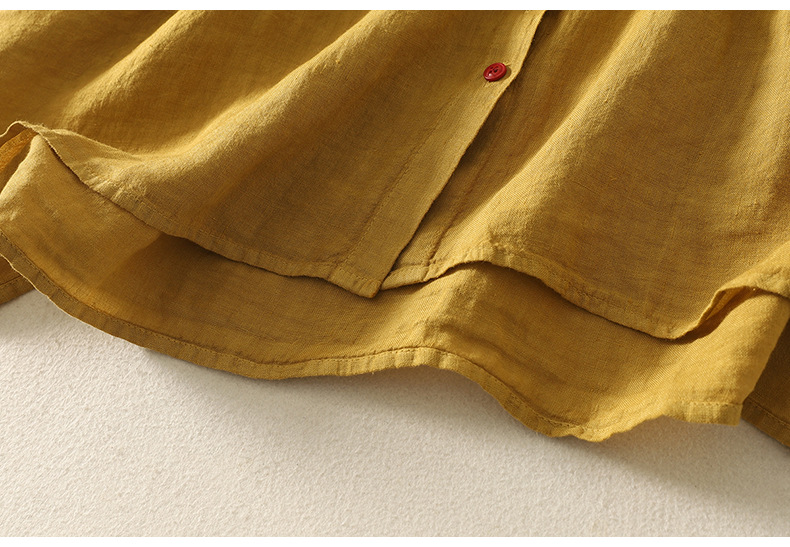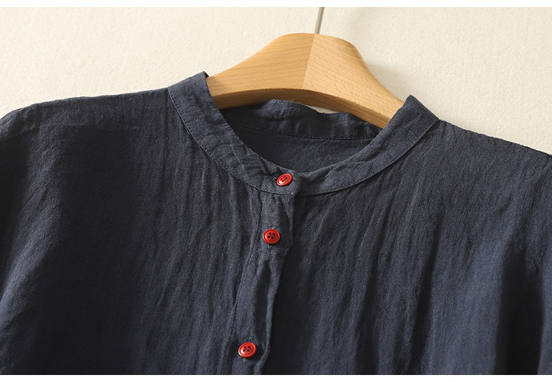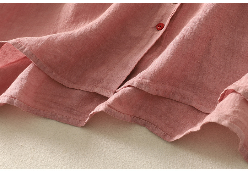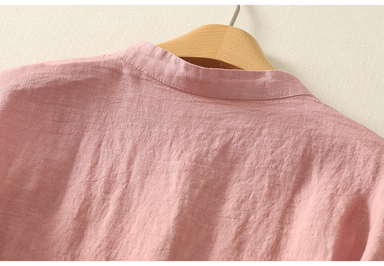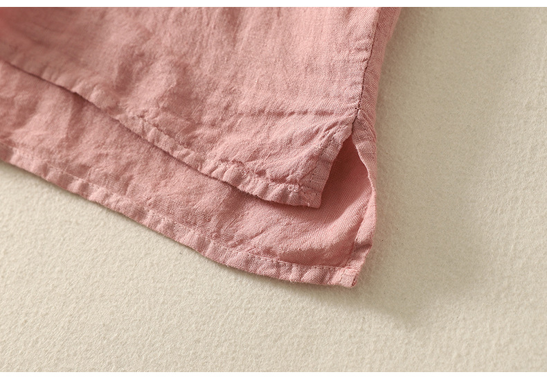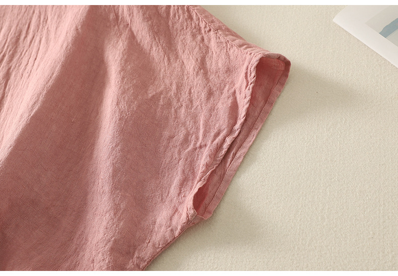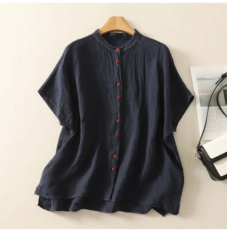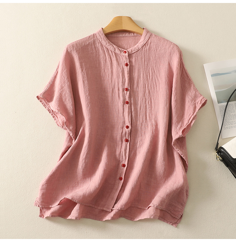Real shot 2025 summer new cotton and linen solid color Chinese style large size loose casual short-sleeved shirt top women