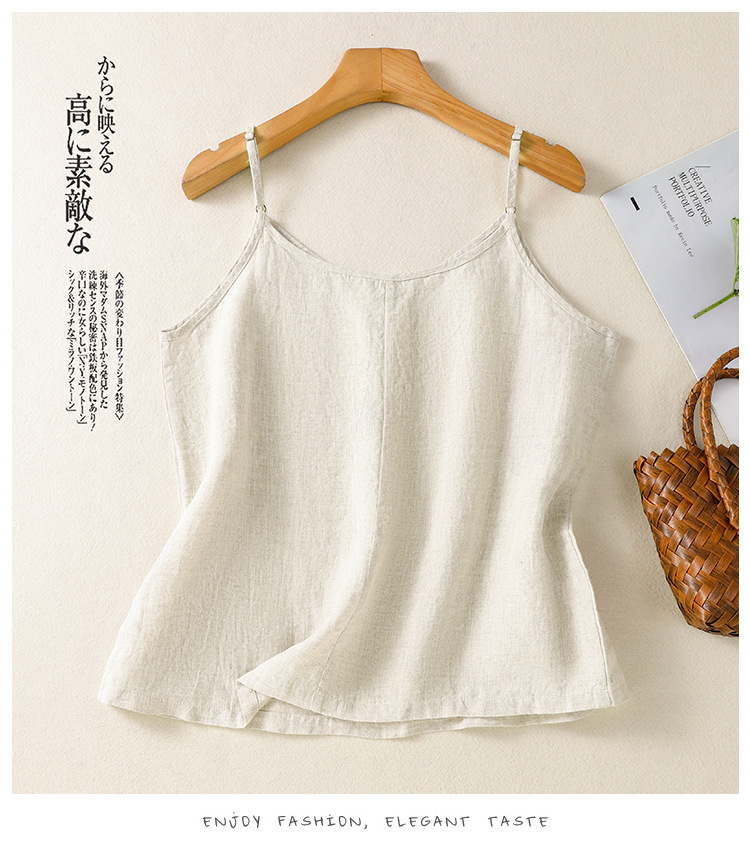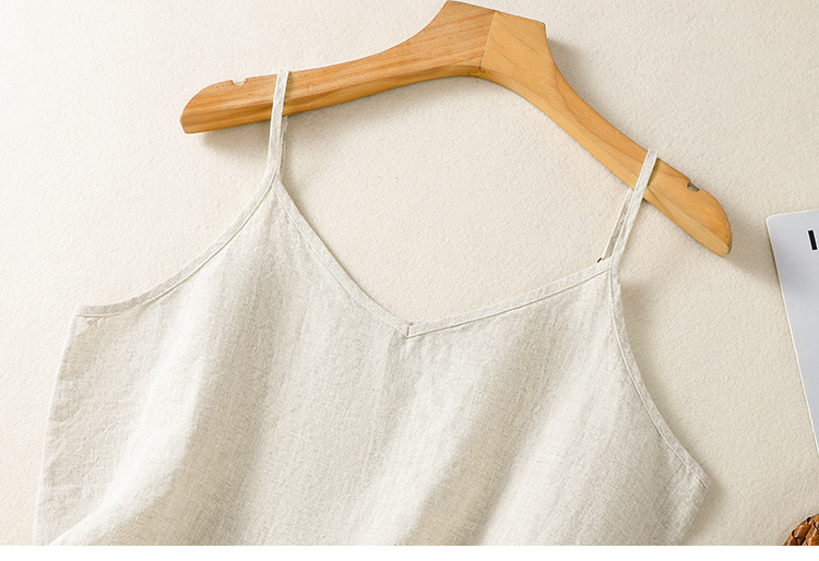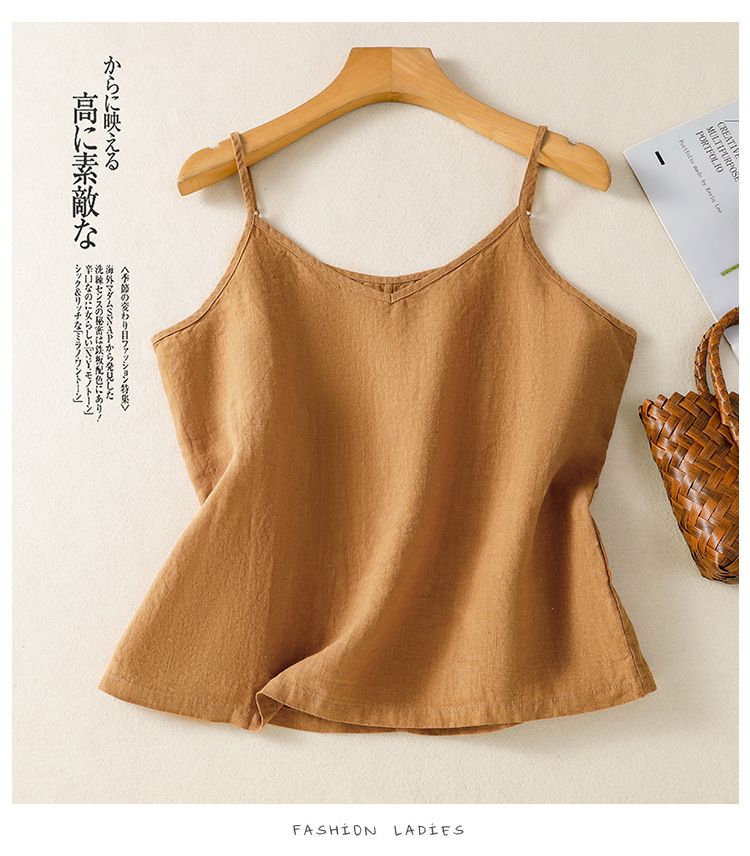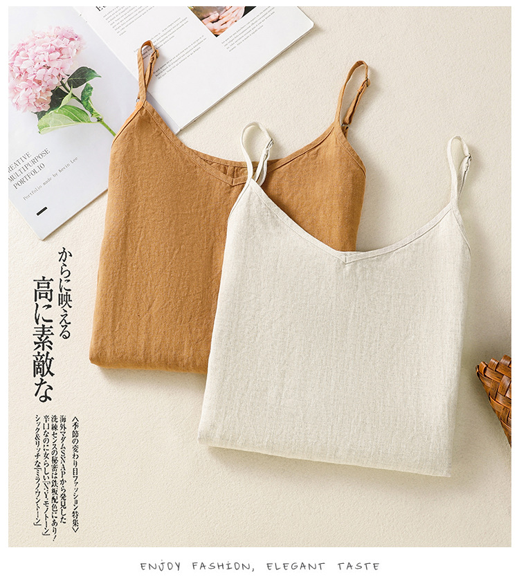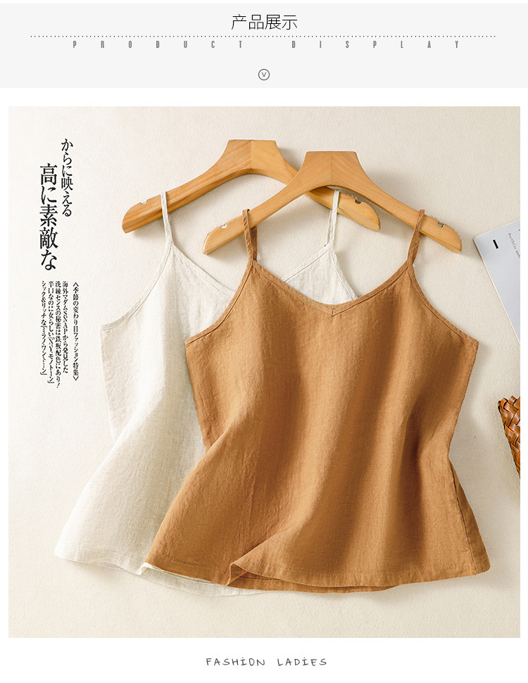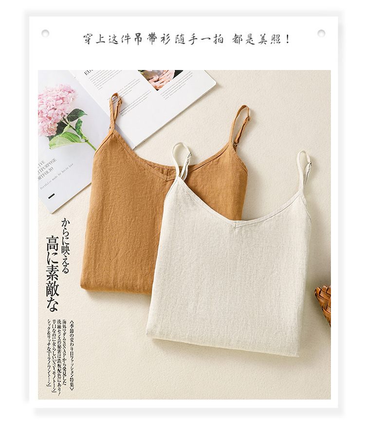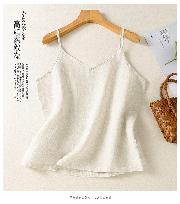 Real shot 2025 summer new cotton and linen V-neck adjustable shoulder strap simple suspender vest top women