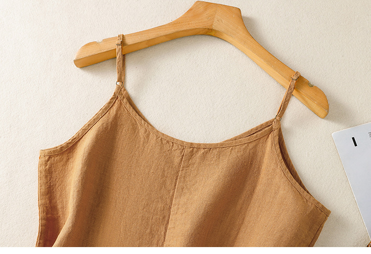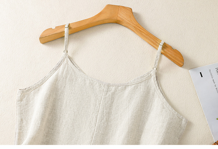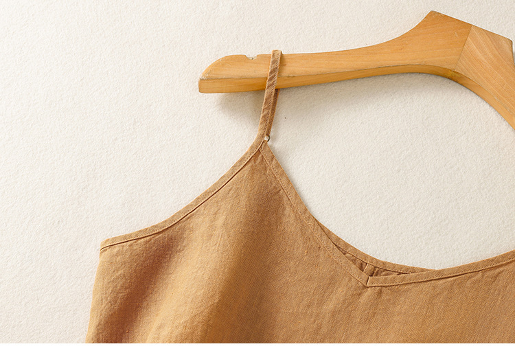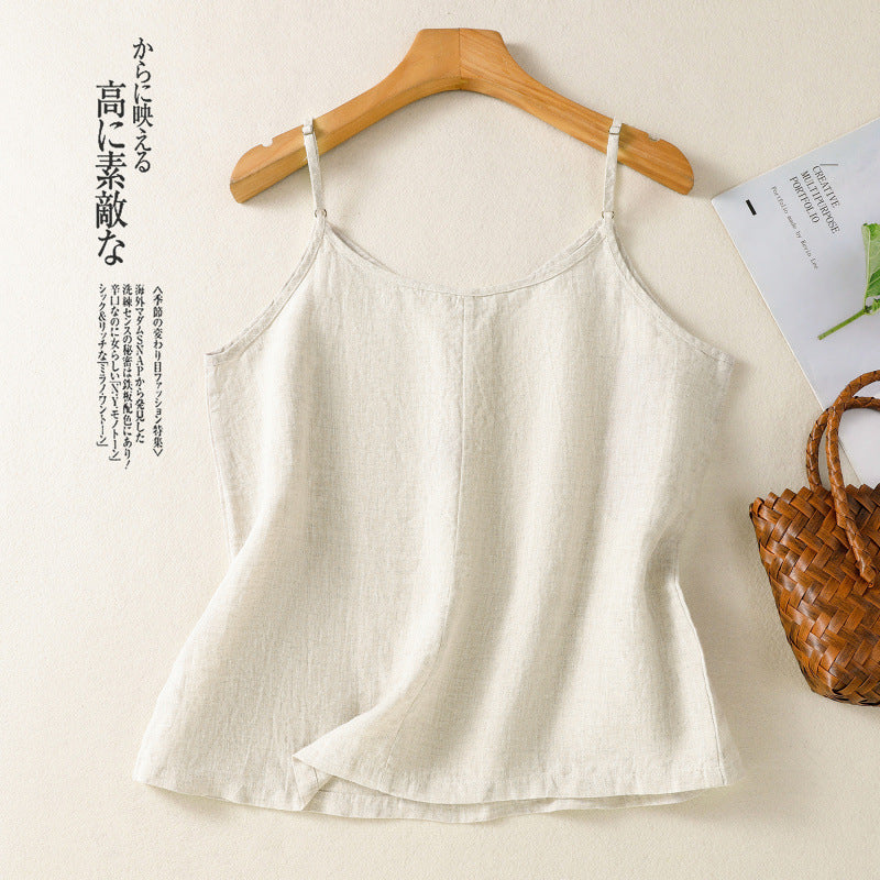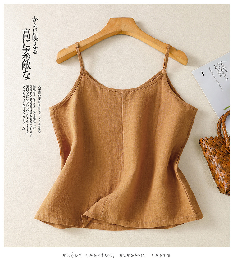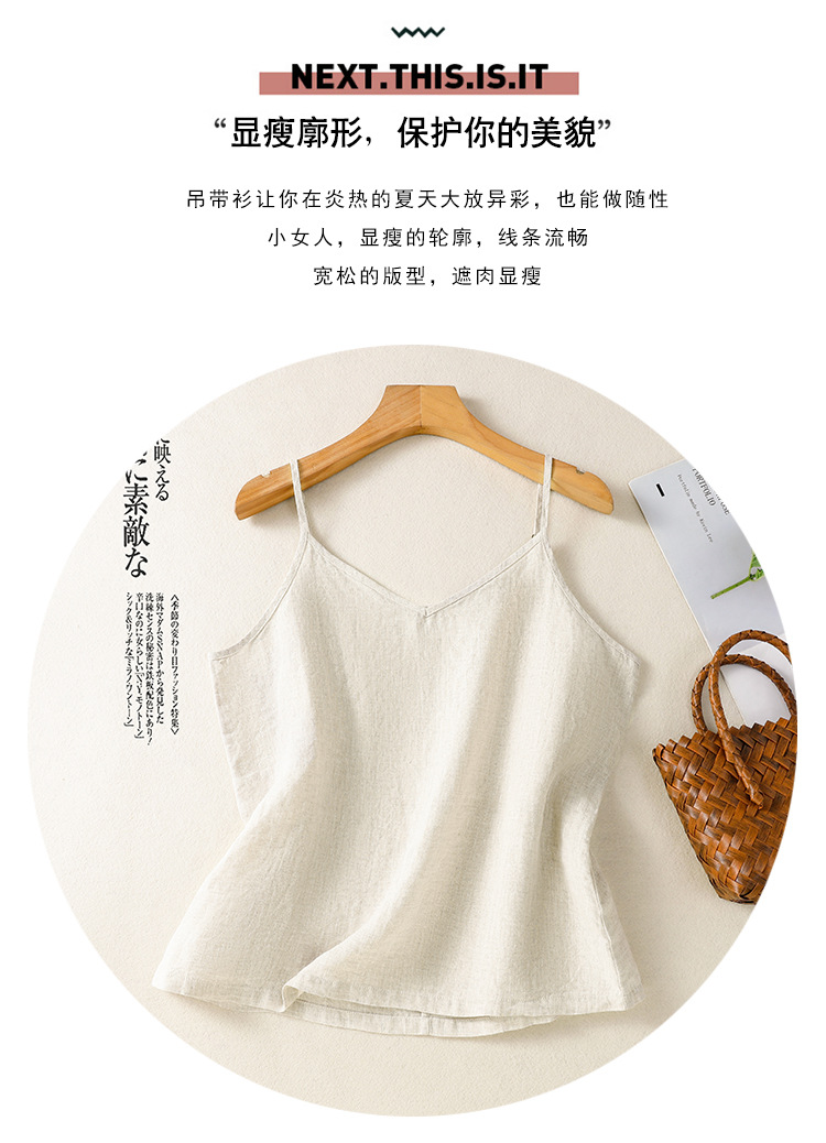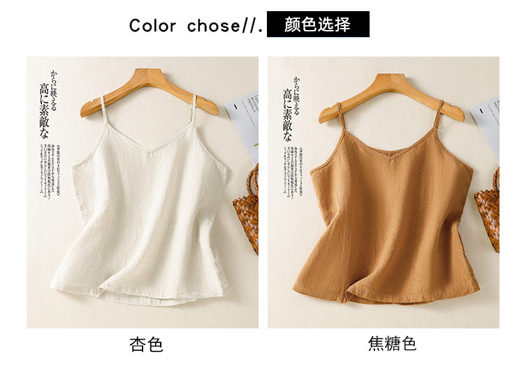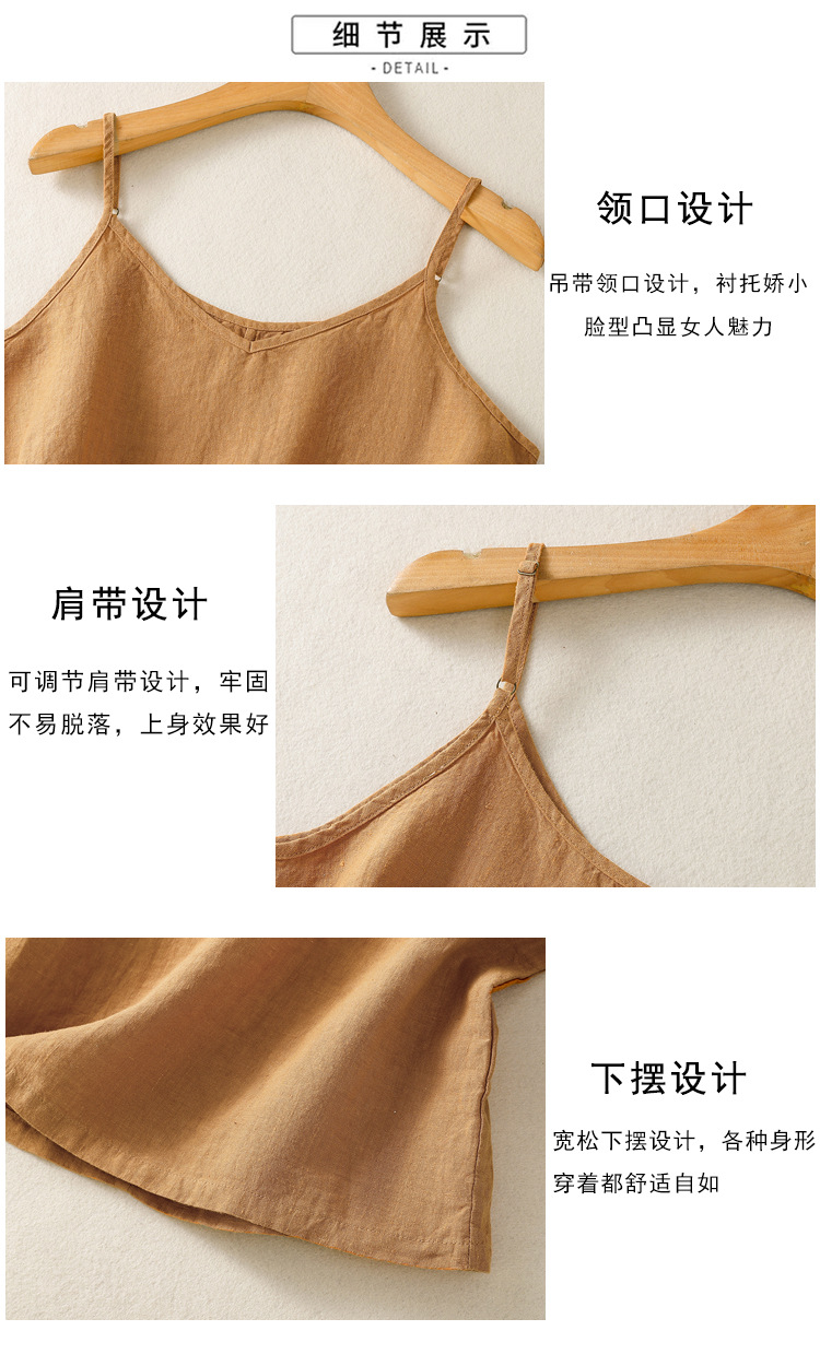 Real shot 2025 summer new cotton and linen V-neck adjustable shoulder strap simple suspender vest top women