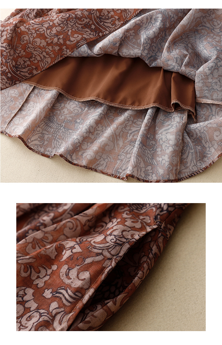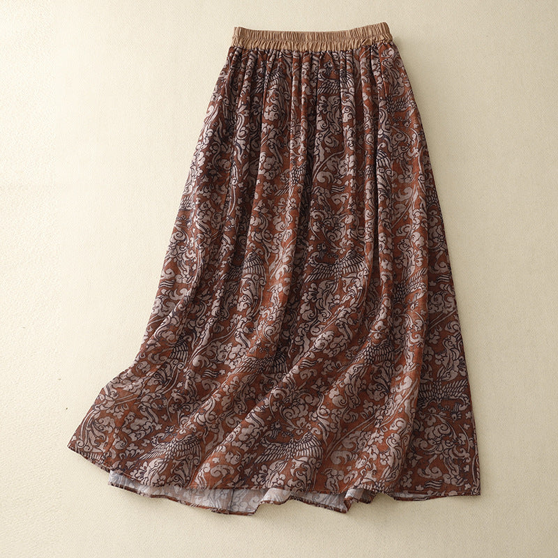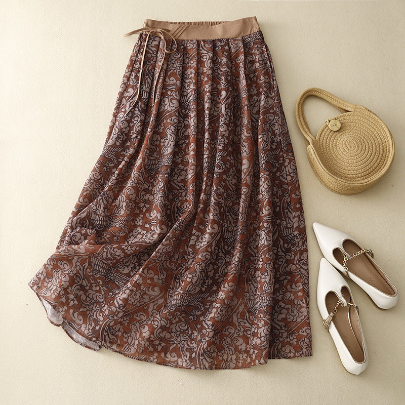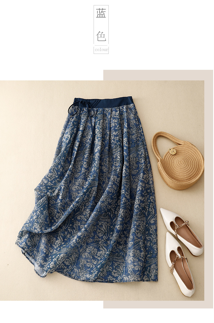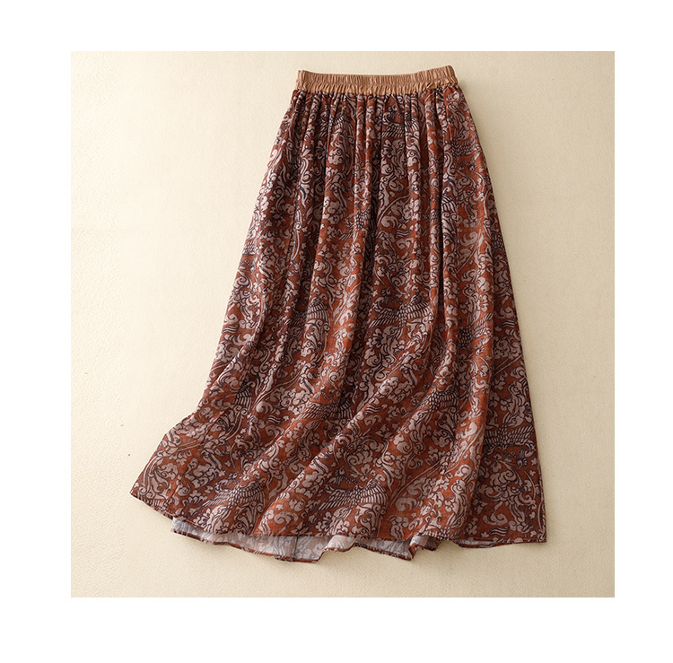 Real shot 2025 summer new literary and retro floral elastic waist skirt medium and long A-shaped skirt women #6611