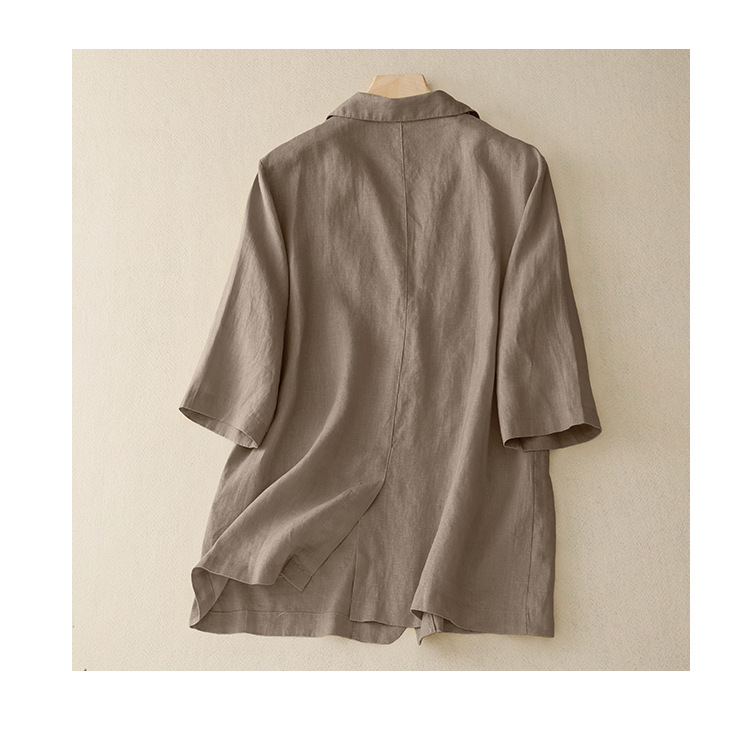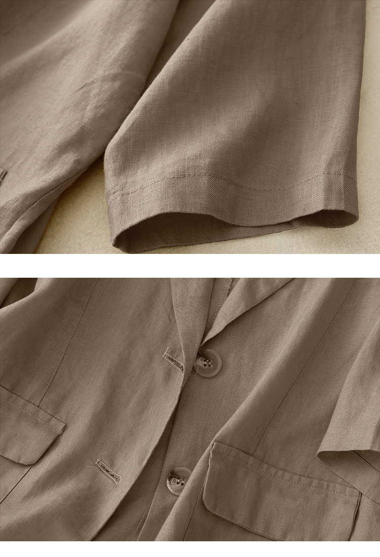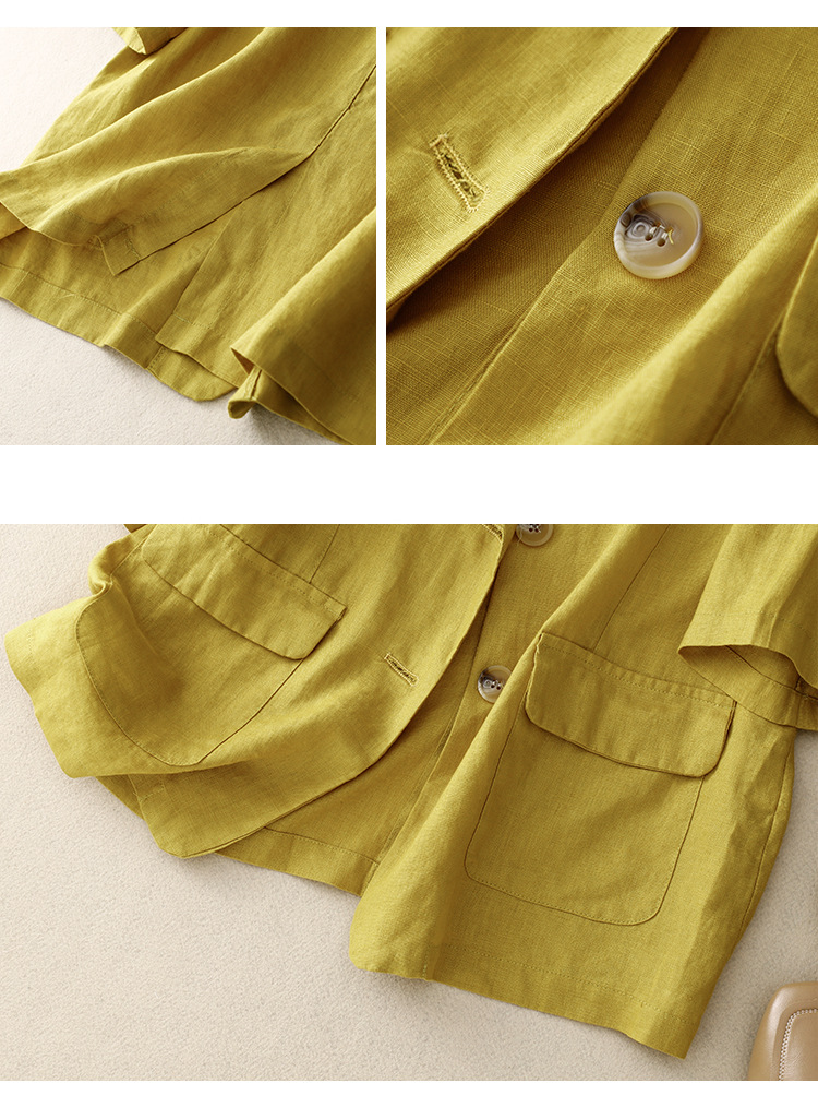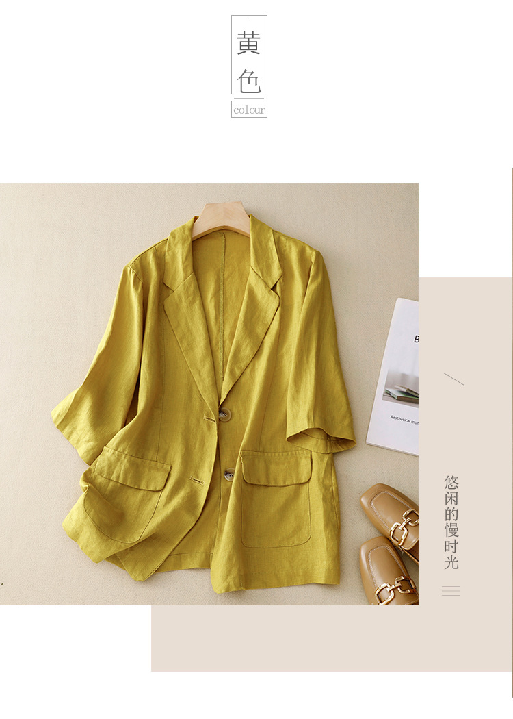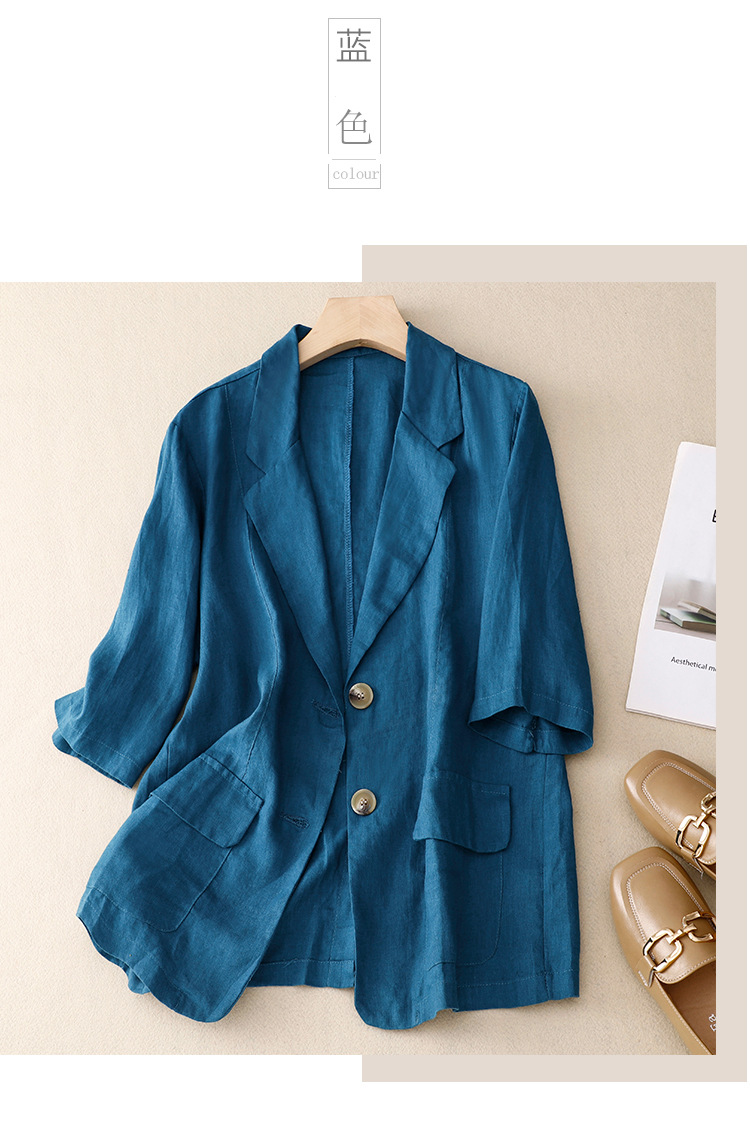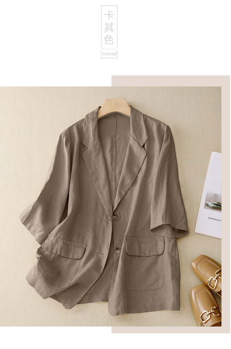 Real shot 2025 summer new literary and retro loose casual seven-quarter sleeve button short jacket women's small suit