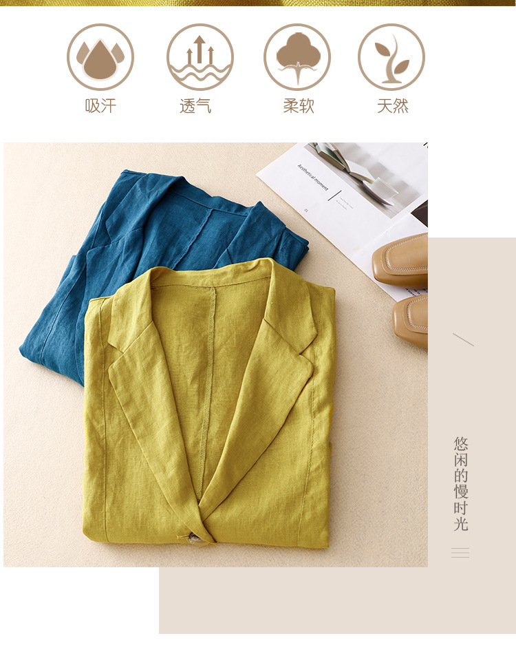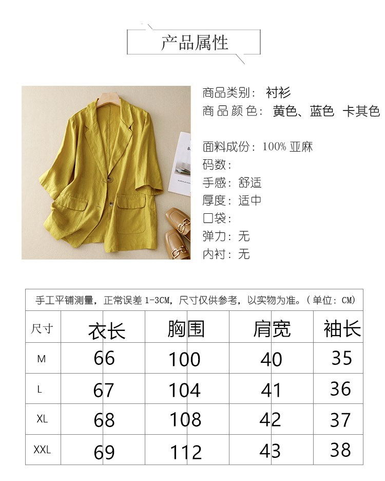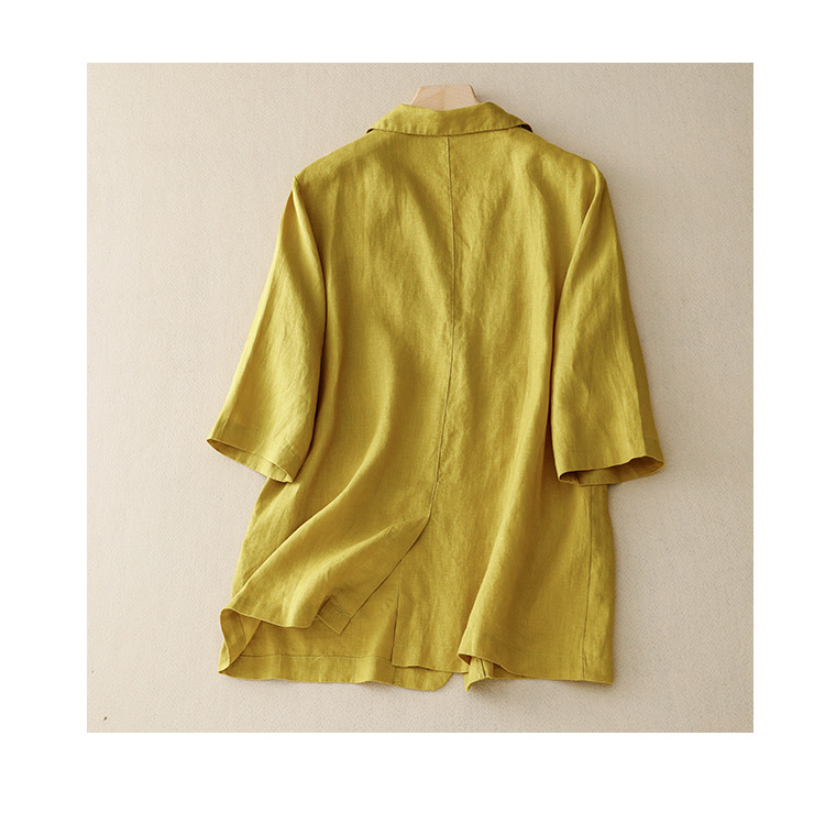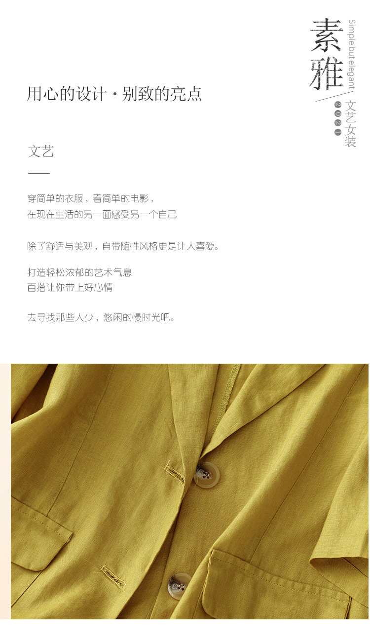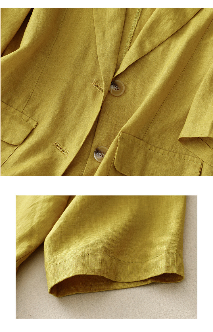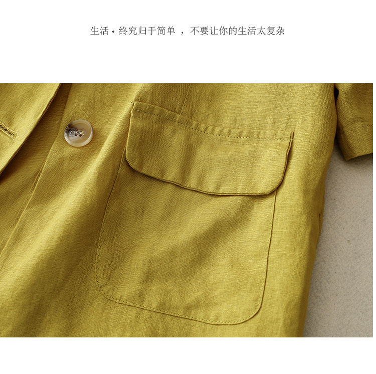 Real shot 2025 summer new literary and retro loose casual seven-quarter sleeve button short jacket women's small suit