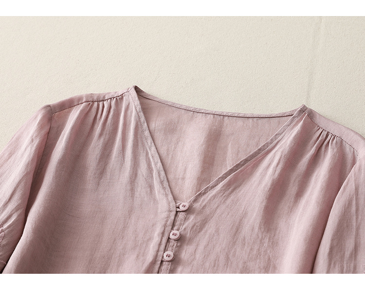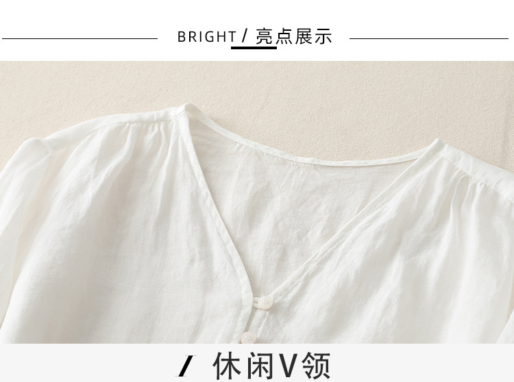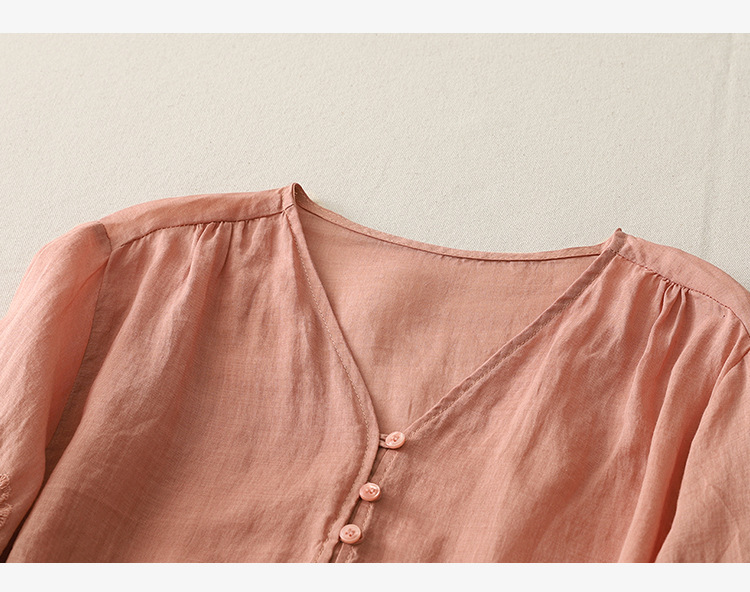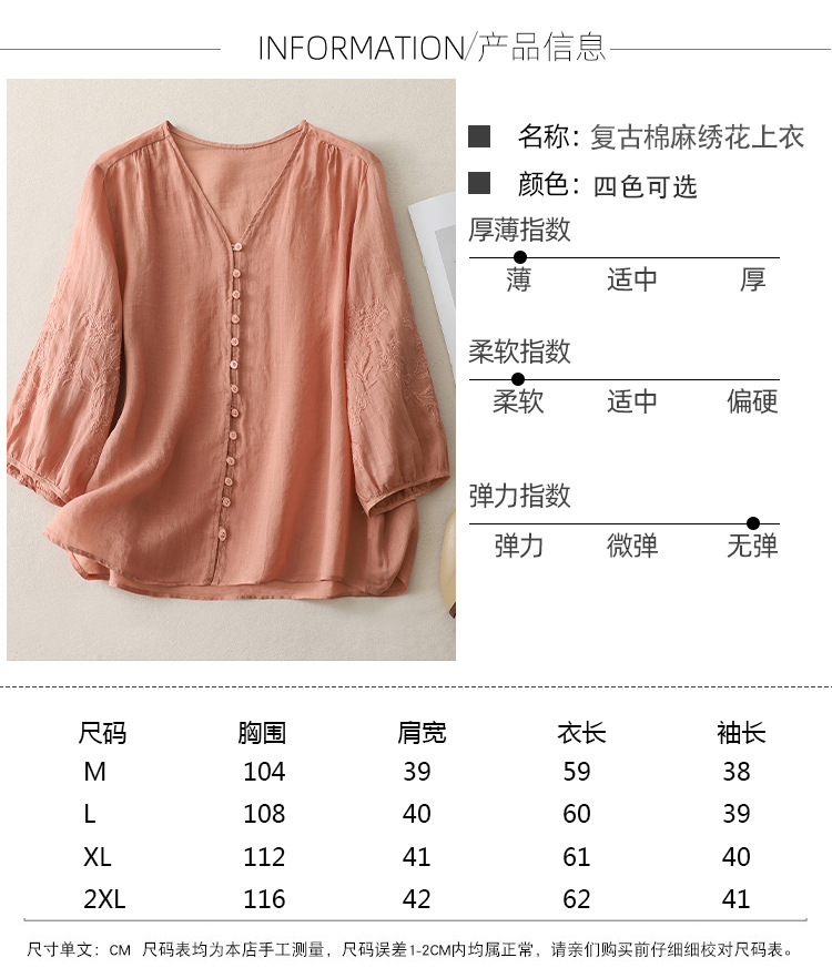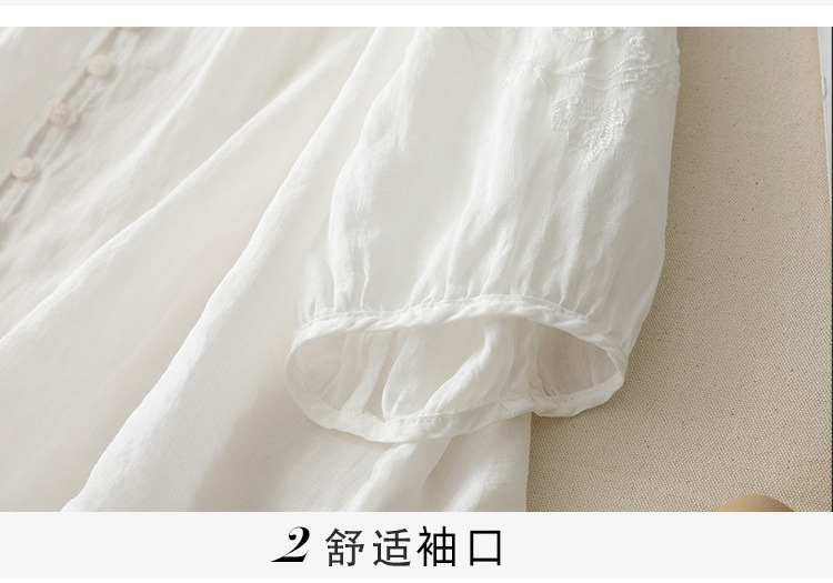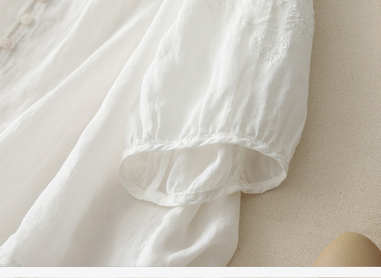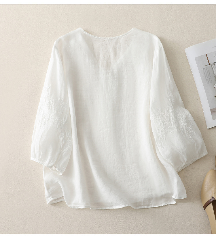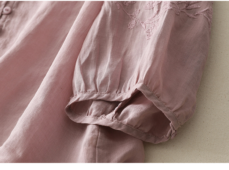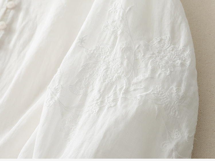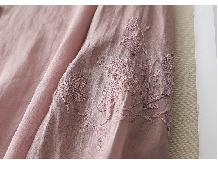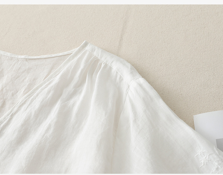 Real shot 2025 summer new literary embroidery button shirt V-neck cardigan cotton and linen shirt top women's clothing