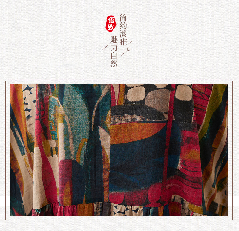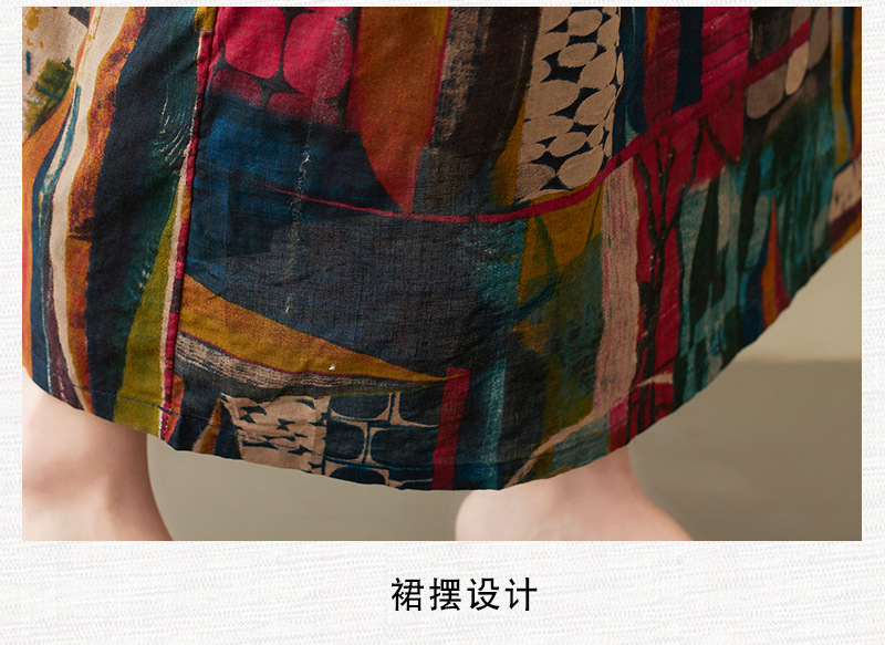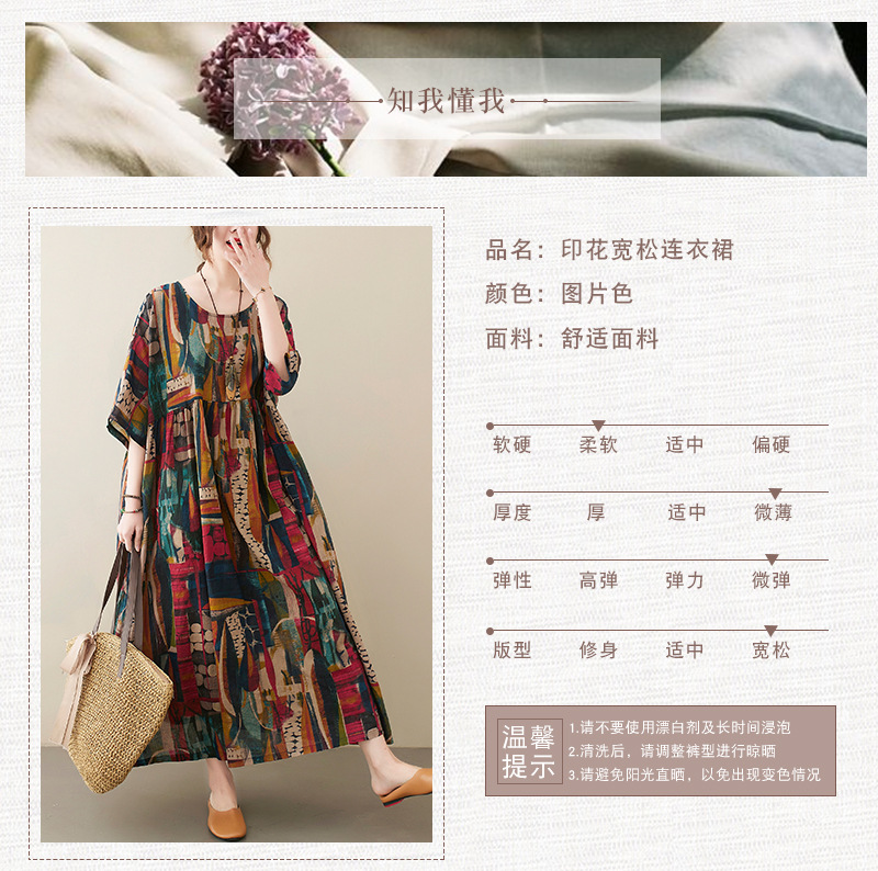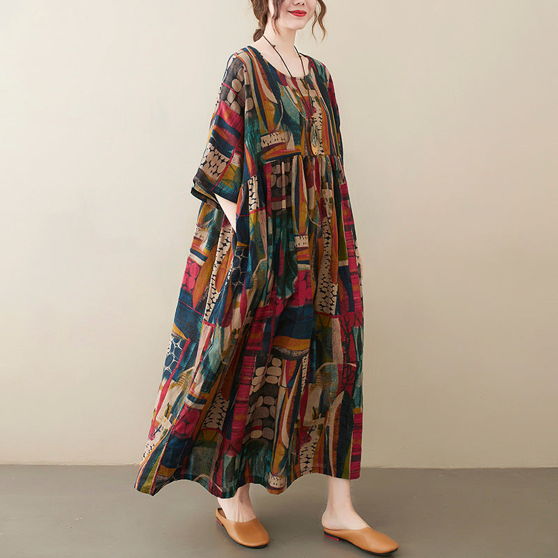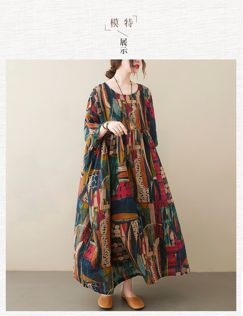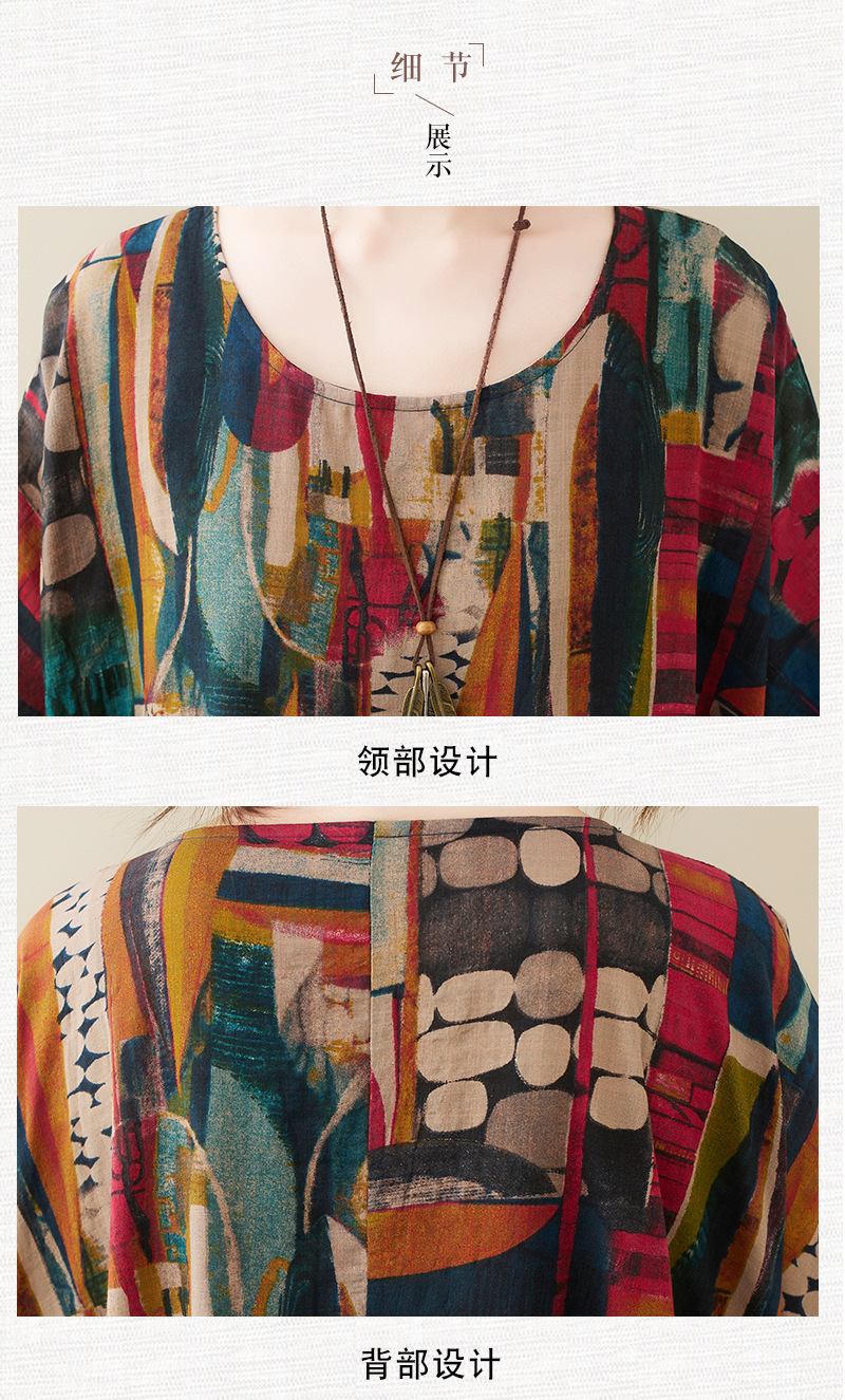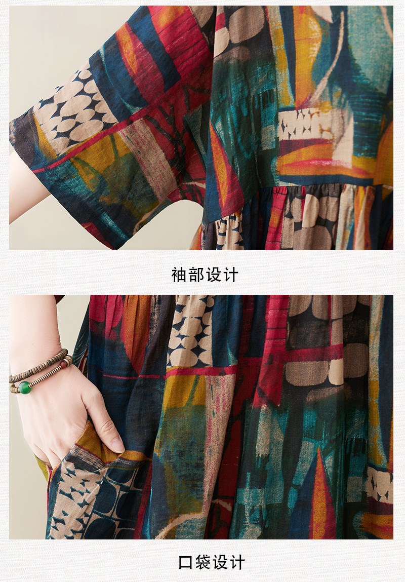 Real shot 2025 summer new literary large size loose printing round neck short sleeve dress women's long dress 6040 #