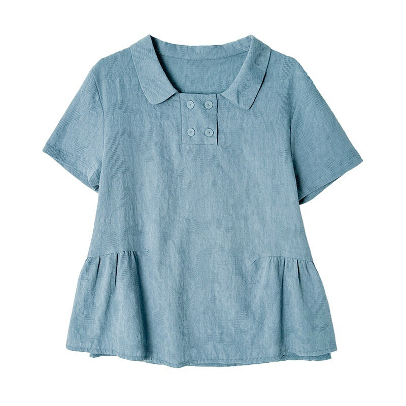 Real shot 2025 summer new literary loose jacquard cotton and linen lapel short-sleeved shirt blouse top #2308