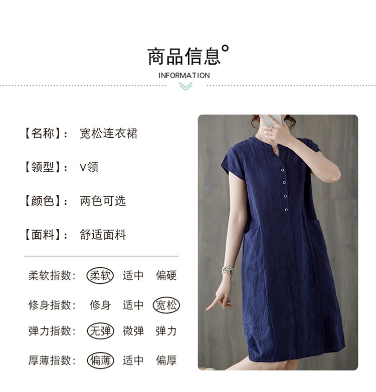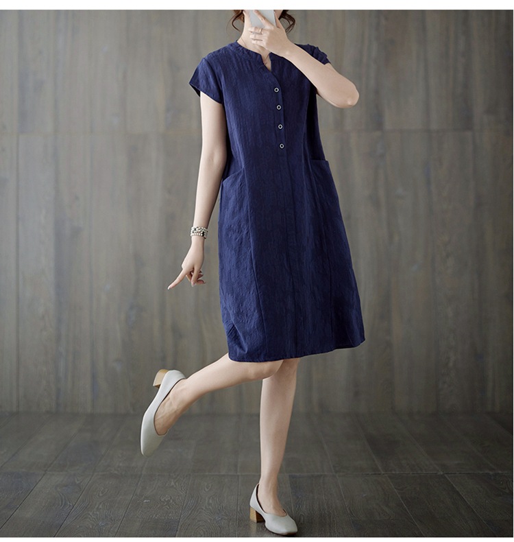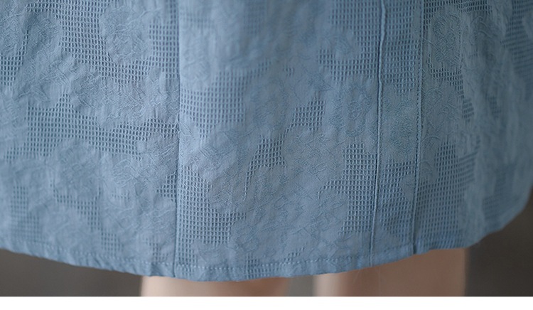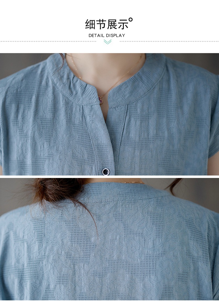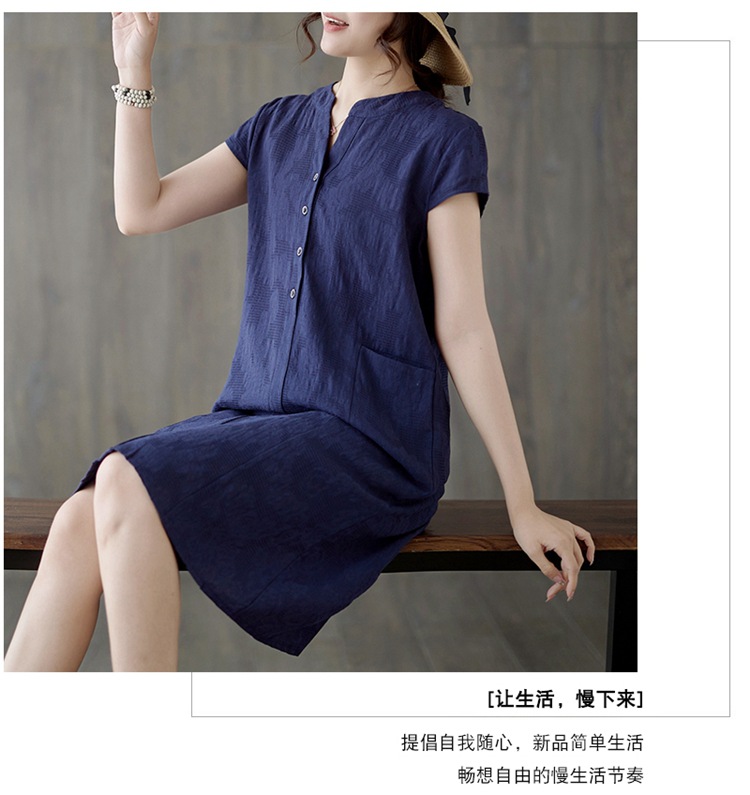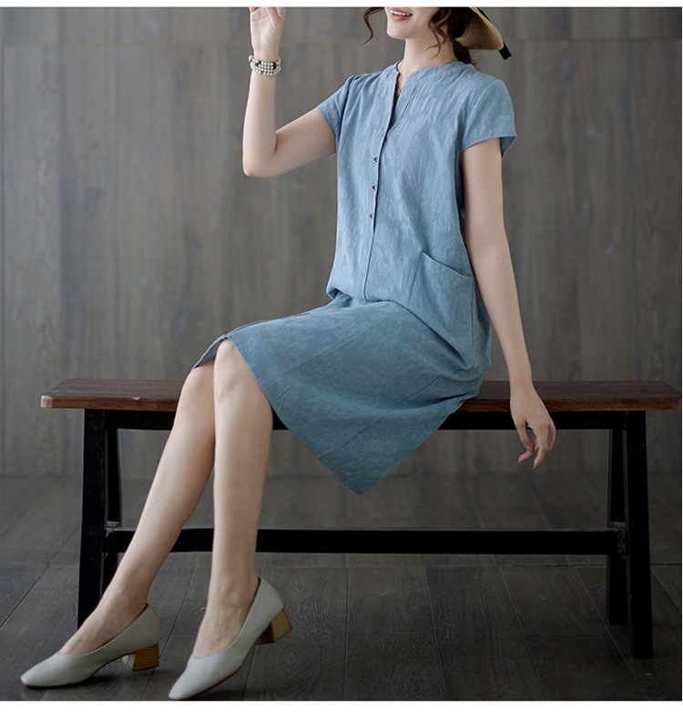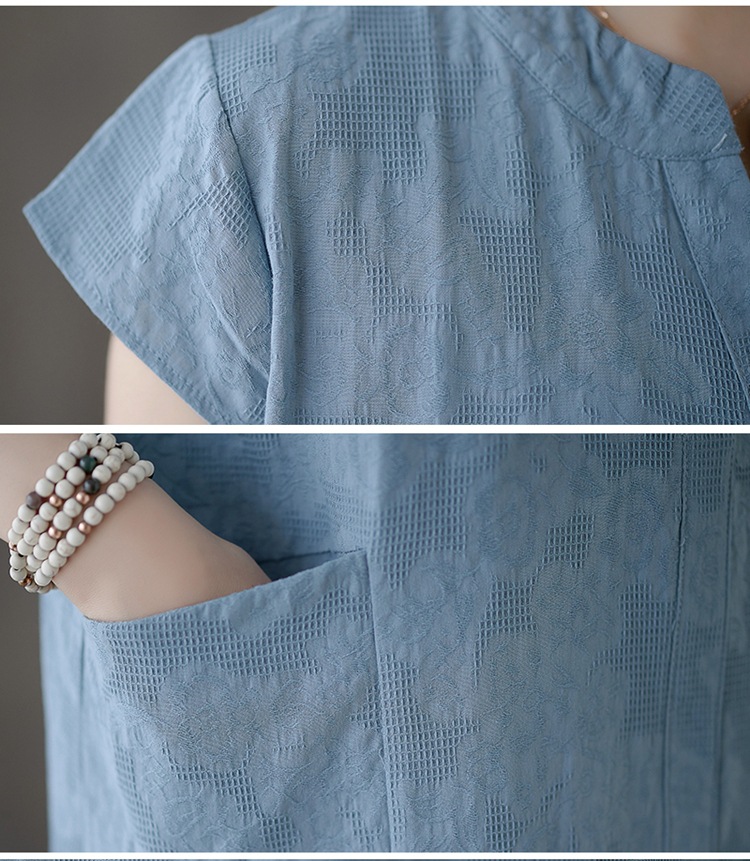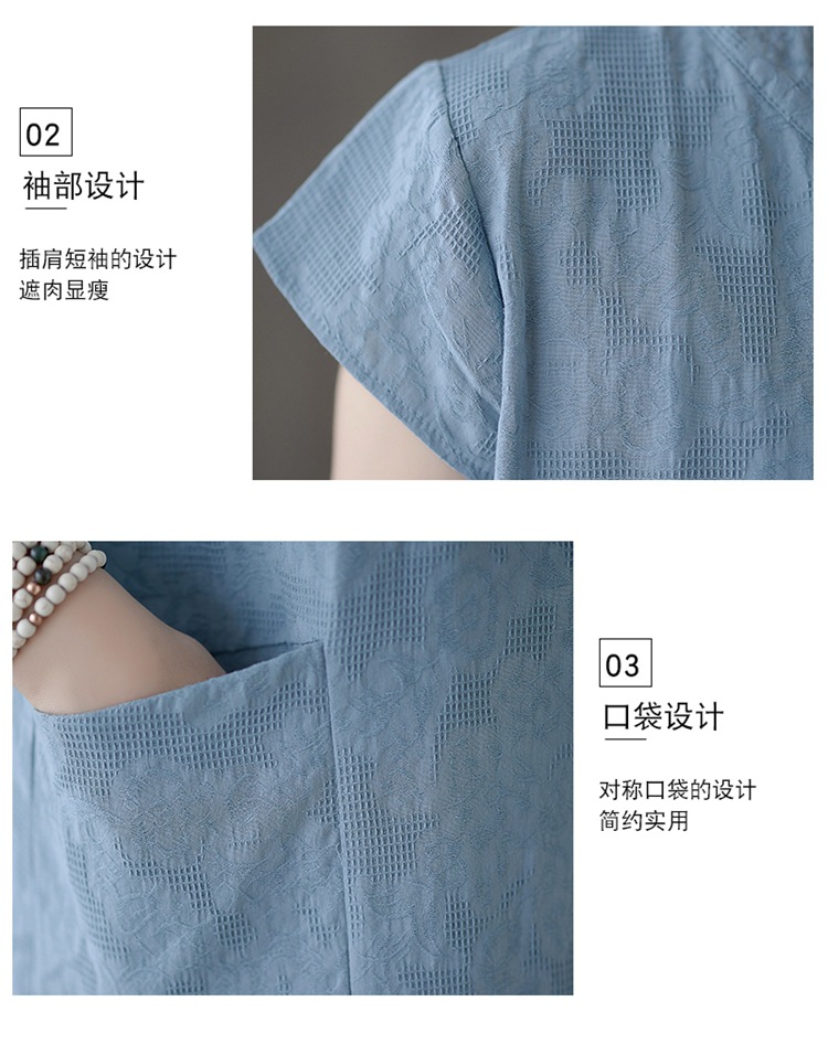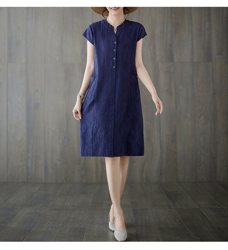 Real shot 2025 summer new literary loose jacquard cotton and linen stand-up collar short-sleeved dress women's medium and long #9658