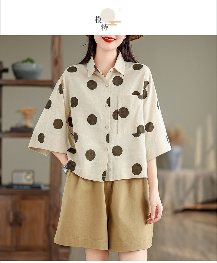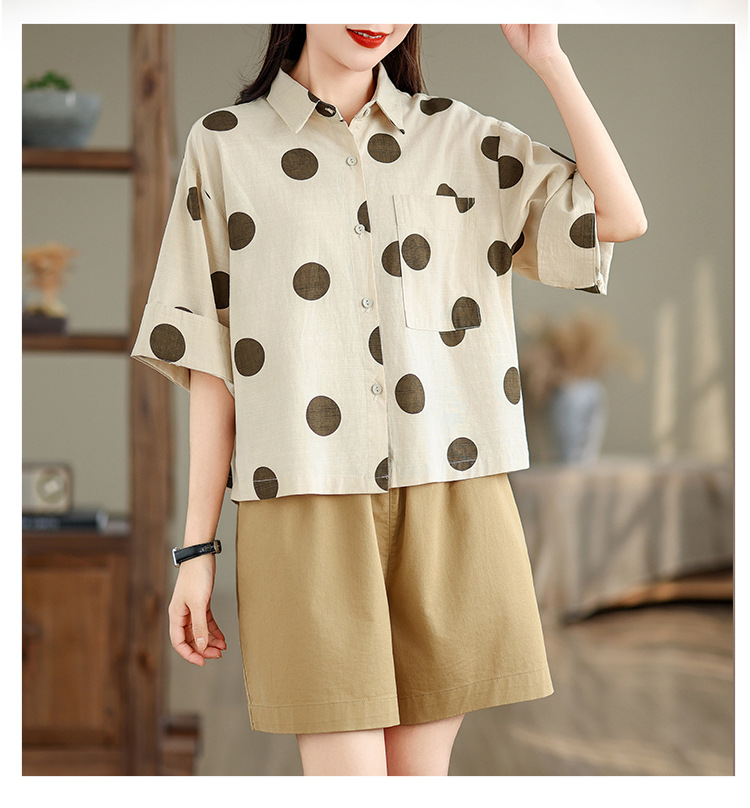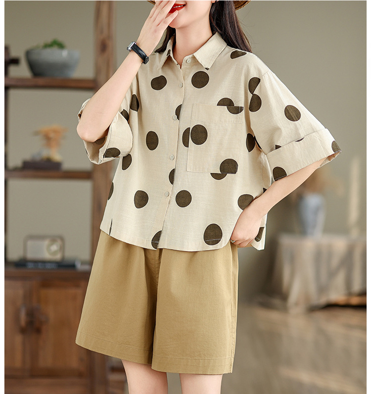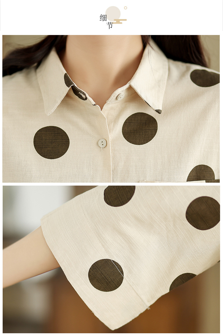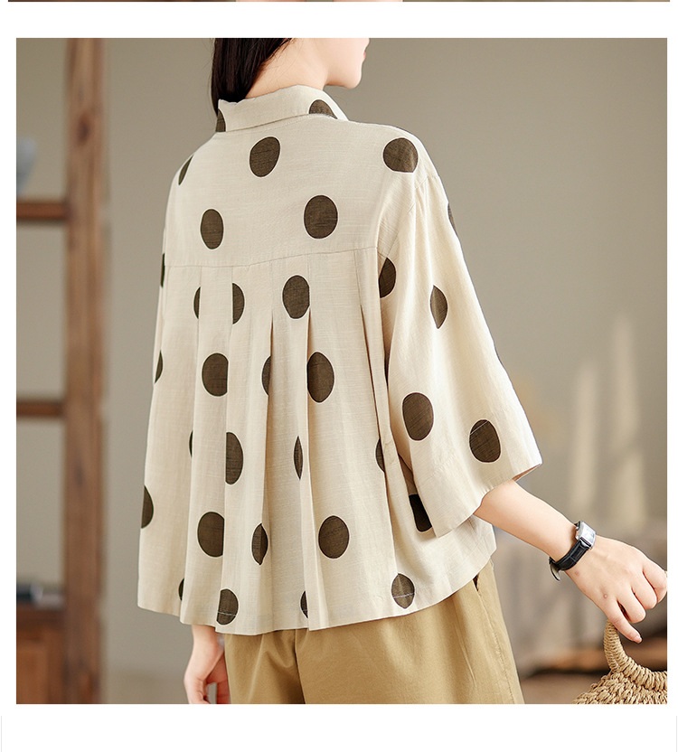 Real shot 2025 summer new literary loose polka dot lapel short-sleeved shirt blouse top #9531
