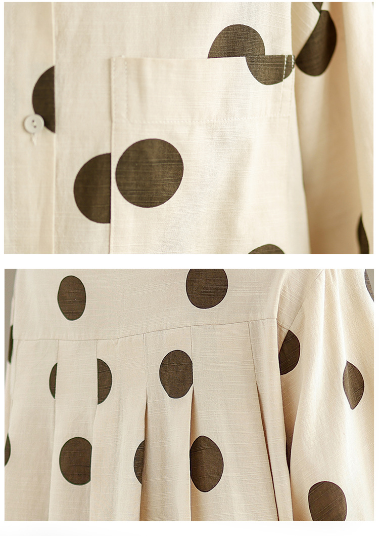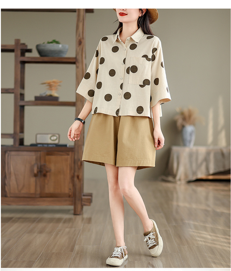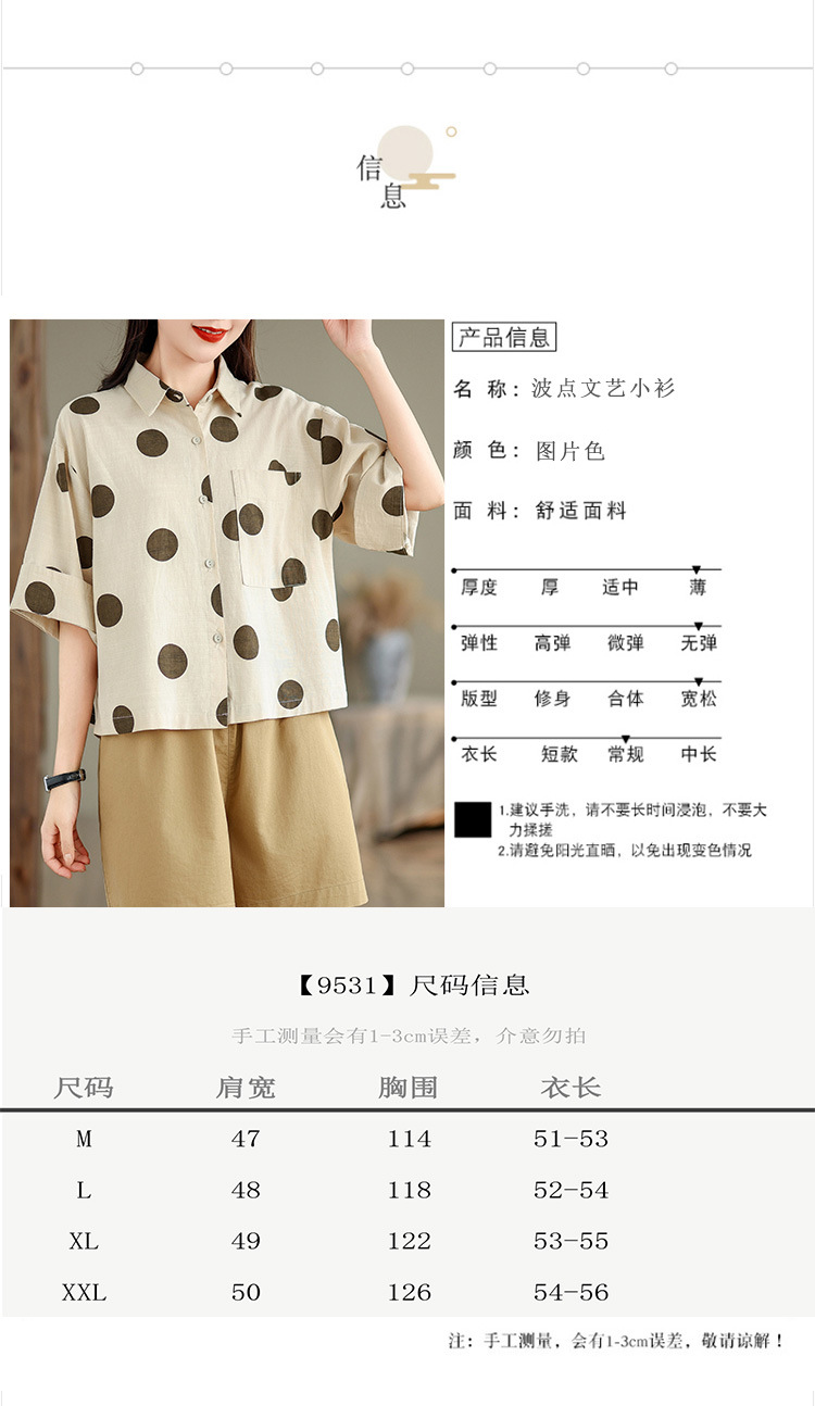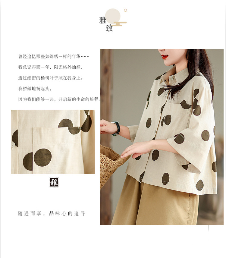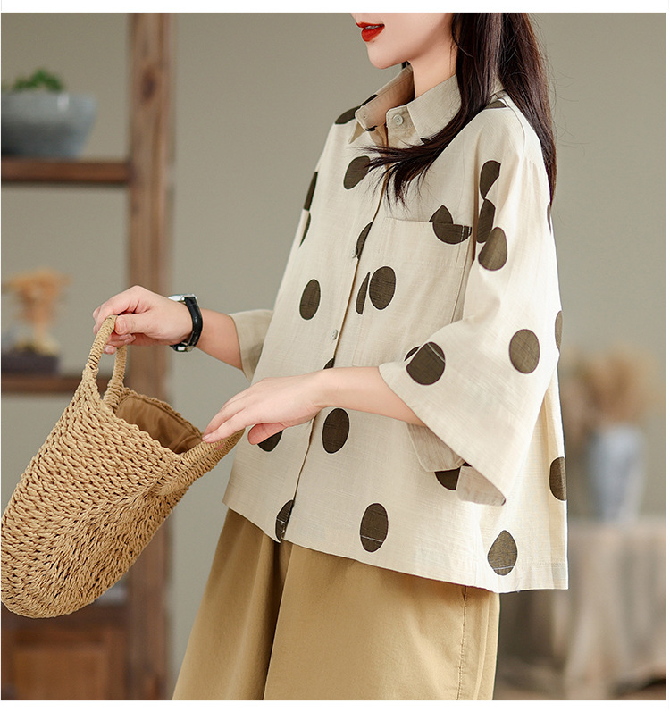 Real shot 2025 summer new literary loose polka dot lapel short-sleeved shirt blouse top #9531