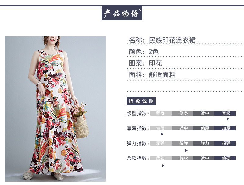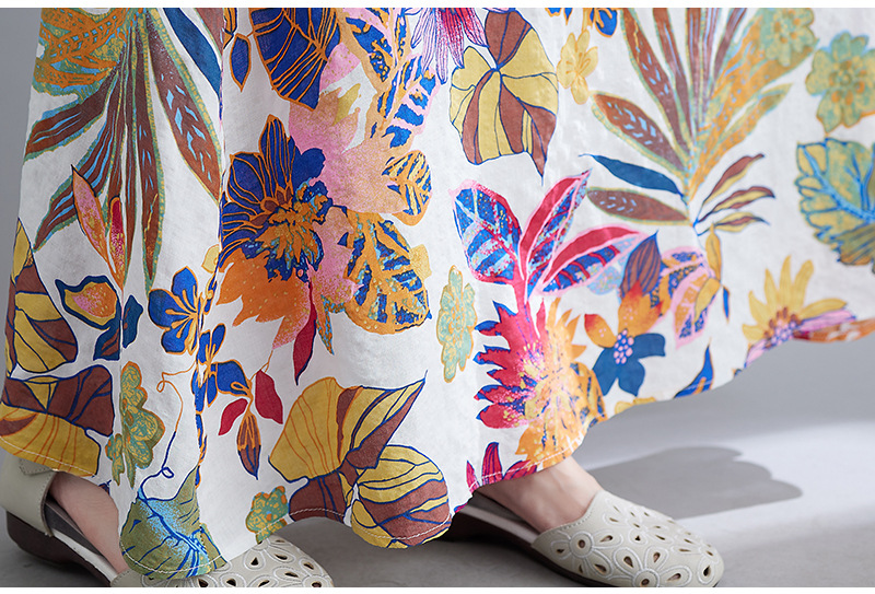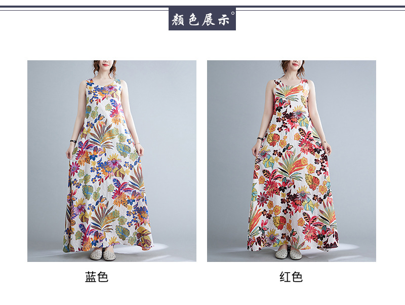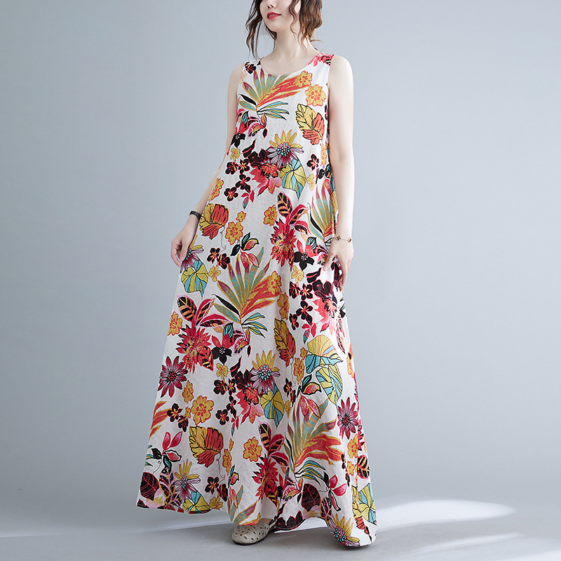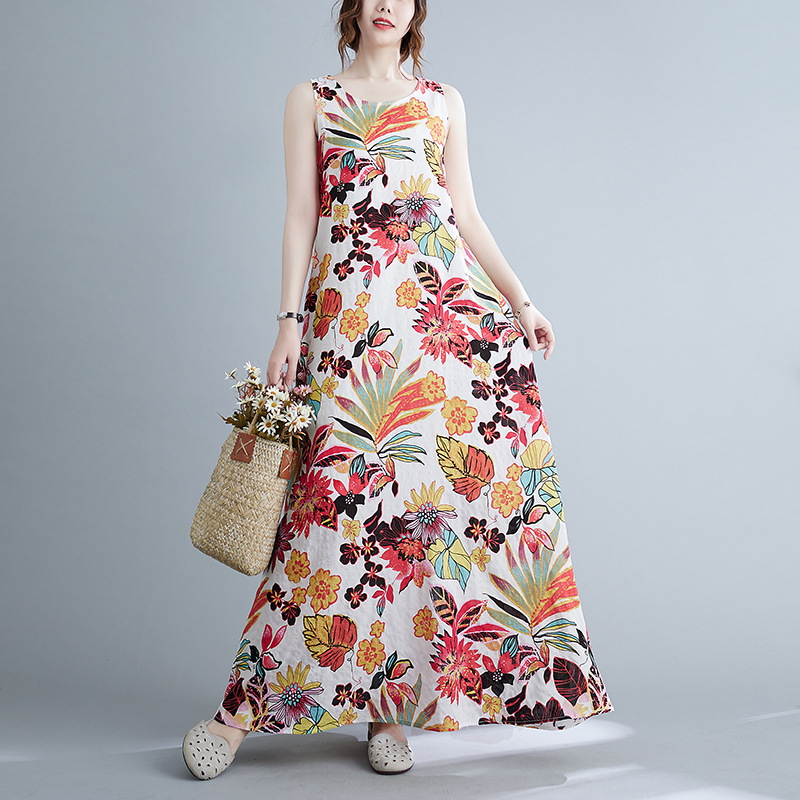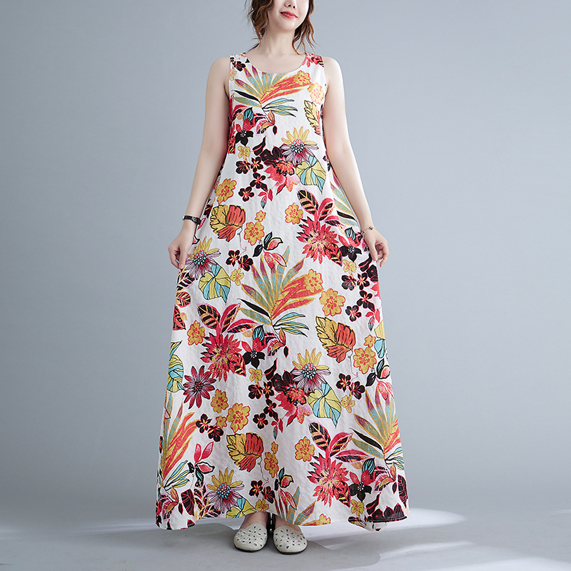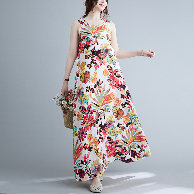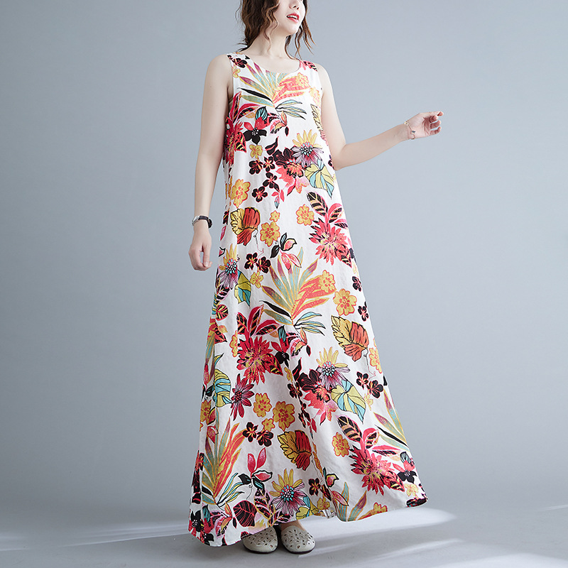 Real shot 2025 summer new literary loose printing sleeveless cotton and linen dress women's vest suspender skirt 9608 #
