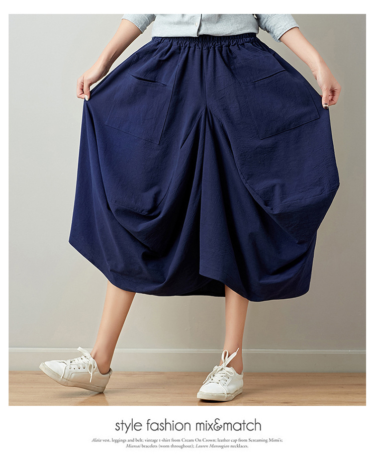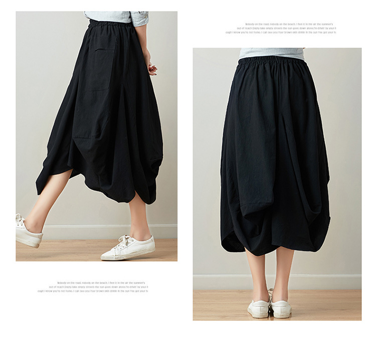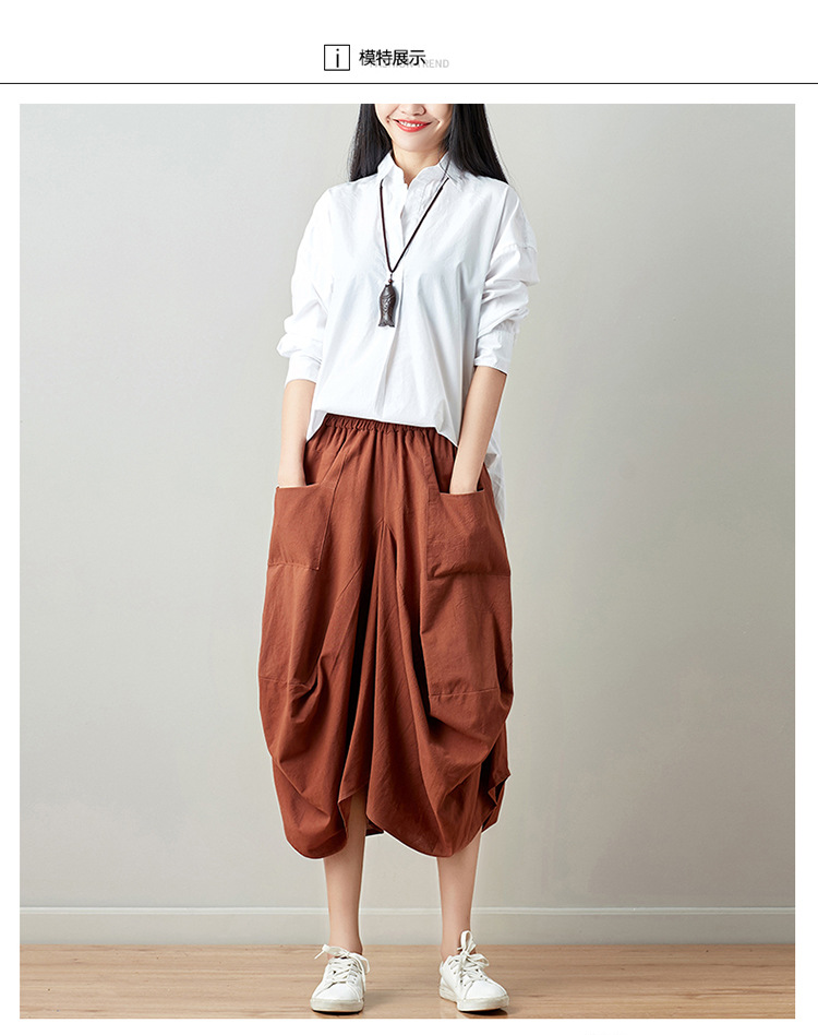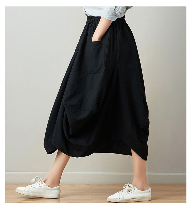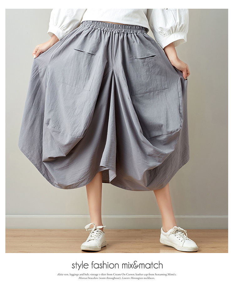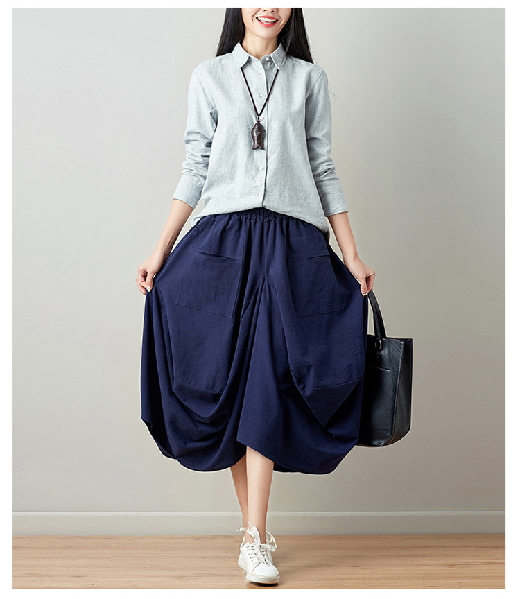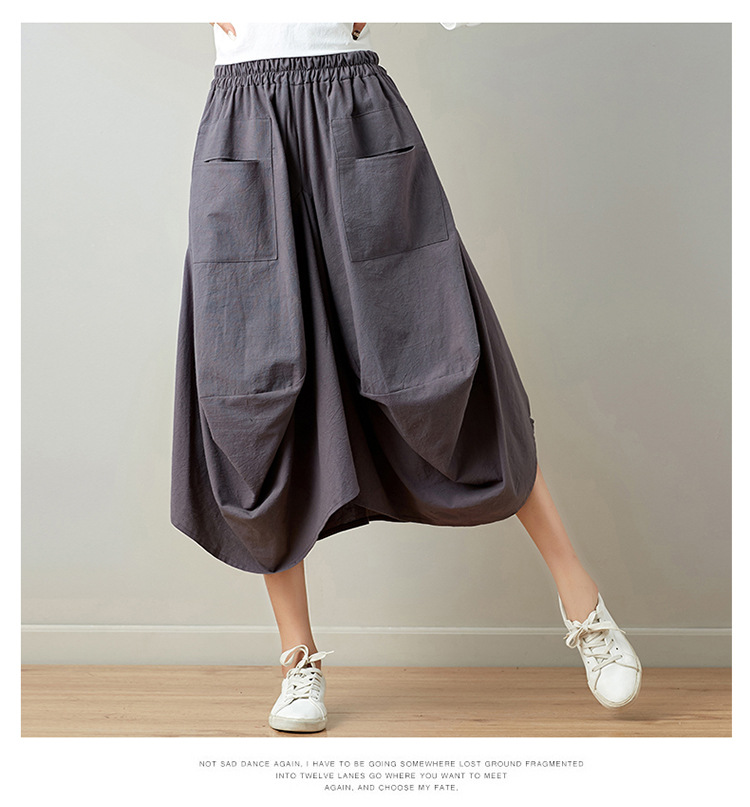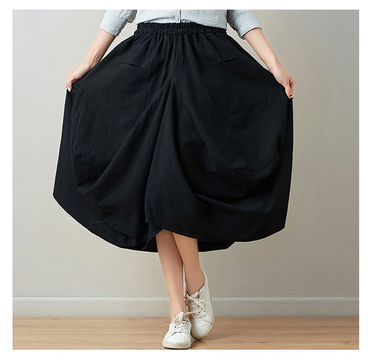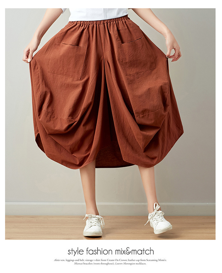 Real shot 2025 summer new literary loose solid color cotton and linen elastic waist skirt lantern skirt woman #1381 #