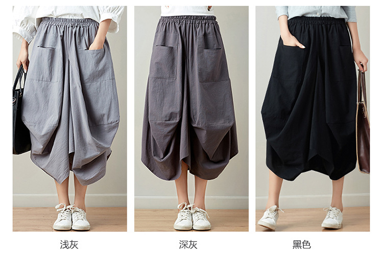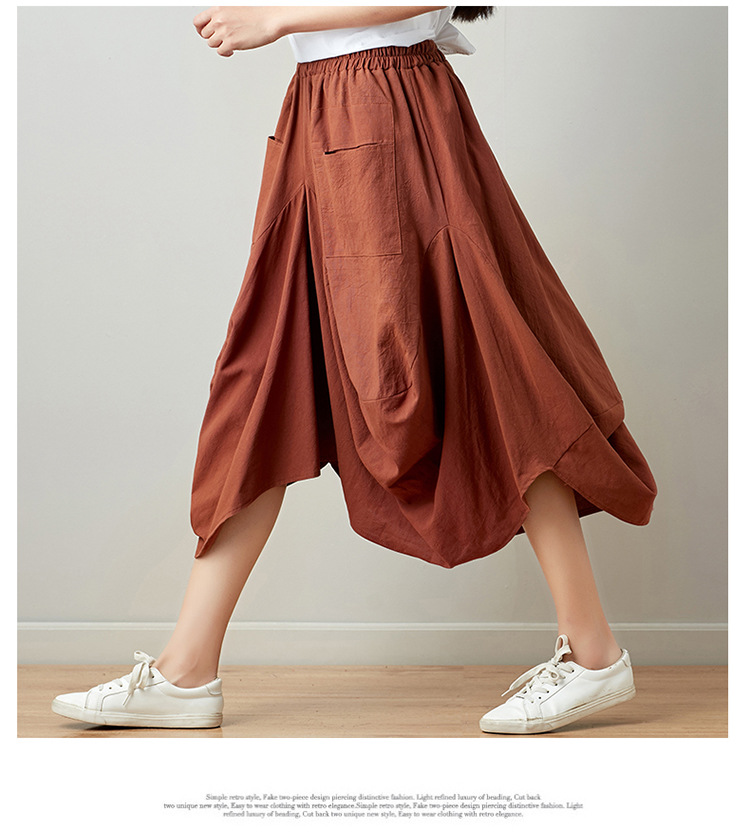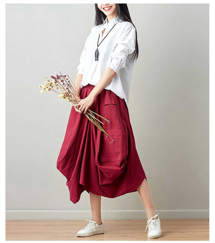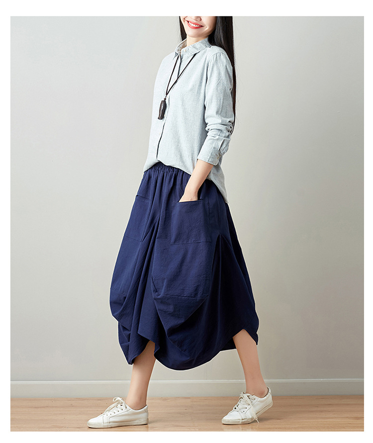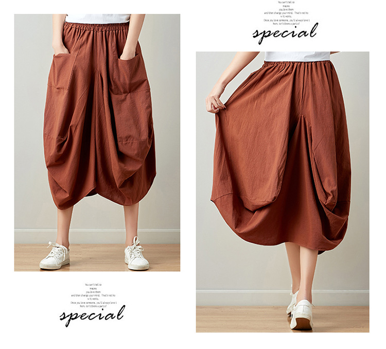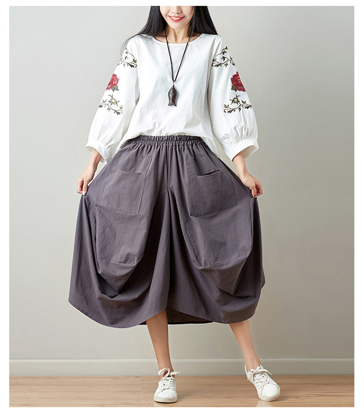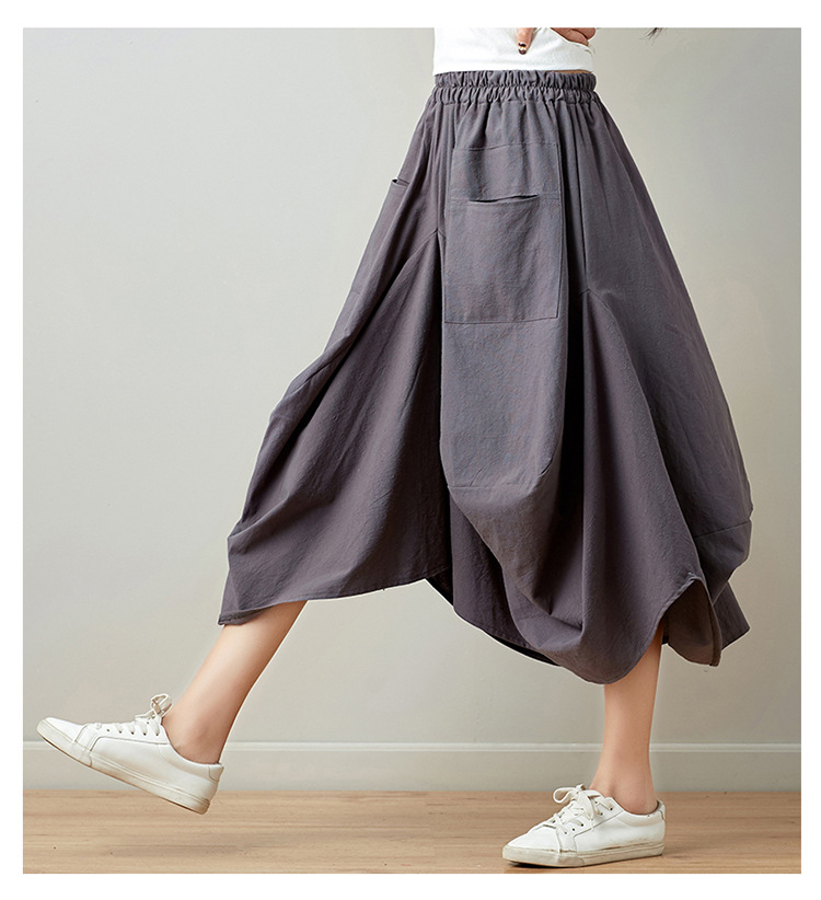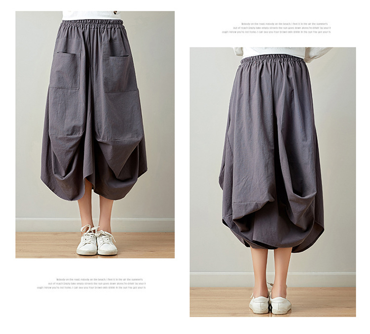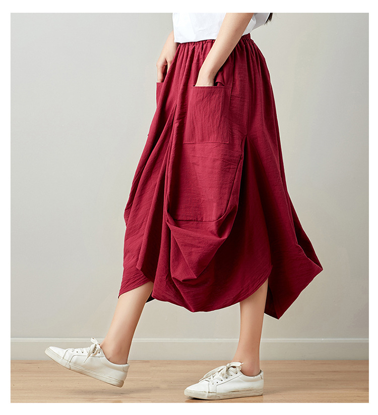 Real shot 2025 summer new literary loose solid color cotton and linen elastic waist skirt lantern skirt woman #1381 #