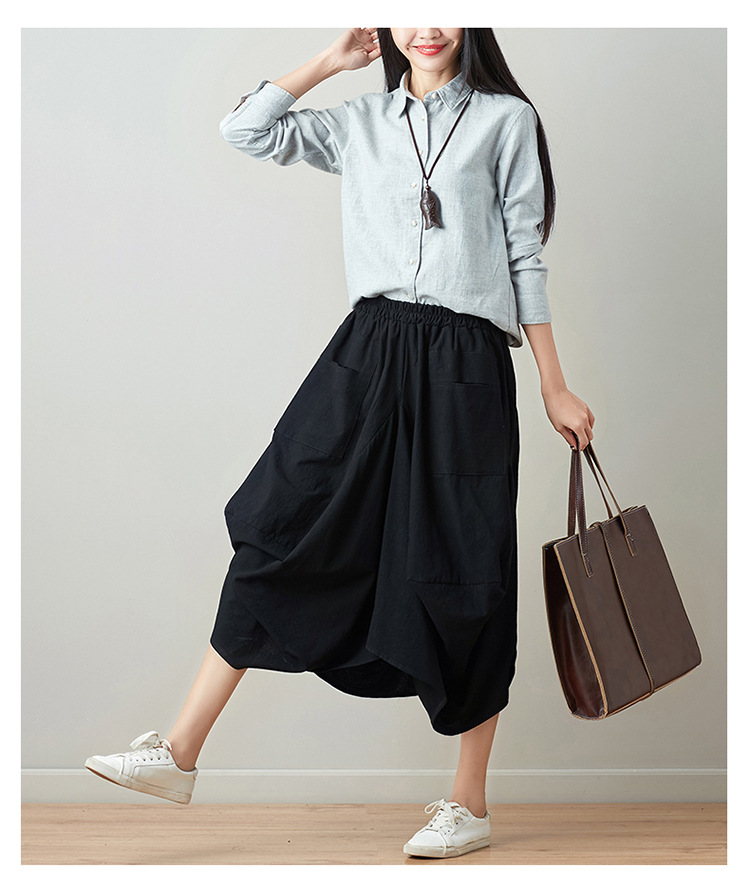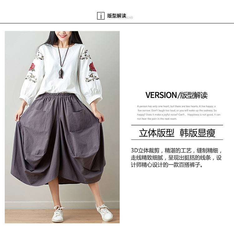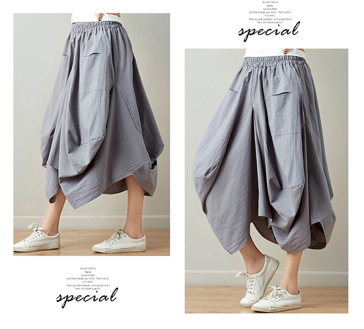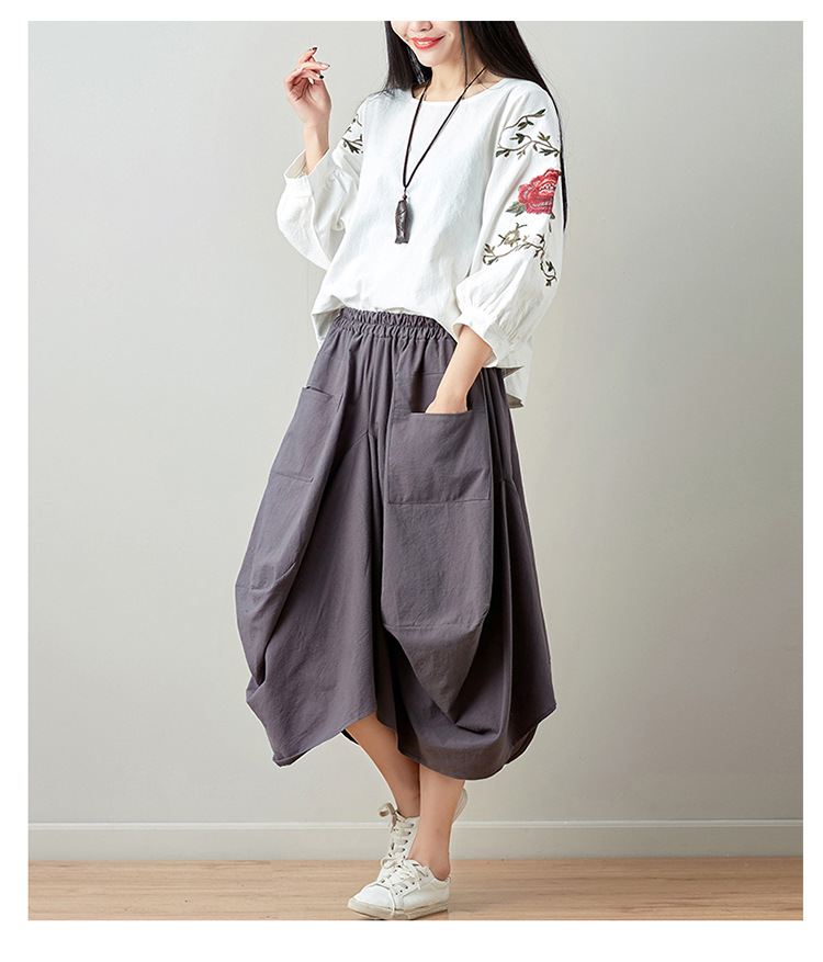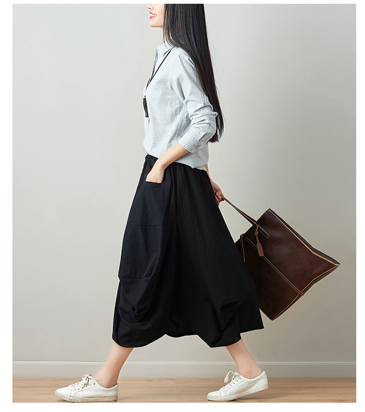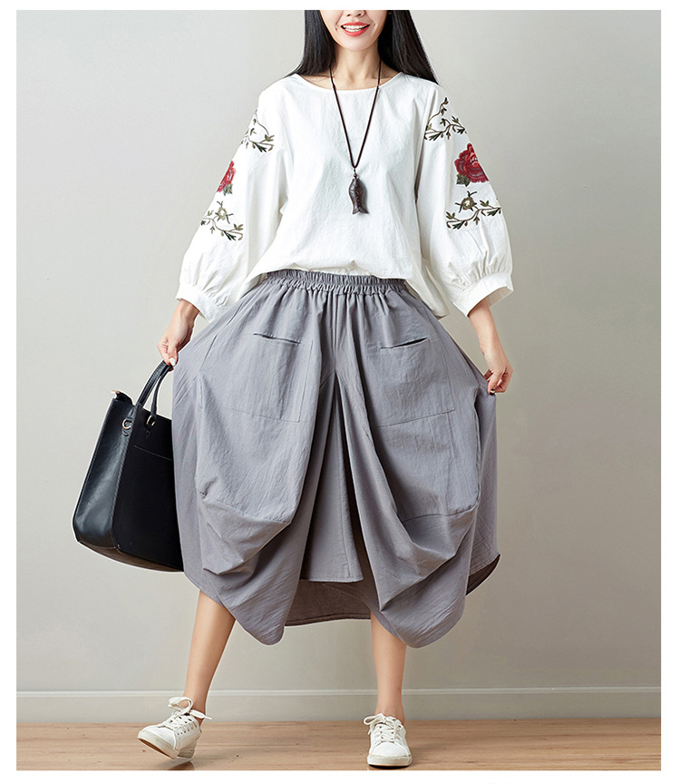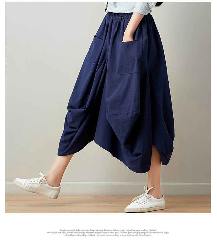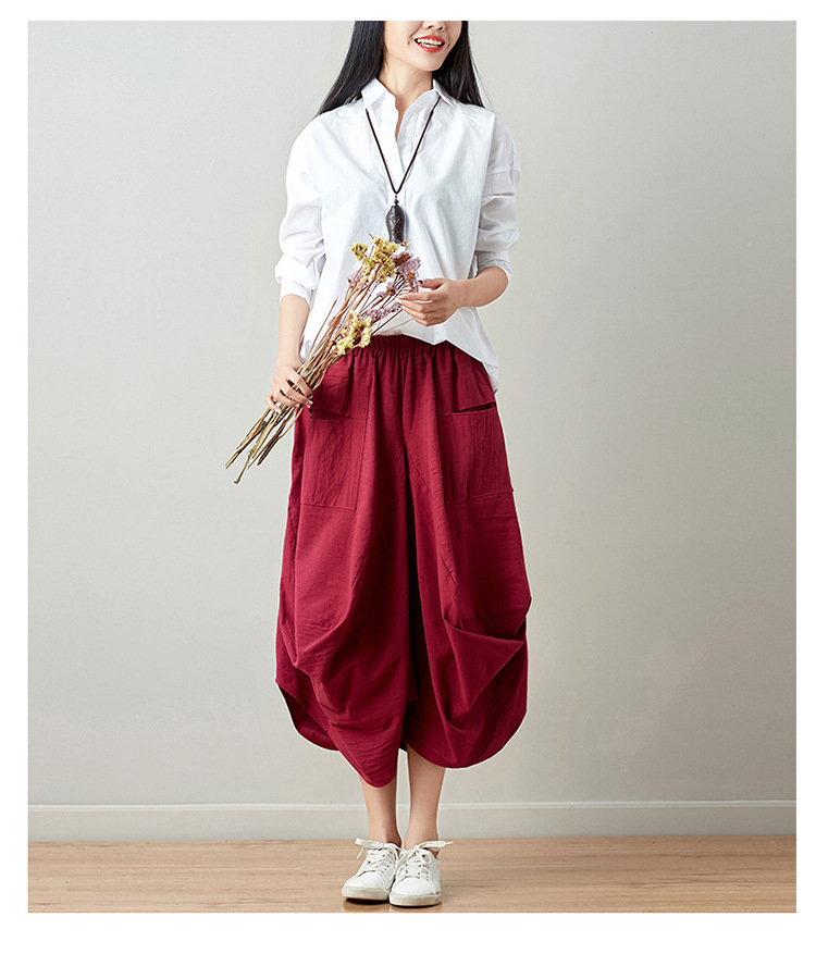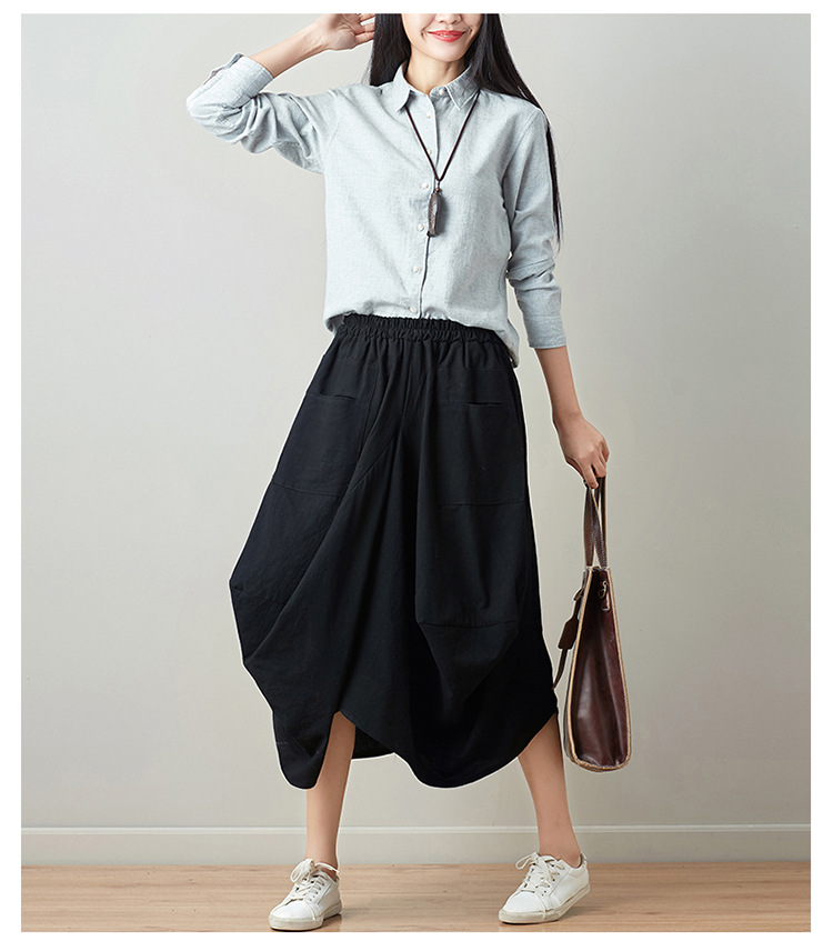 Real shot 2025 summer new literary loose solid color cotton and linen elastic waist skirt lantern skirt woman #1381 #