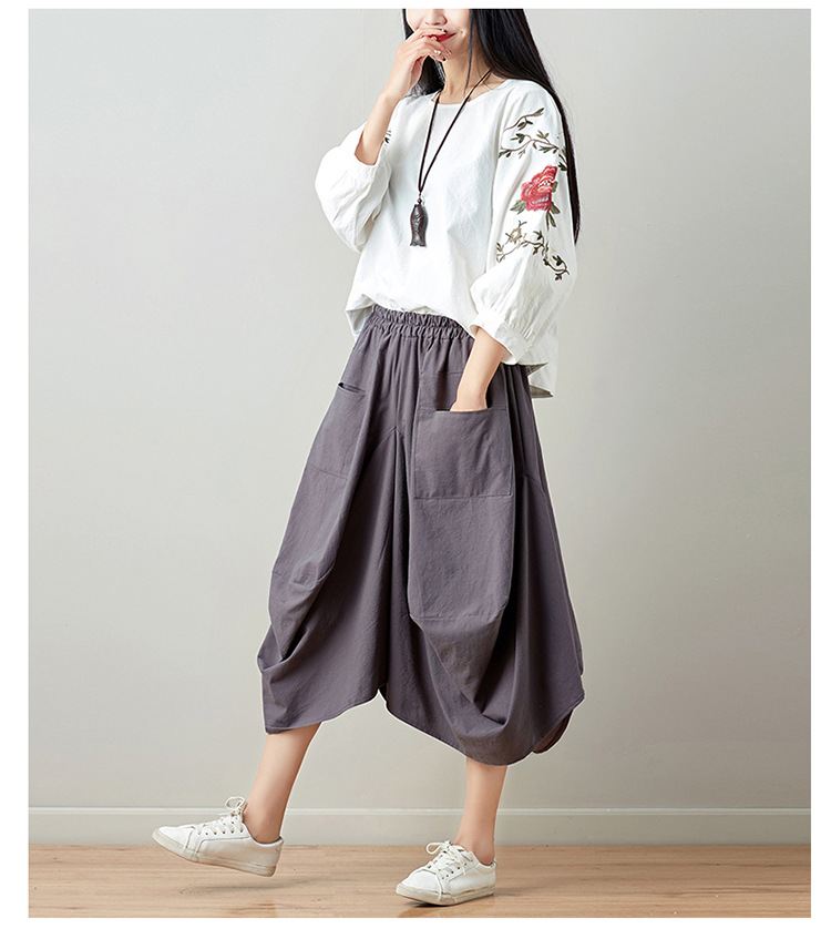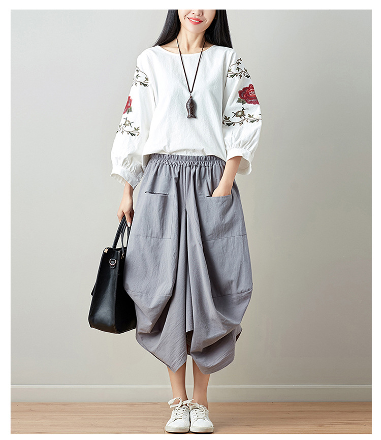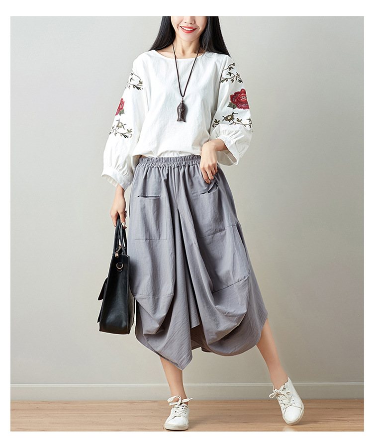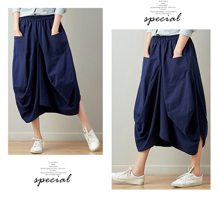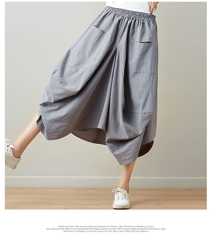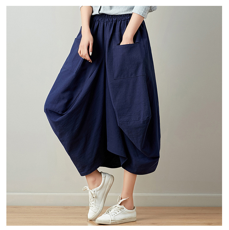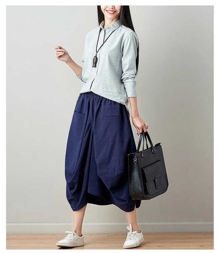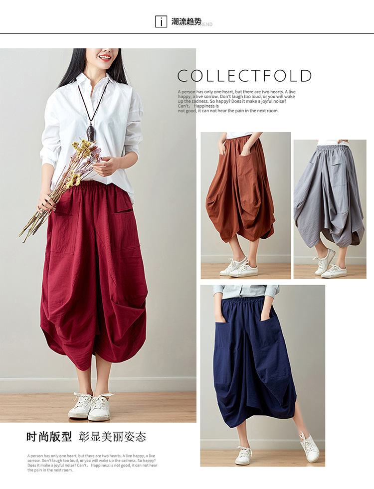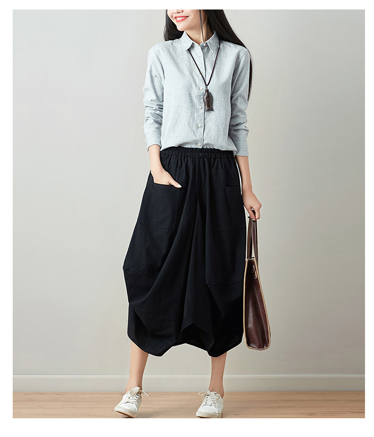 Real shot 2025 summer new literary loose solid color cotton and linen elastic waist skirt lantern skirt woman #1381 #