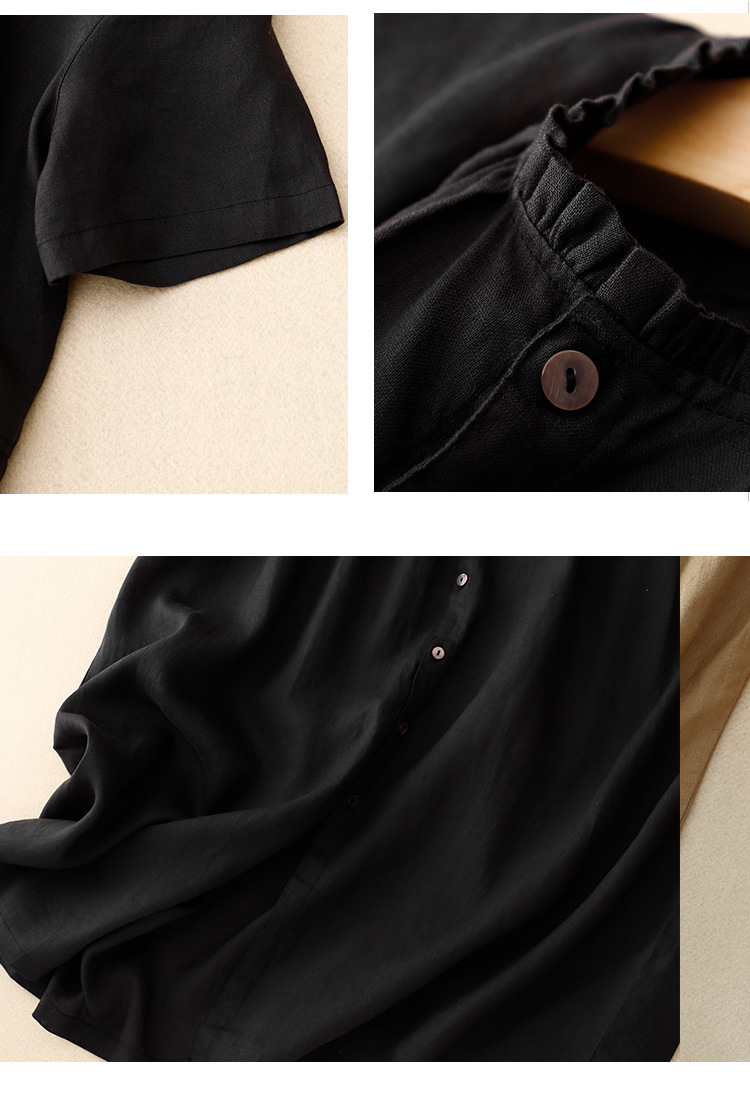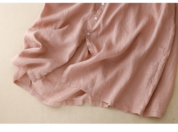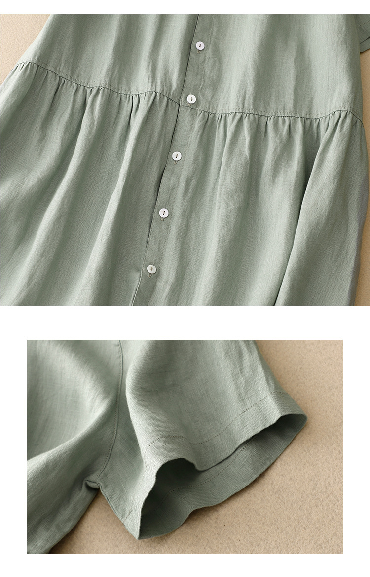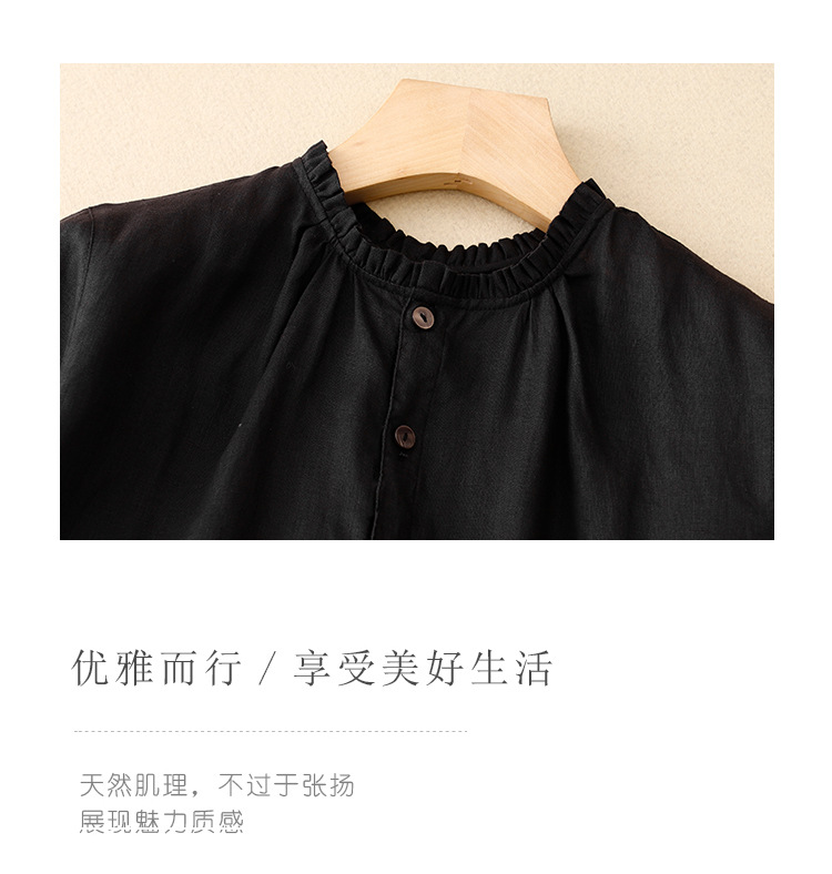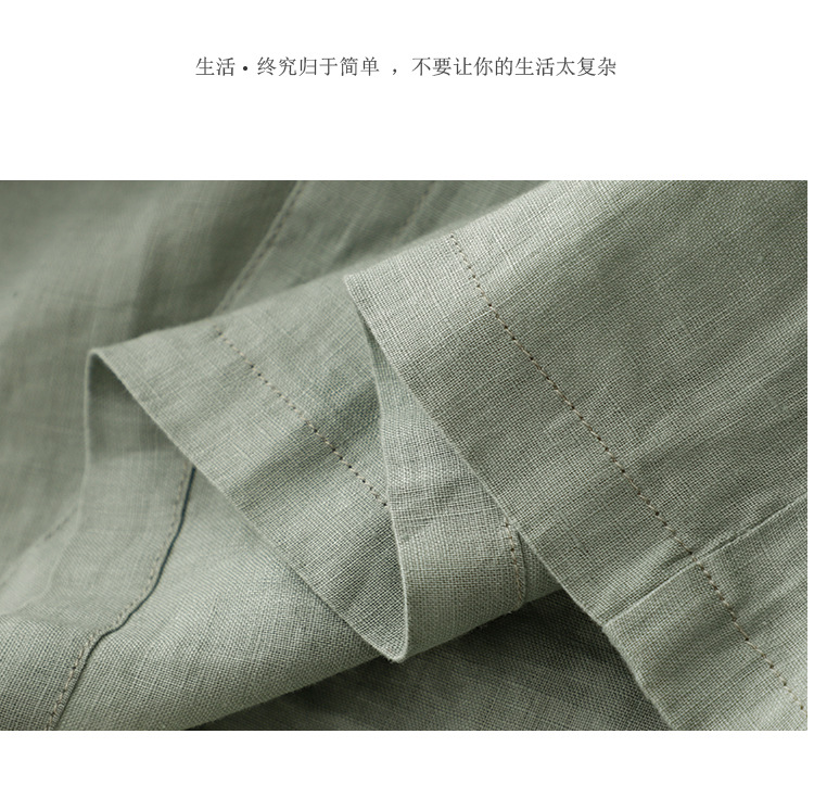 Real shot 2025 summer new literary loose solid color cotton and linen round neck short-sleeved dress women's medium and long #8789