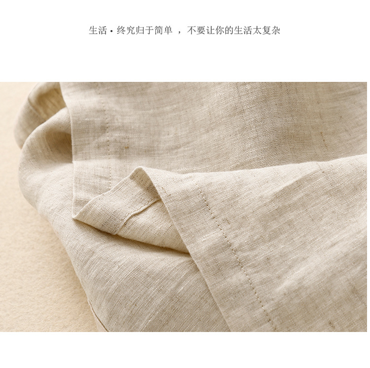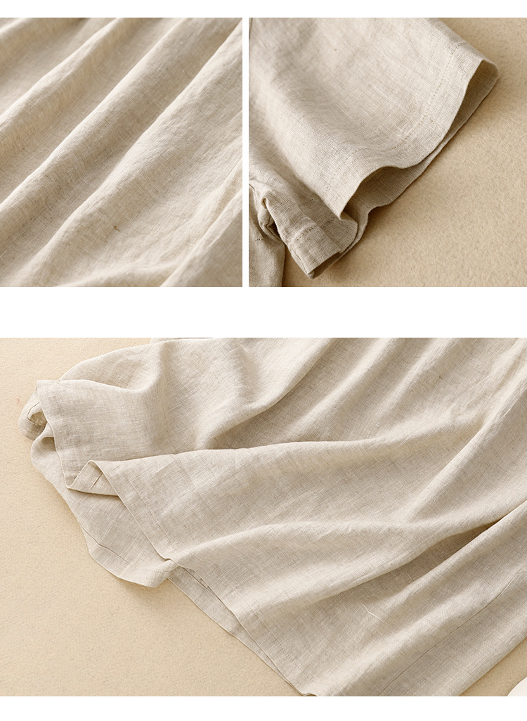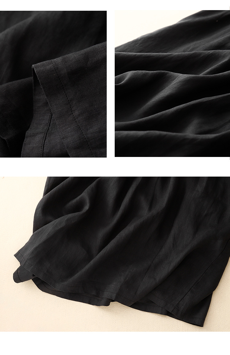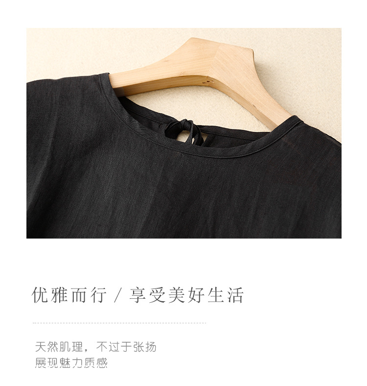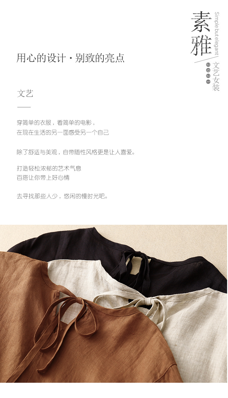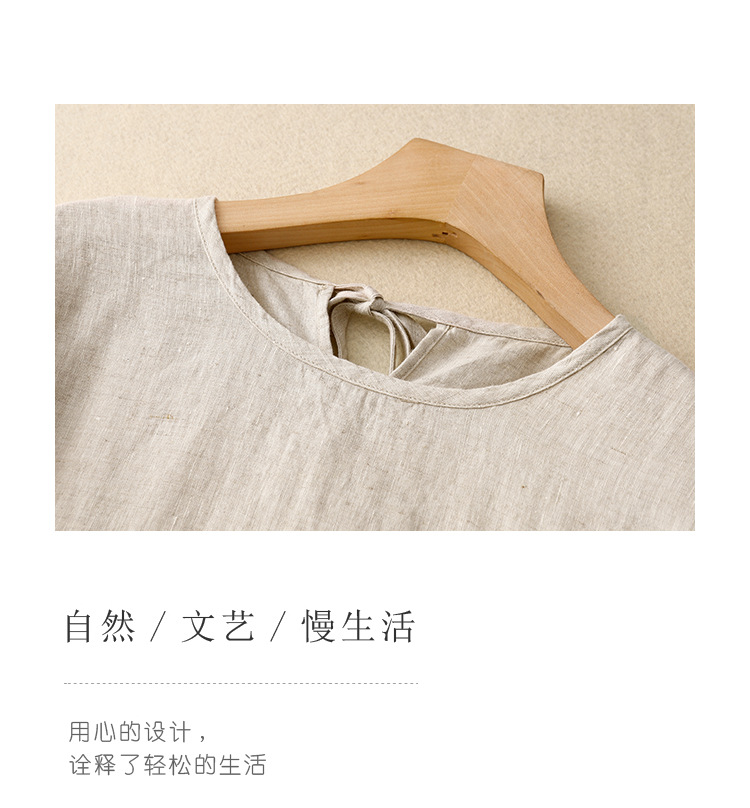 Real shot 2025 summer new literary loose solid color cotton and linen round neck short-sleeved dress women's medium and long #8802