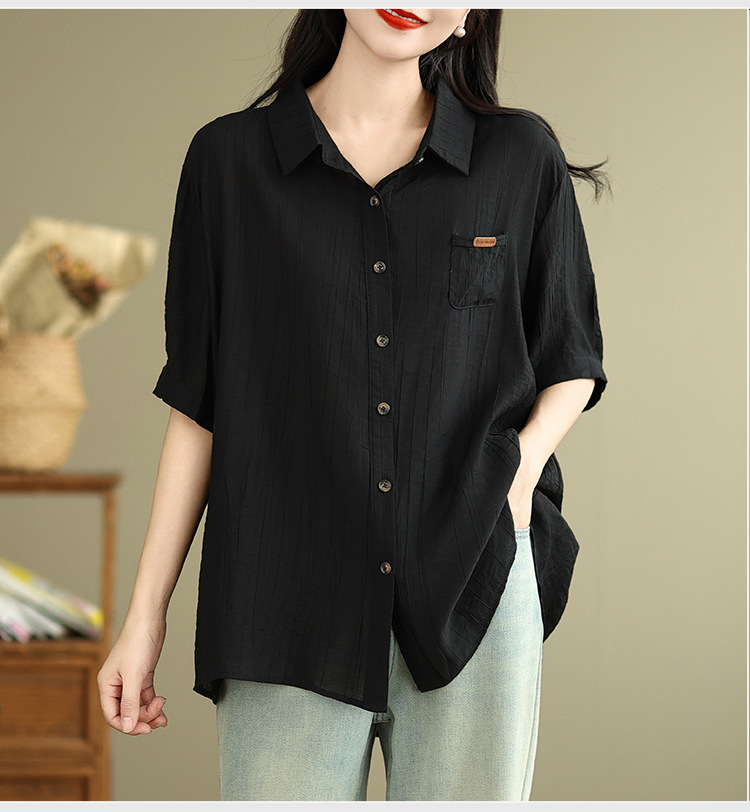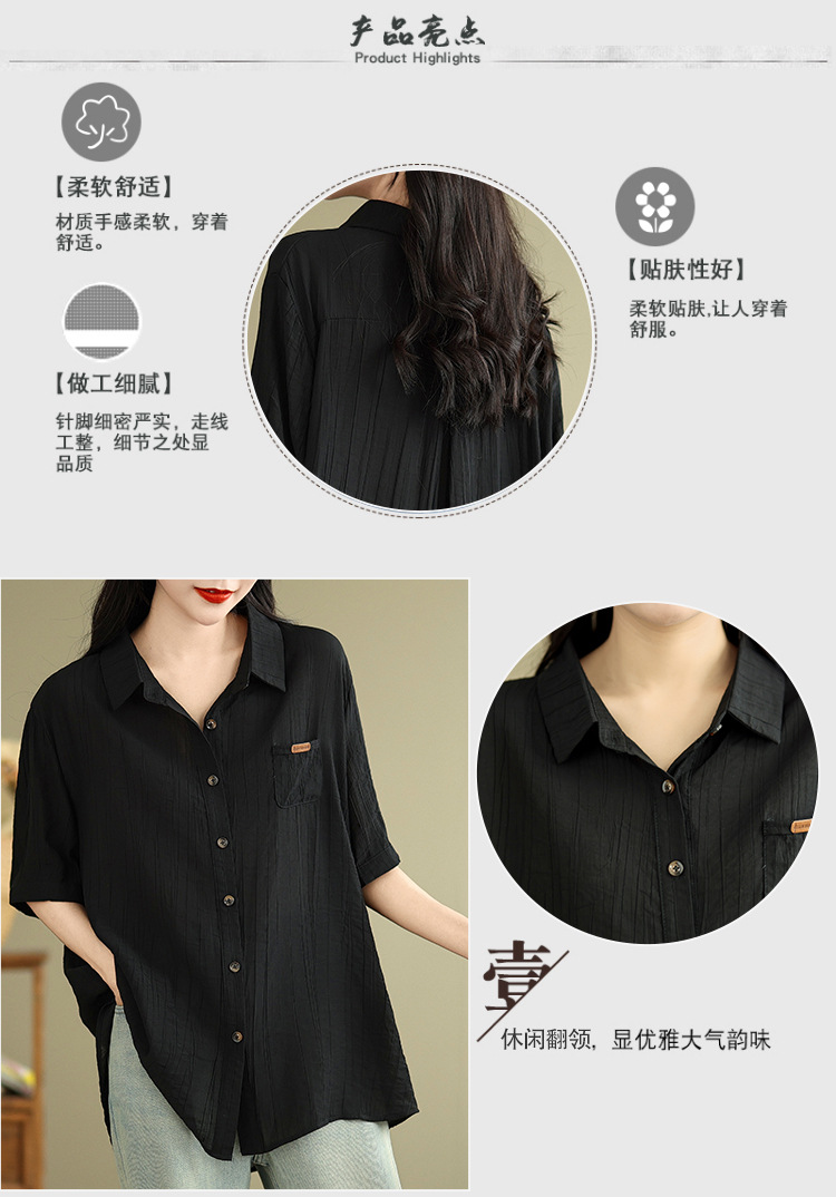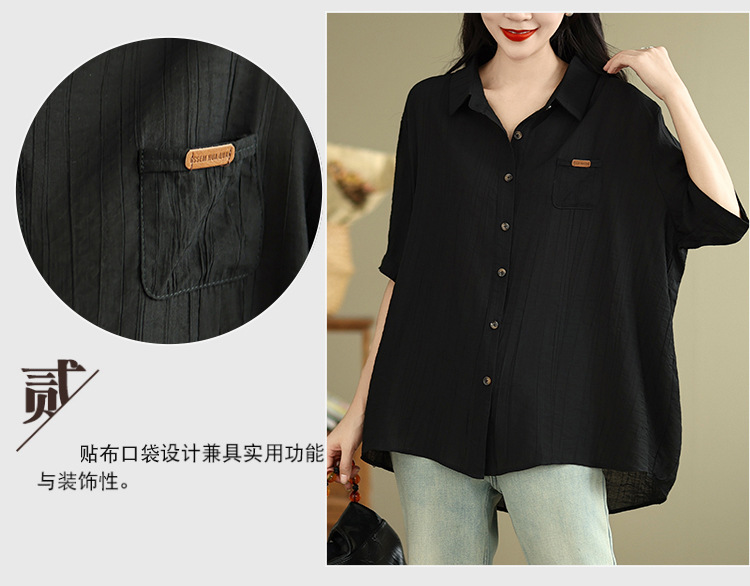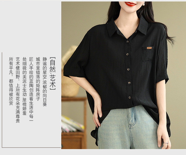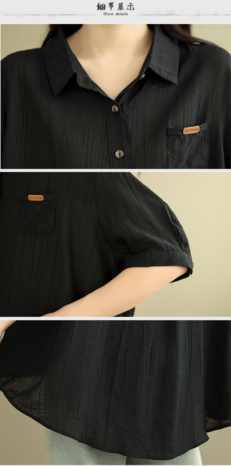Real shot 2025 summer new literary loose solid color lapel short-sleeved shirt women's shirt top #5969