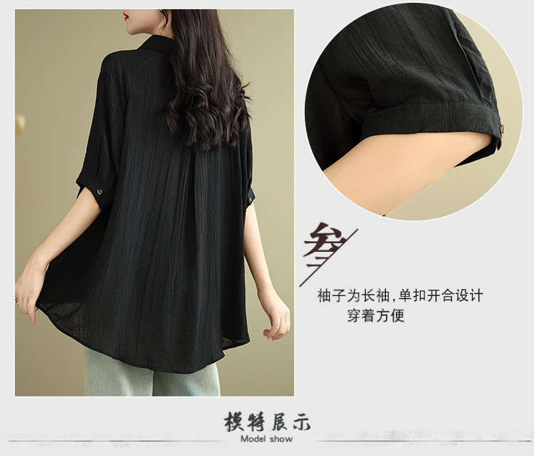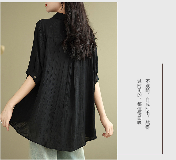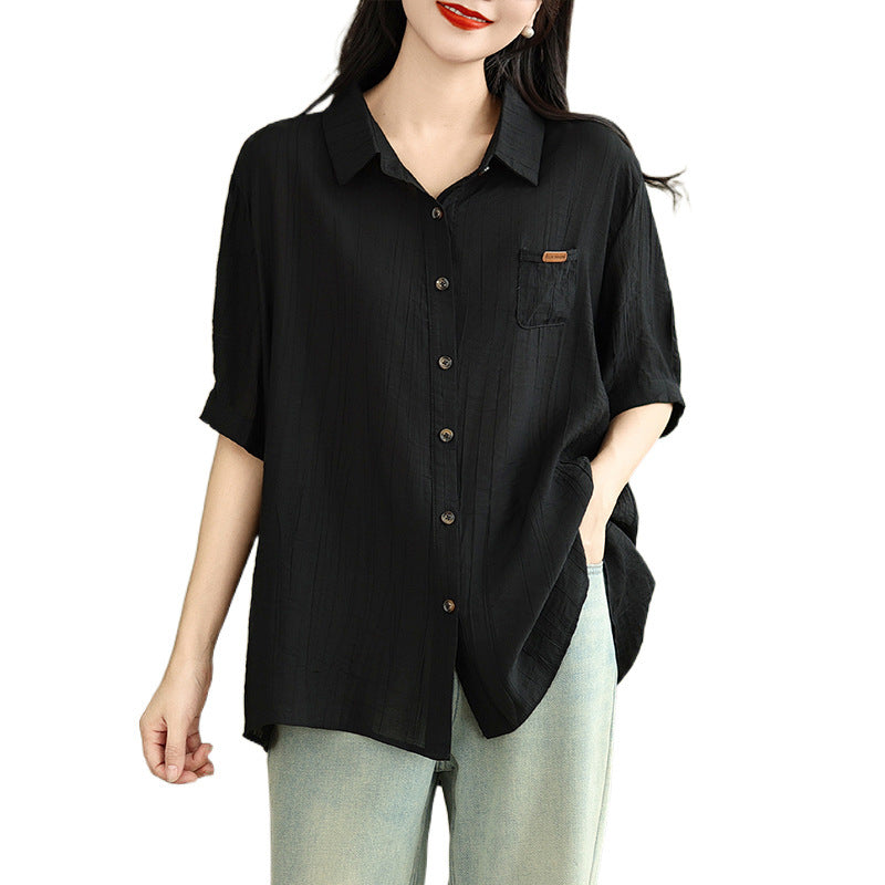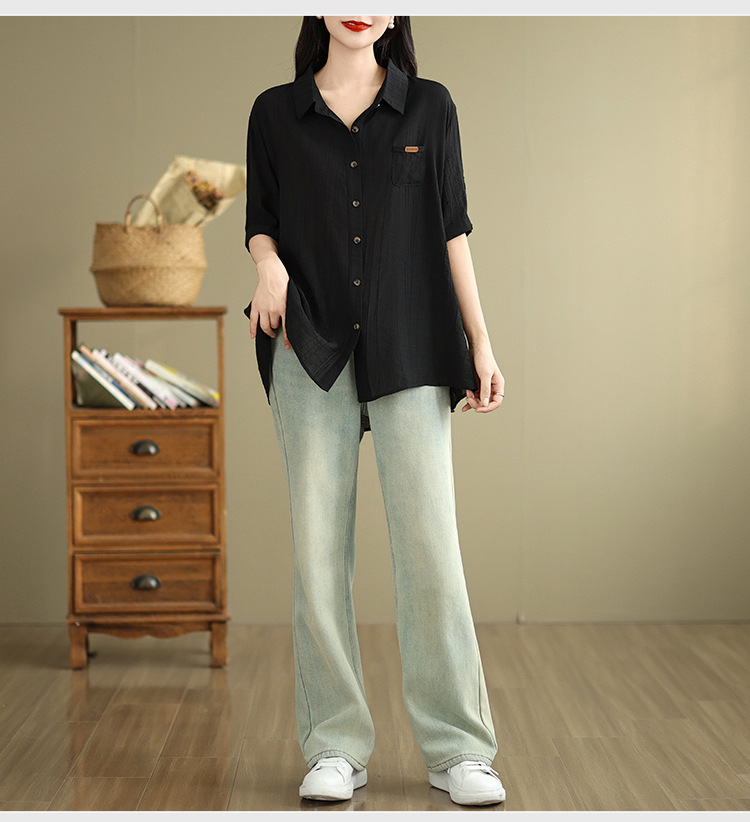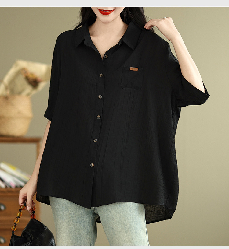 Real shot 2025 summer new literary loose solid color lapel short-sleeved shirt women's shirt top #5969