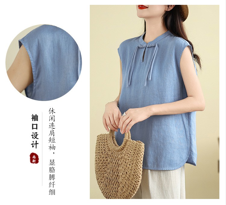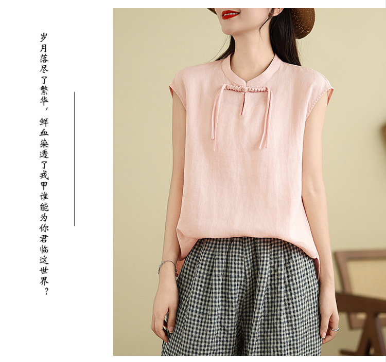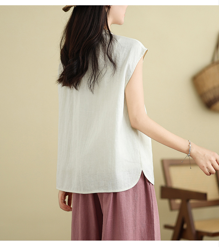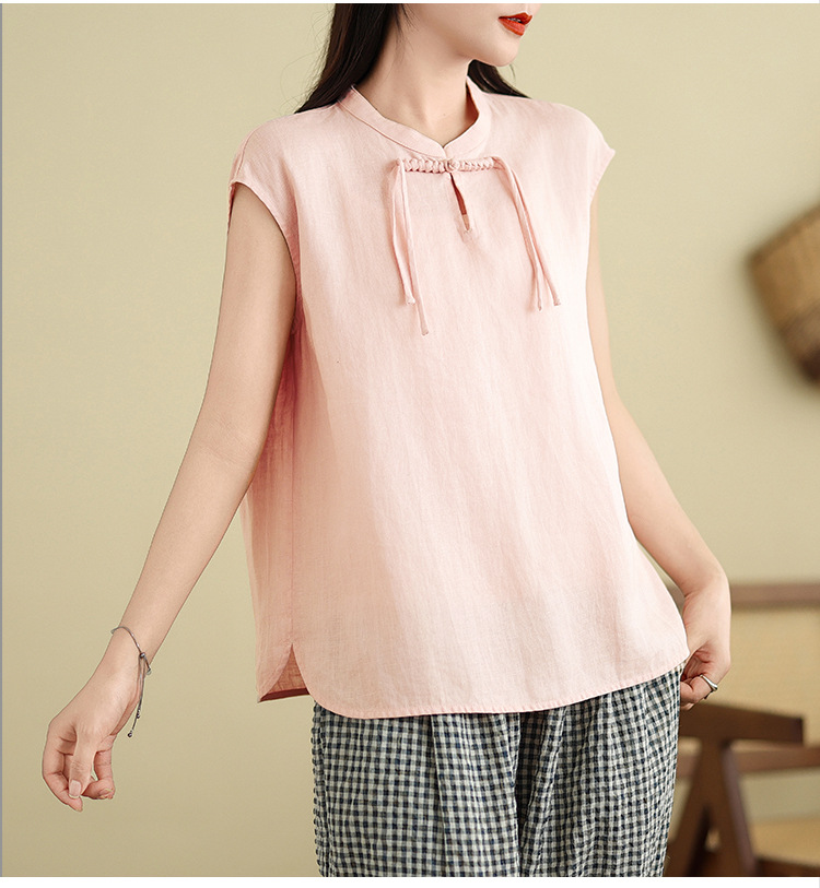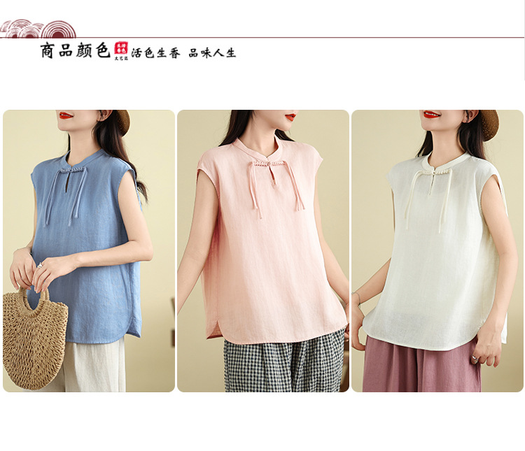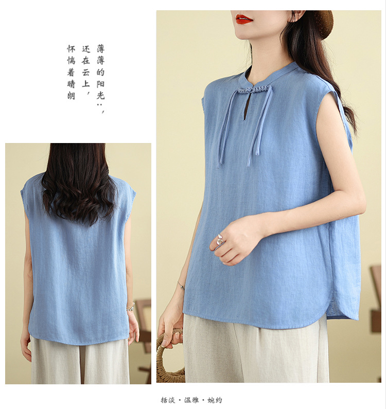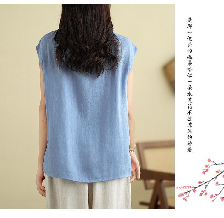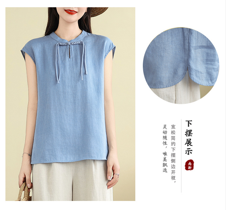 Real shot 2025 summer new literary loose solid color stand-up collar buckle pullover short-sleeved T-shirt women's top #759