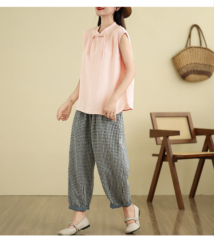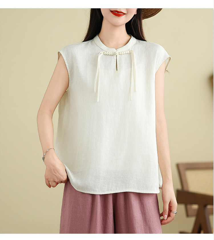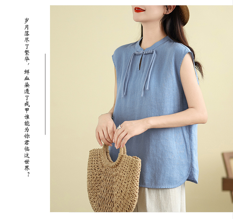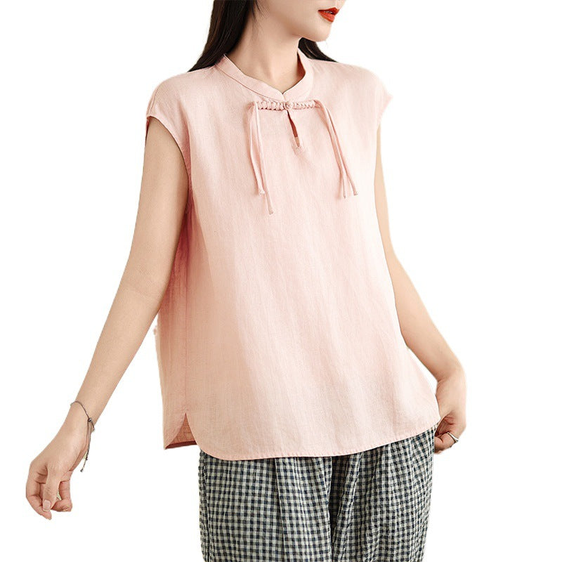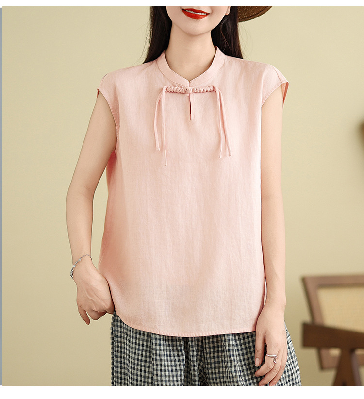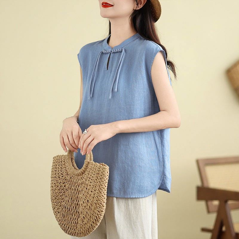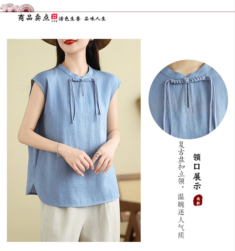 Real shot 2025 summer new literary loose solid color stand-up collar buckle pullover short-sleeved T-shirt women's top #759