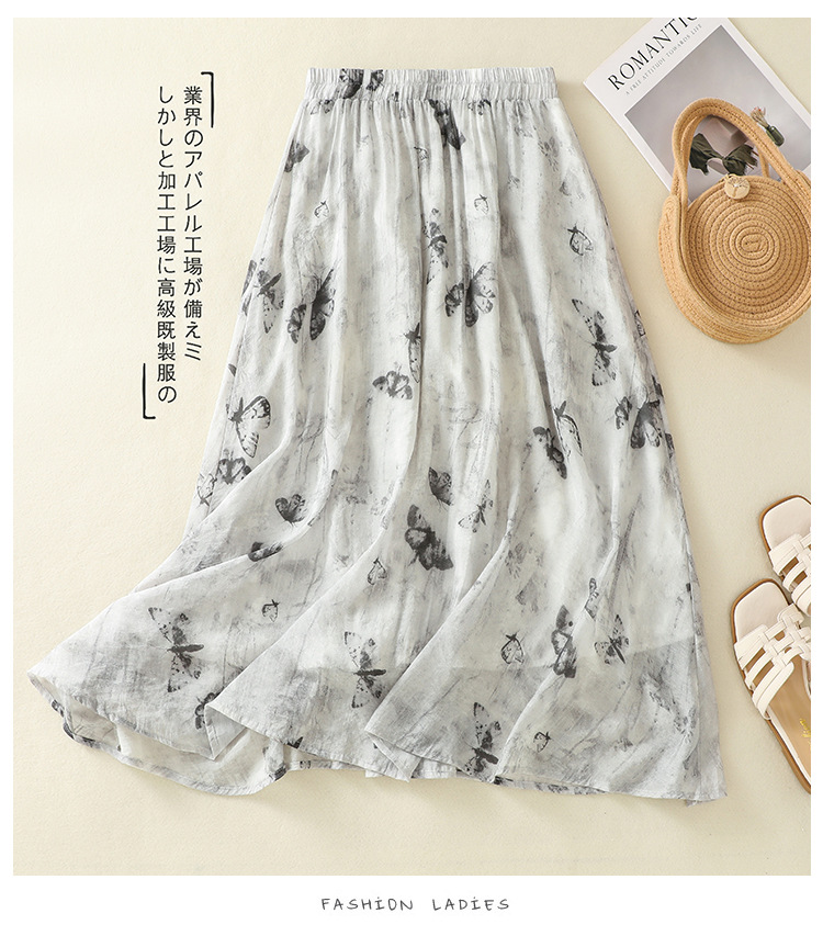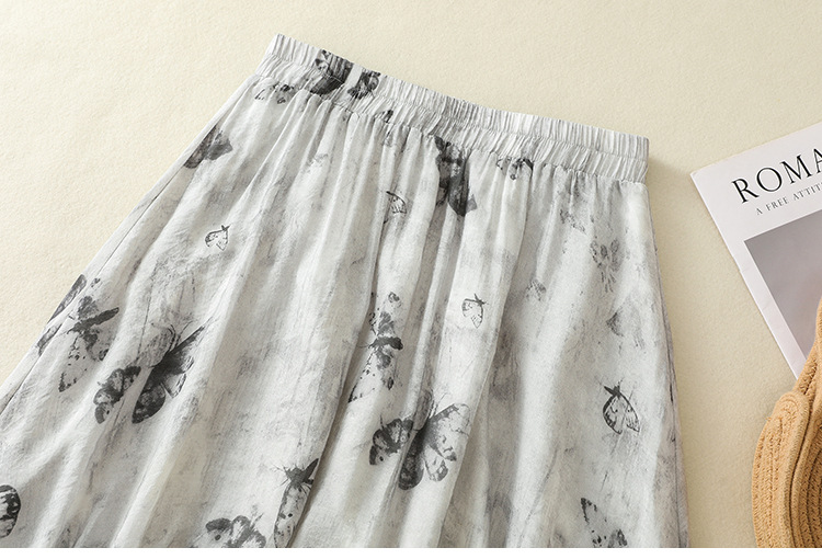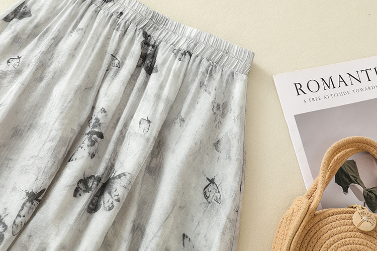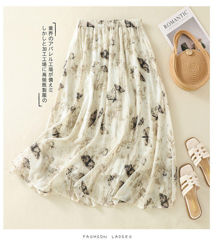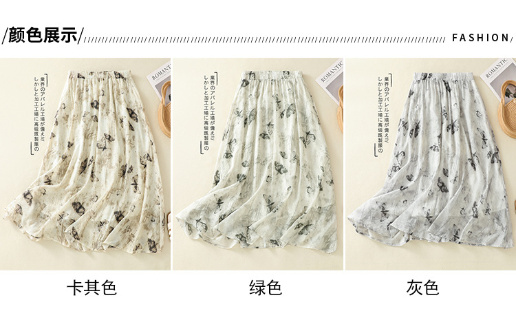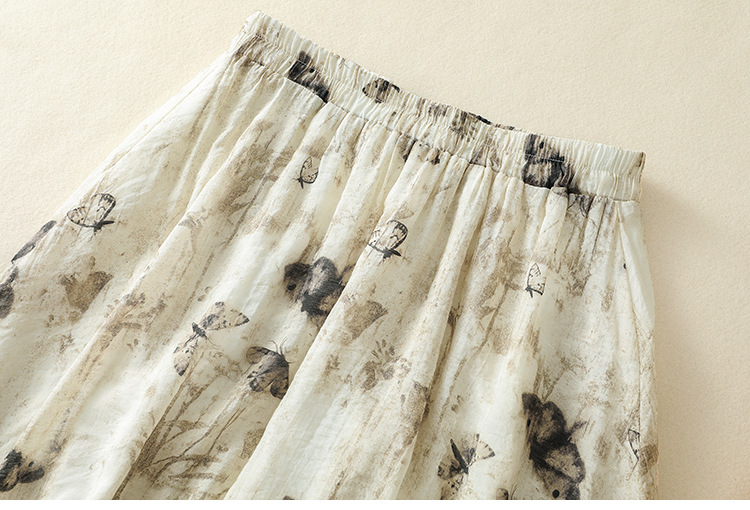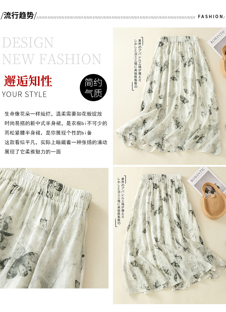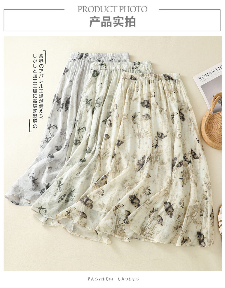 Real shot 2025 summer new new Chinese skirt women's ink printing lined a-word skirt women's clothing