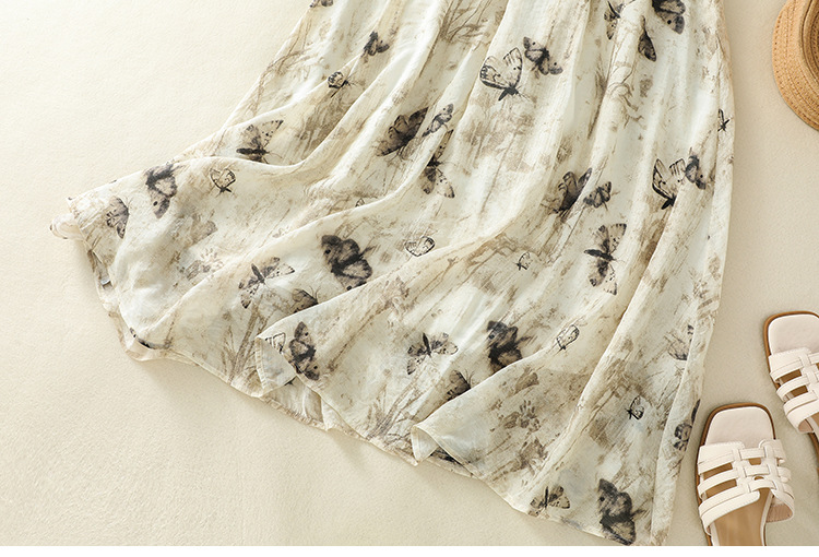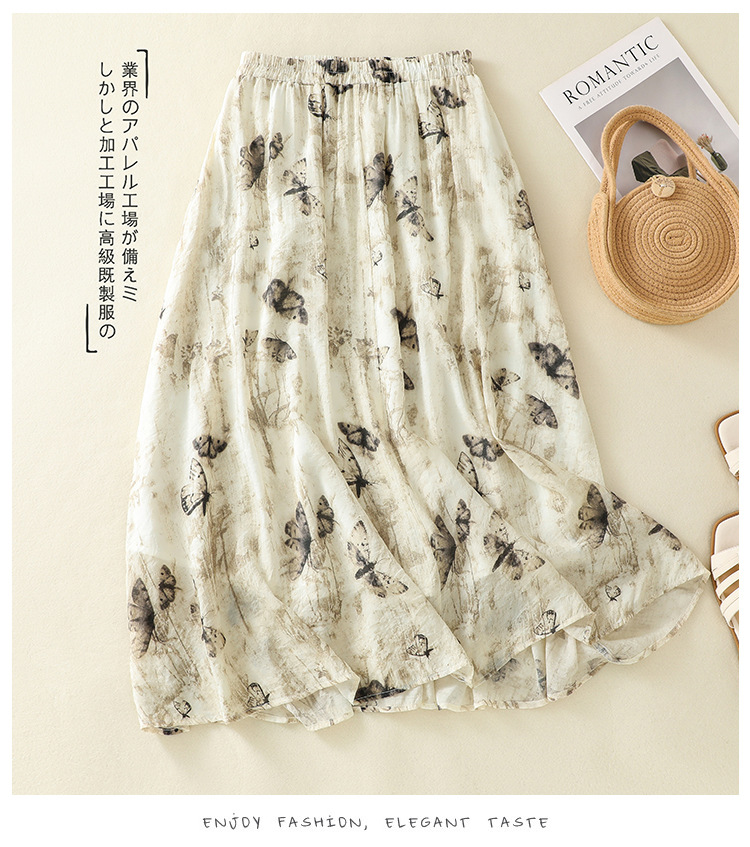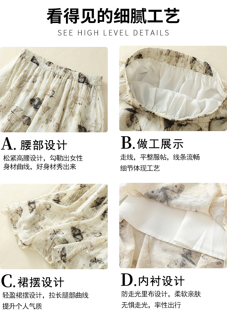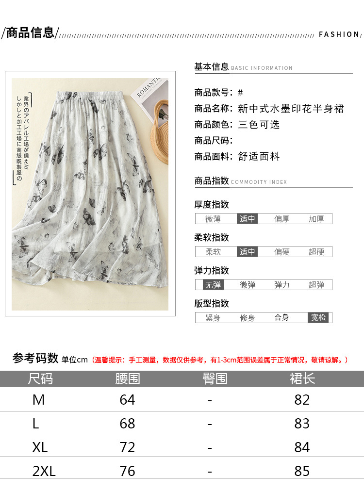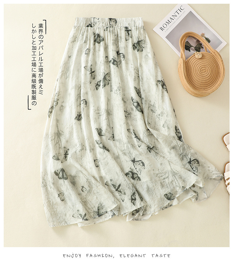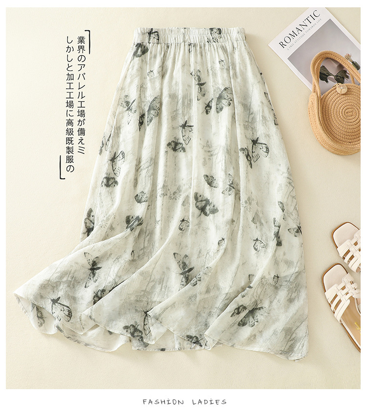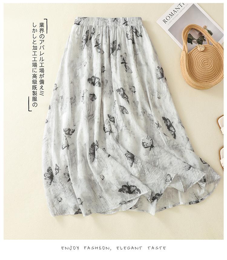 Real shot 2025 summer new new Chinese skirt women's ink printing lined a-word skirt women's clothing