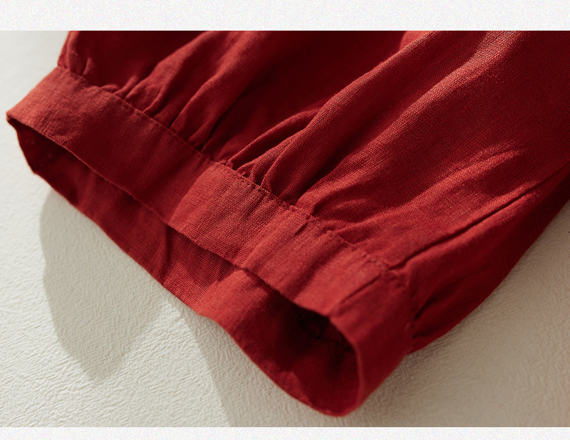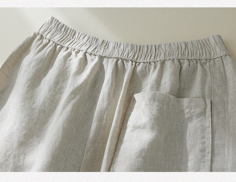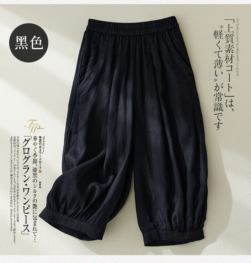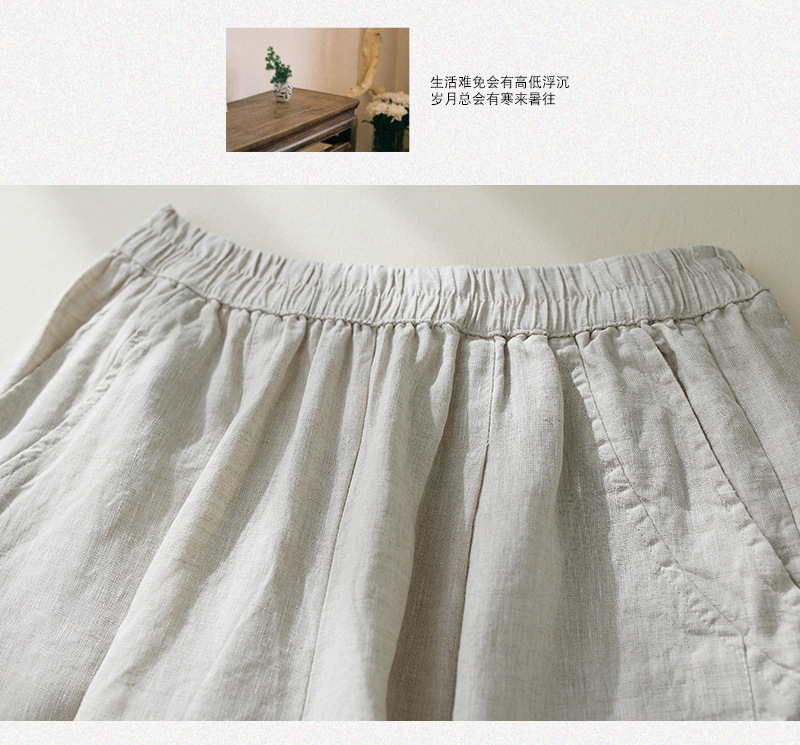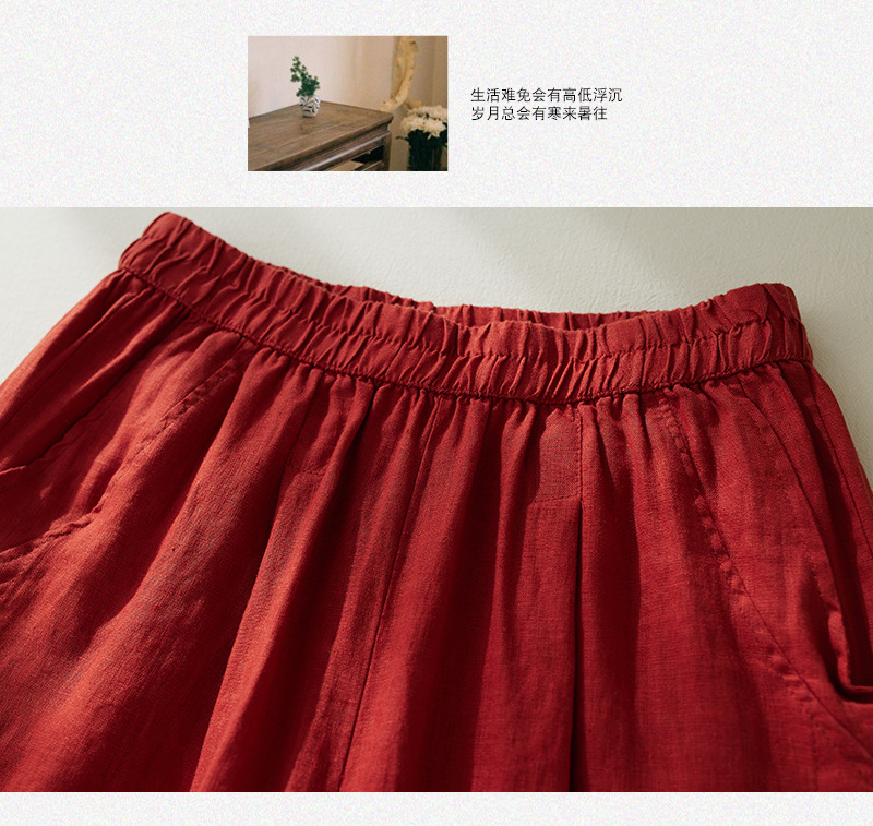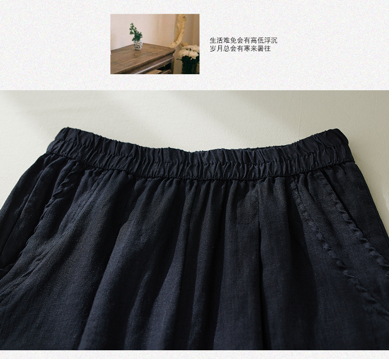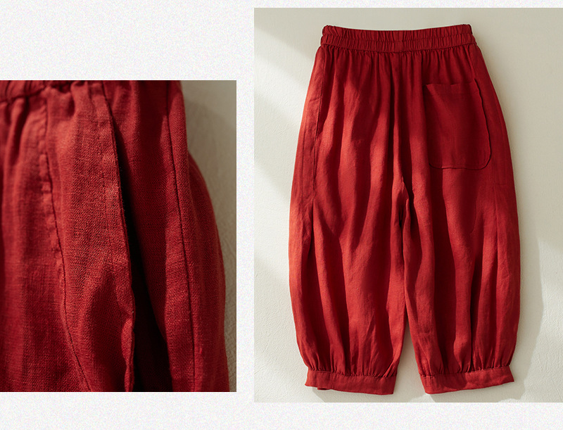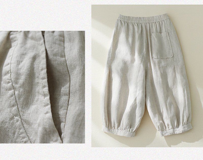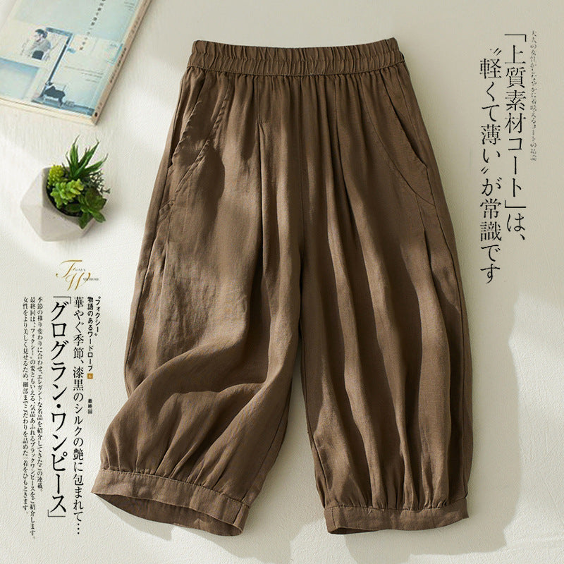 Real shot 2025 summer new retro literary loose cotton and linen elastic waist casual tied feet Harlan five-point pants women