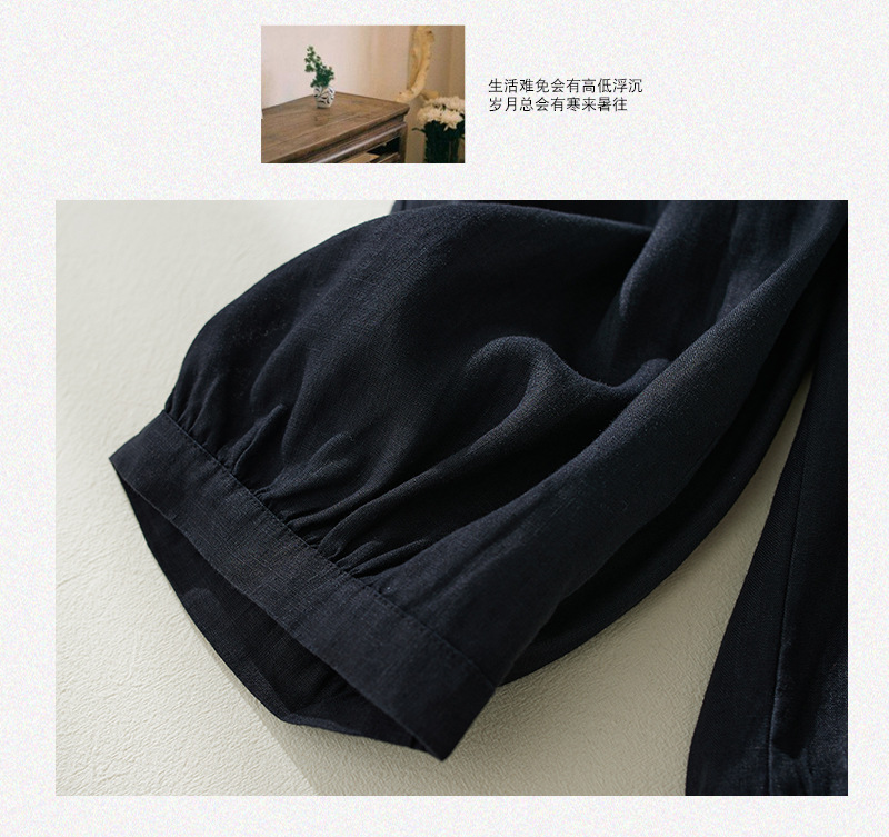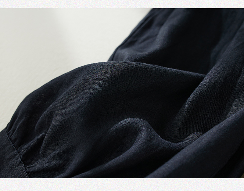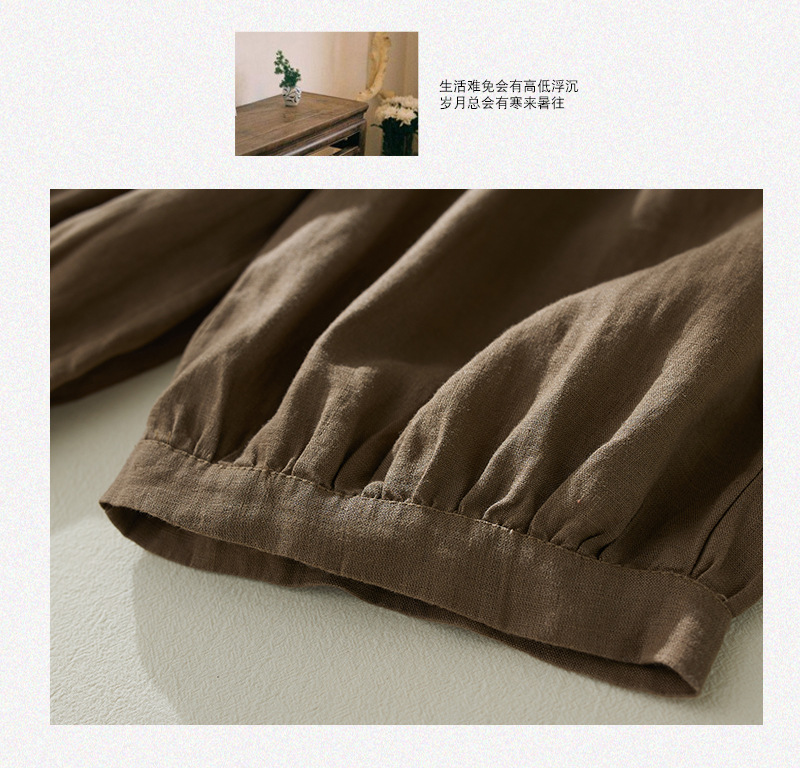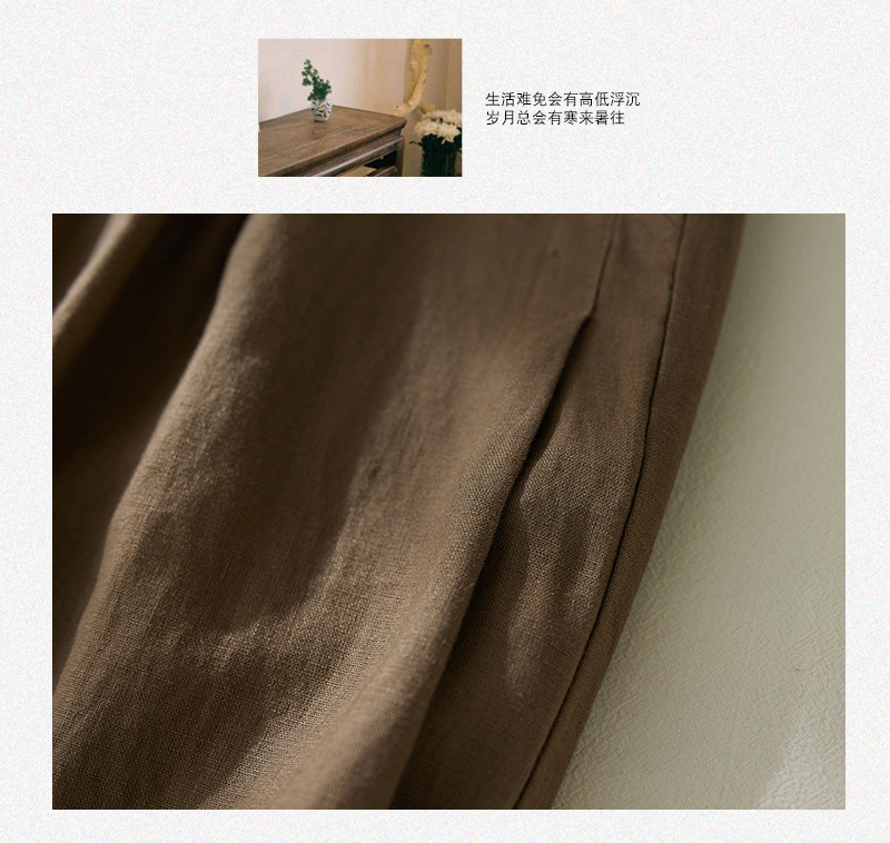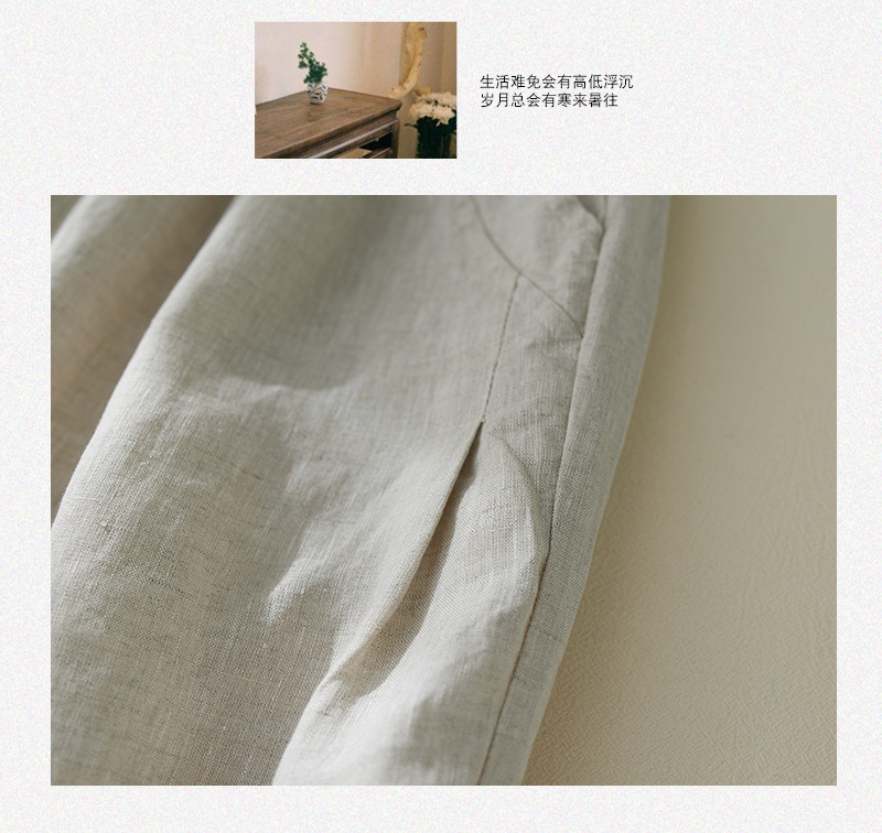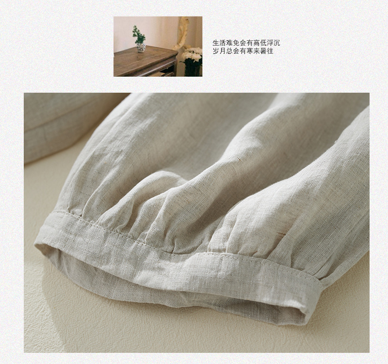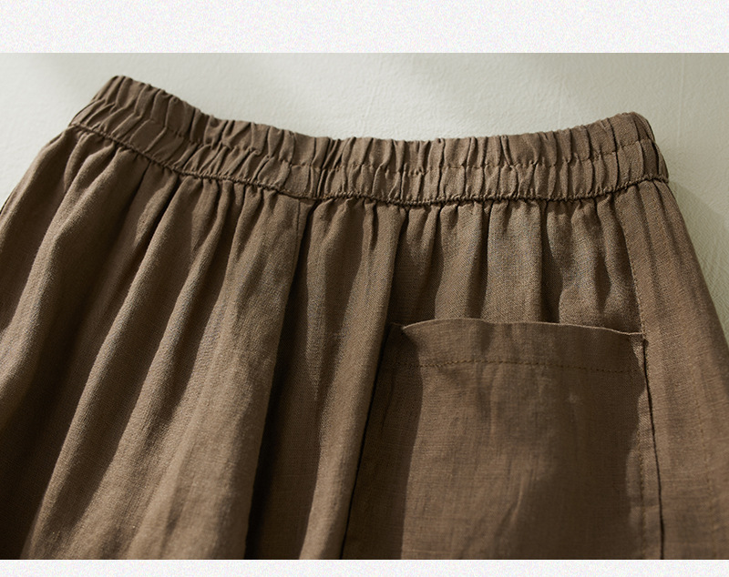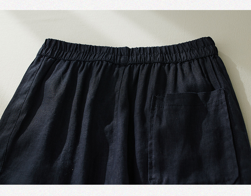 Real shot 2025 summer new retro literary loose cotton and linen elastic waist casual tied feet Harlan five-point pants women