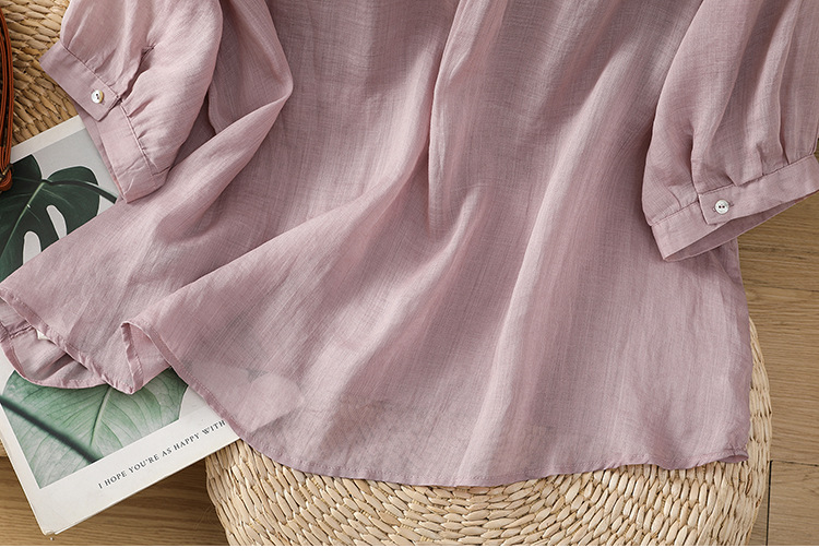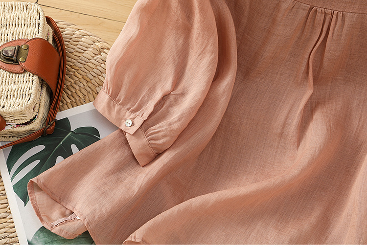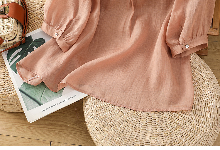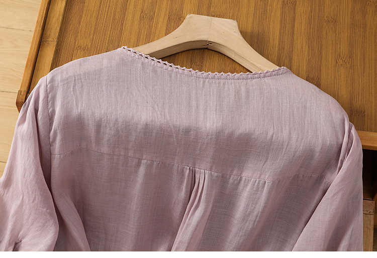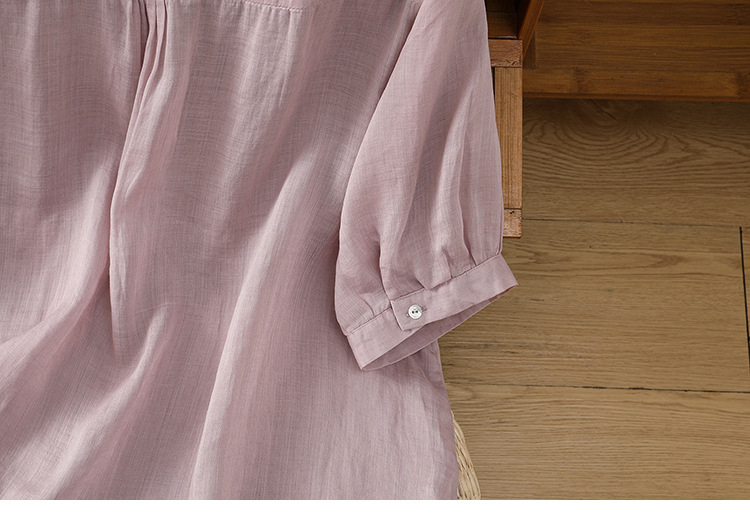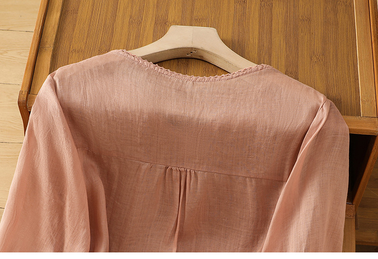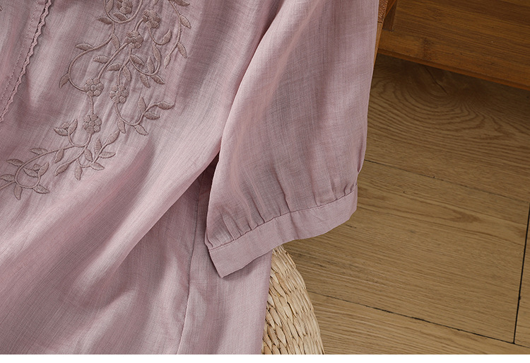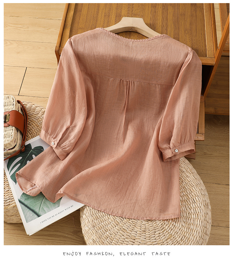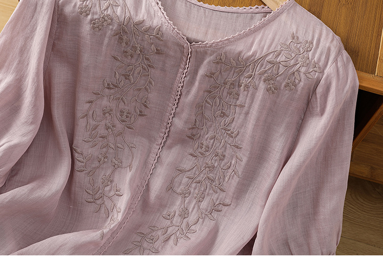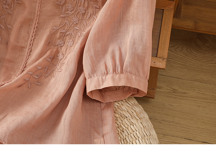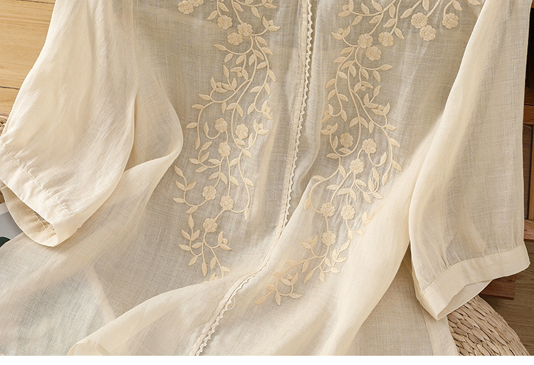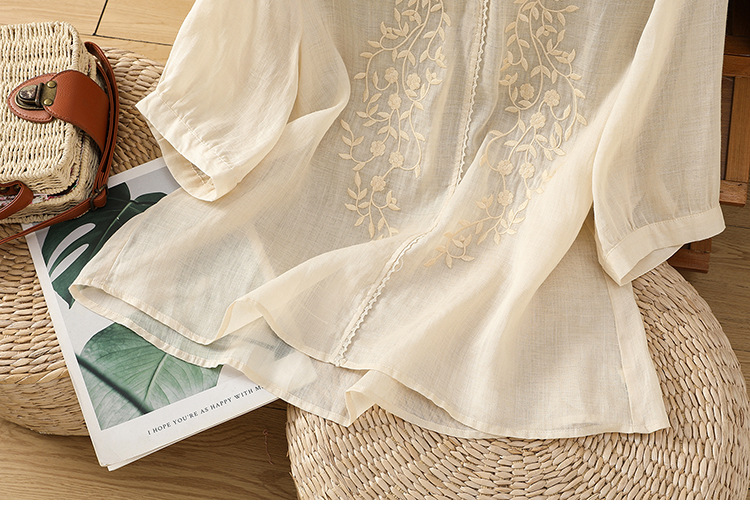 Real shot 2025 summer thin cotton and linen embroidery literary loose V-neck T-shirt shirt top women's clothing