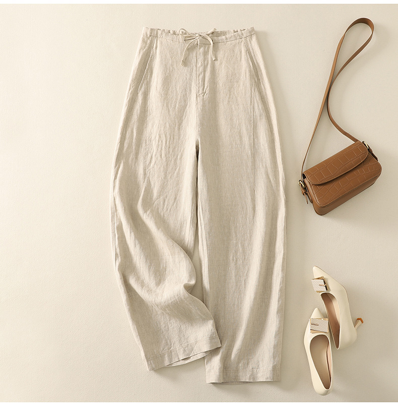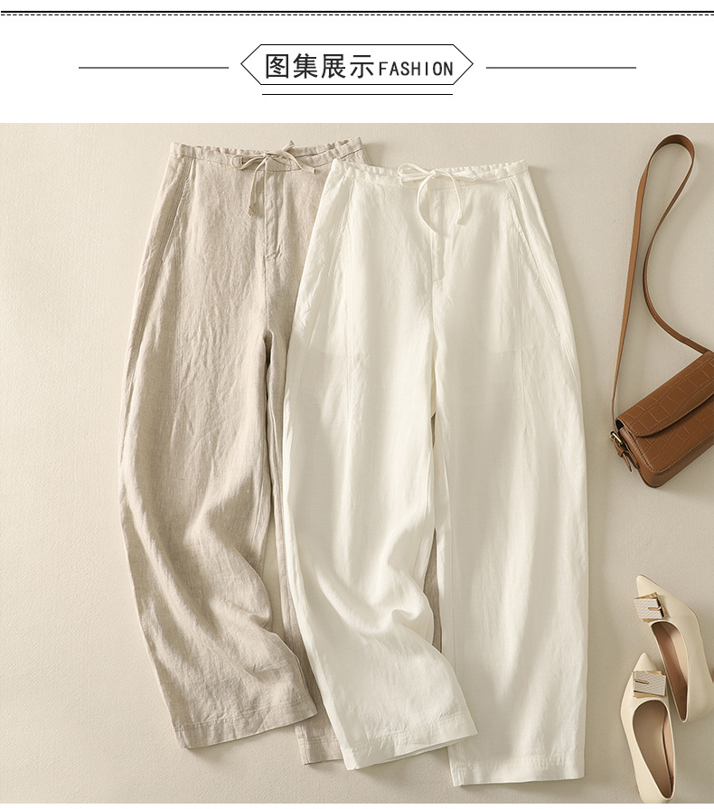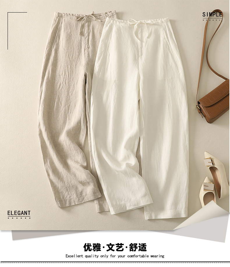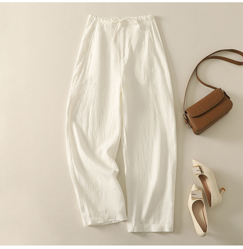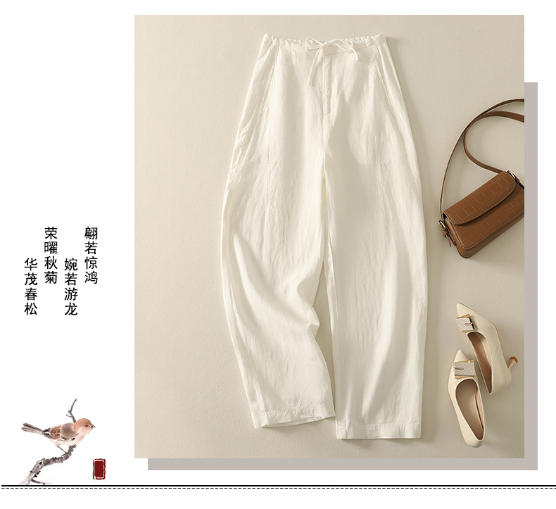 Real shot 2025 summer thin cotton and linen literary loose drape and thin casual pants