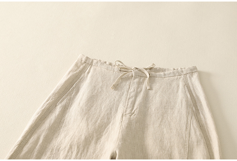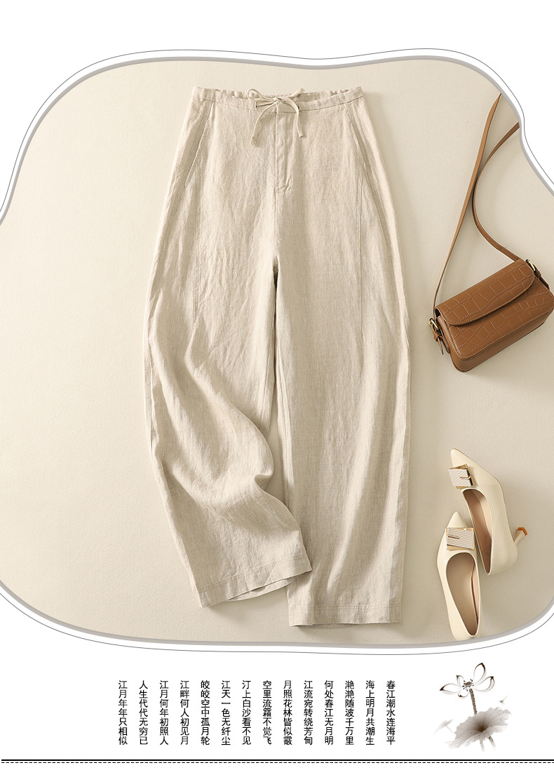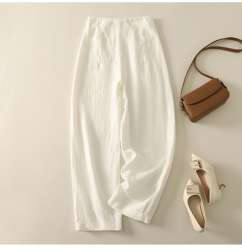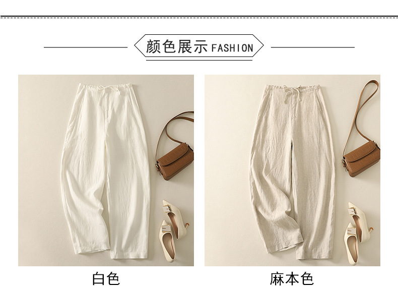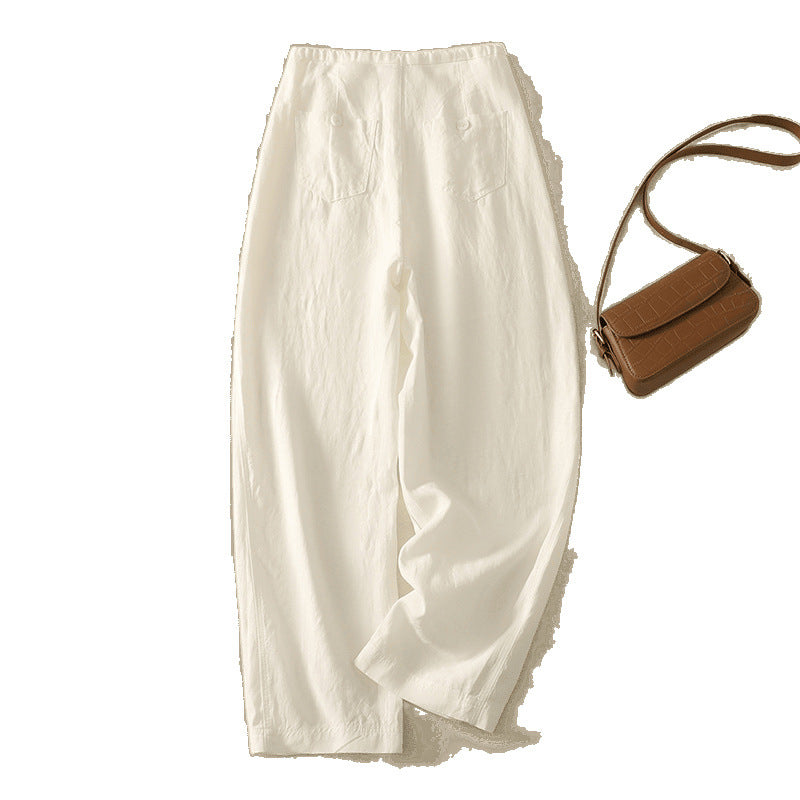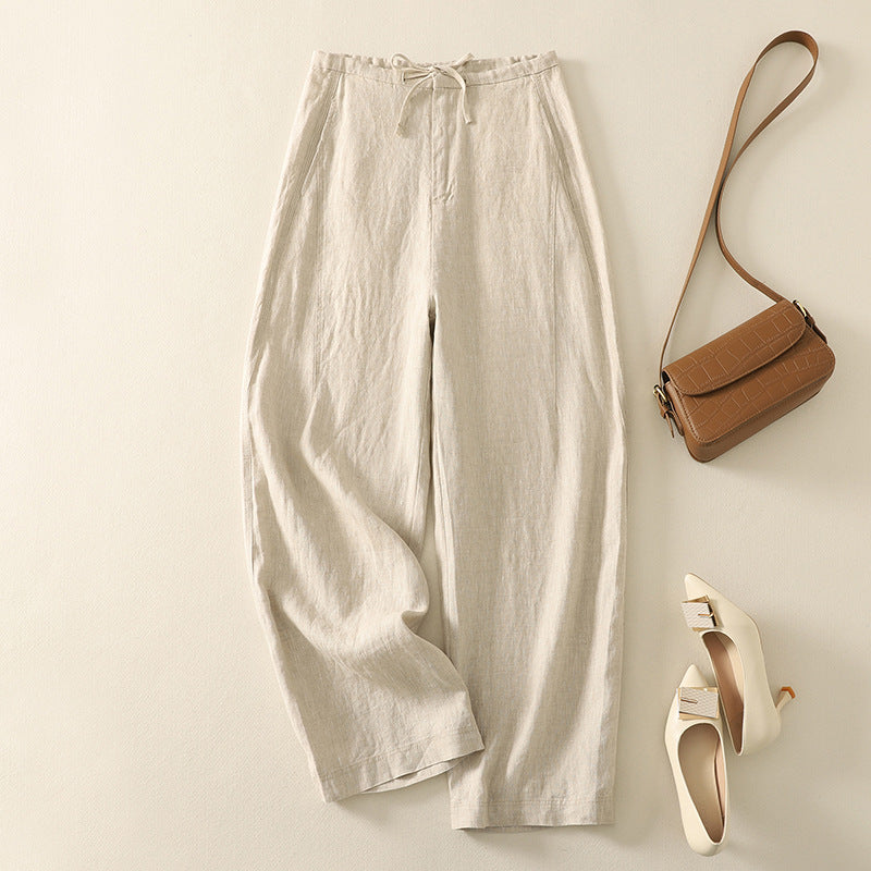 Real shot 2025 summer thin cotton and linen literary loose drape and thin casual pants