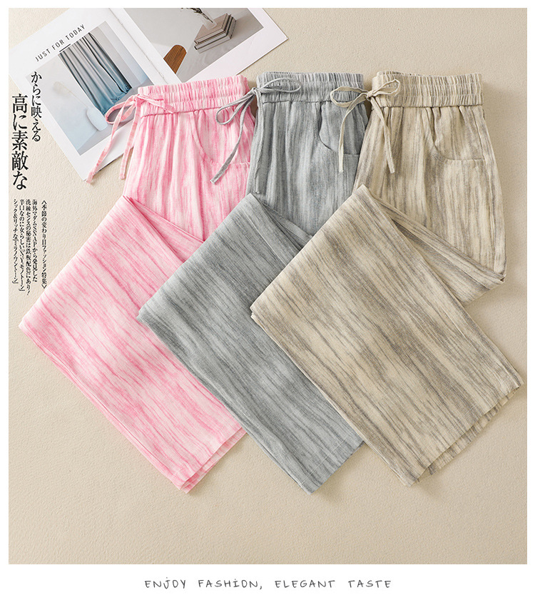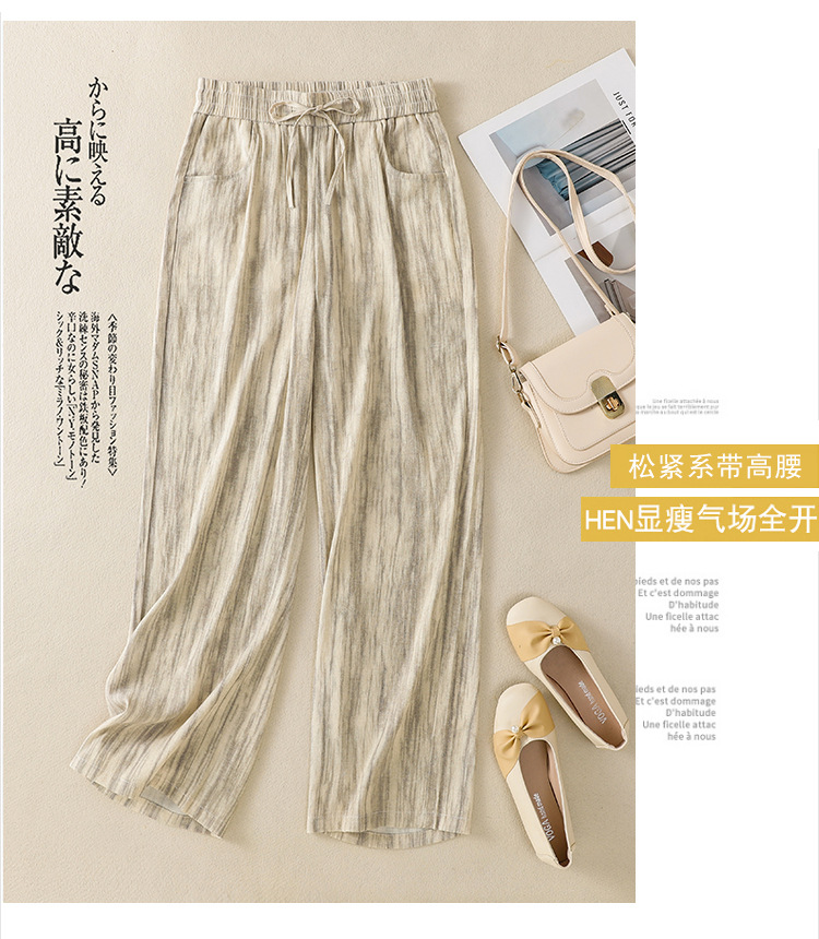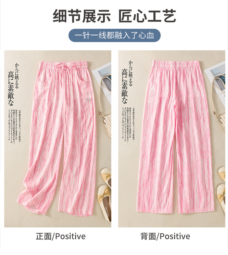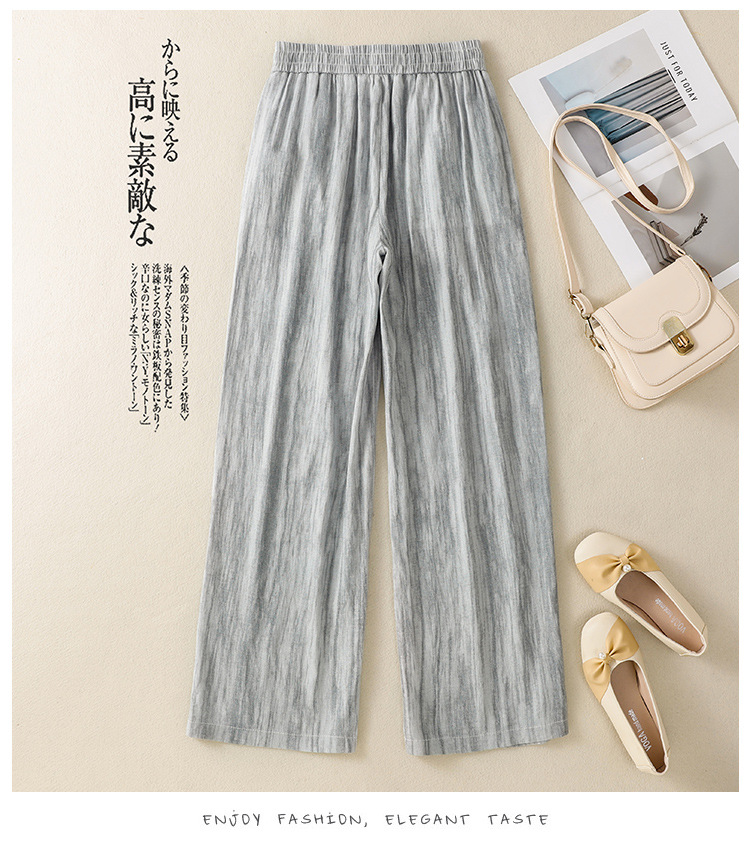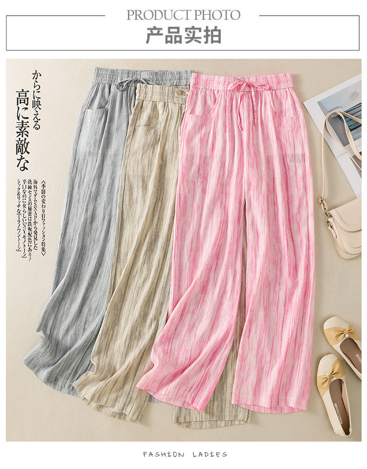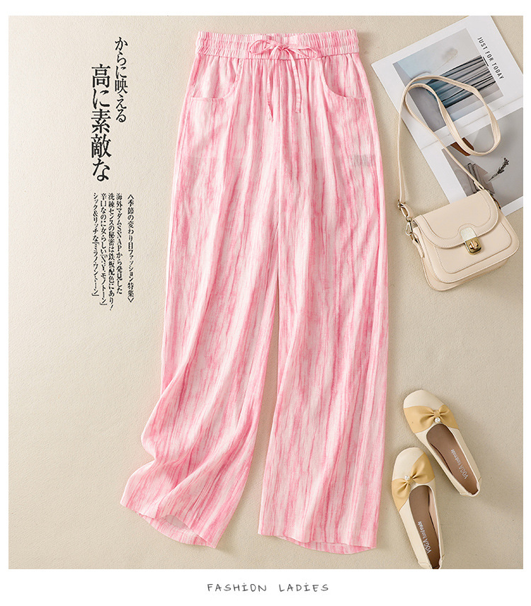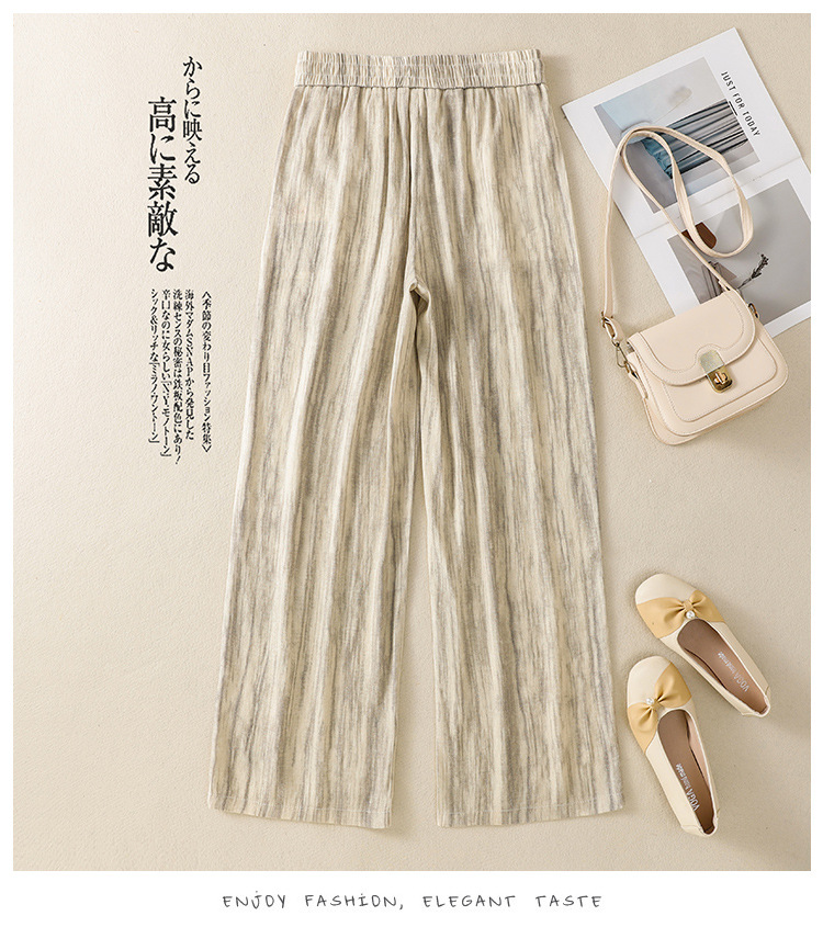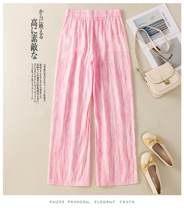 Real shot 2025 summer thin striped cotton and linen wide-leg pants tie-dye design high waist loose and thin straight pants women
