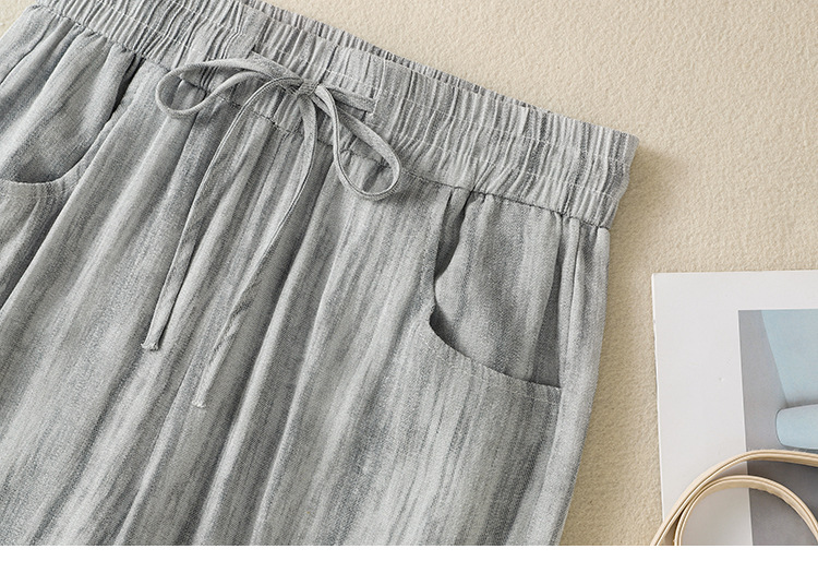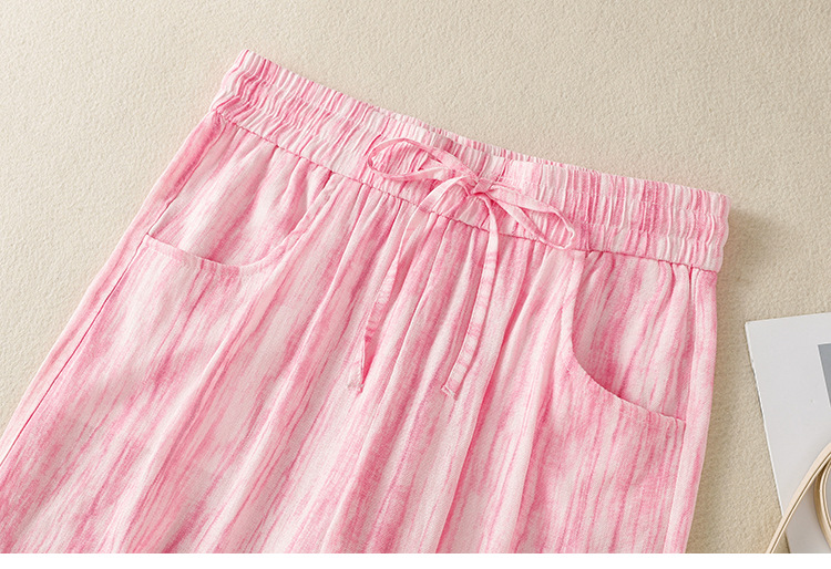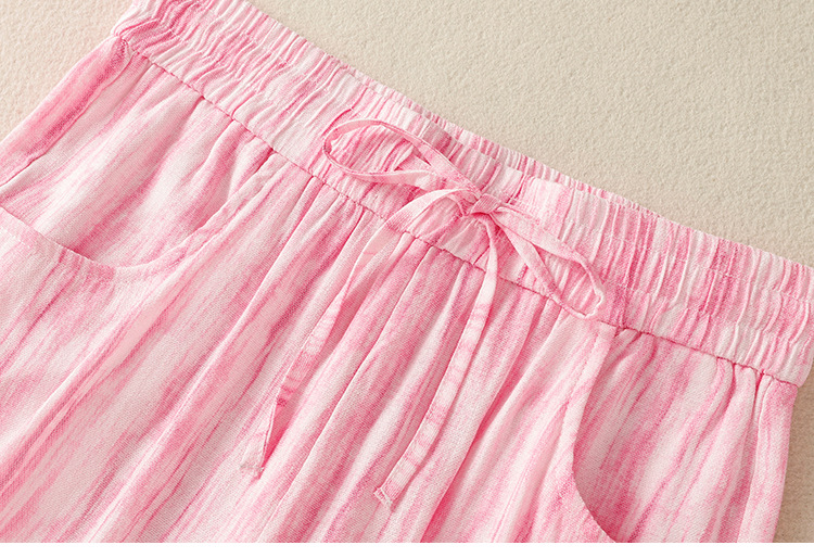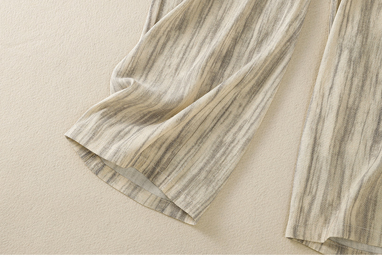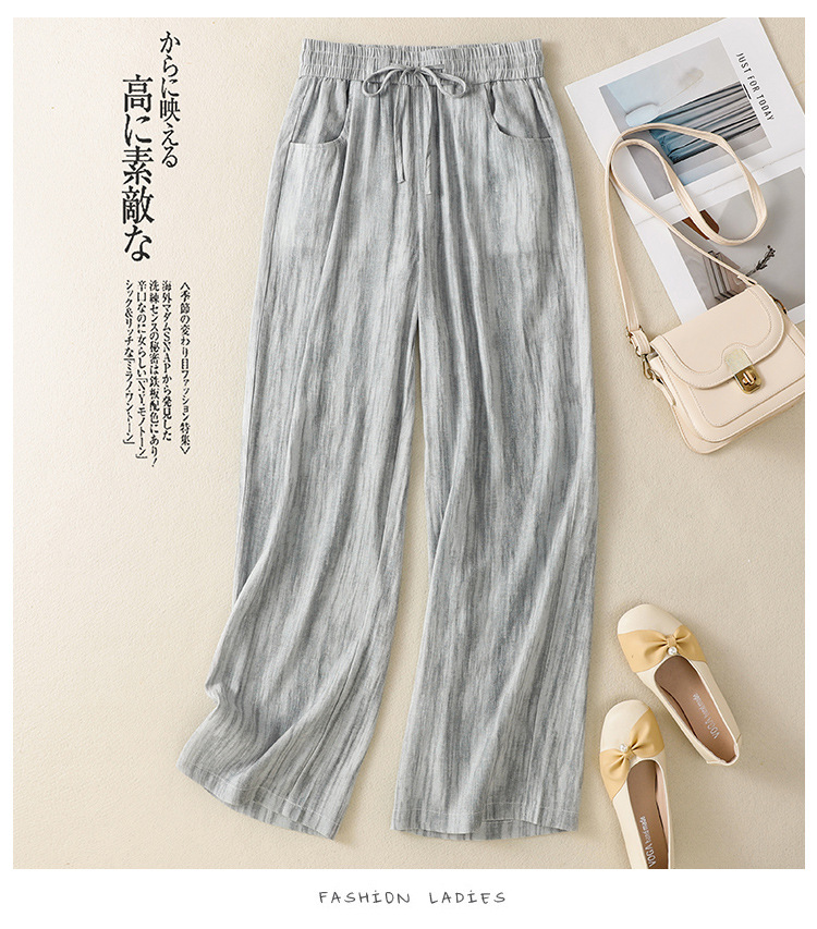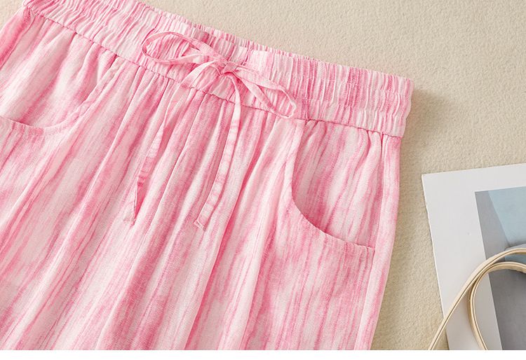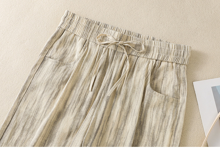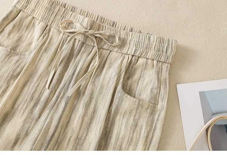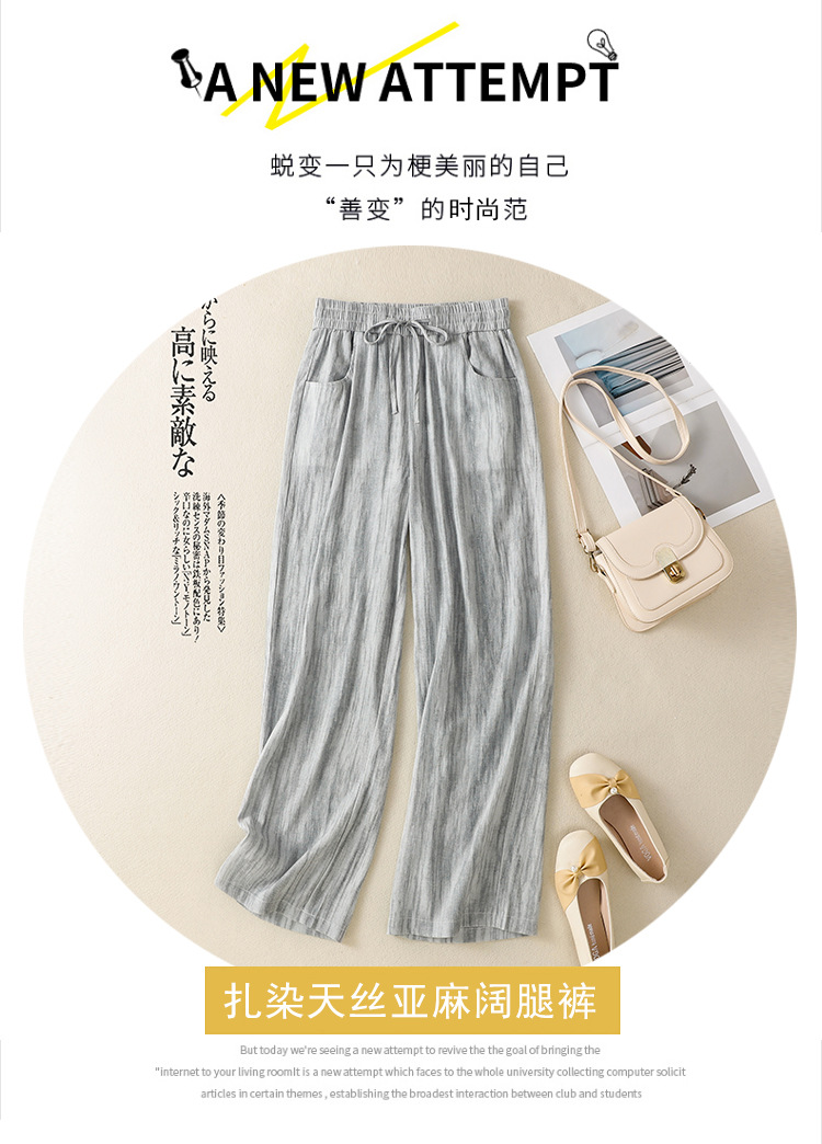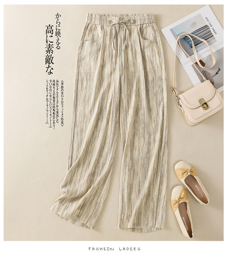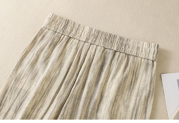 Real shot 2025 summer thin striped cotton and linen wide-leg pants tie-dye design high waist loose and thin straight pants women