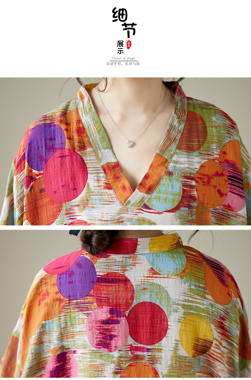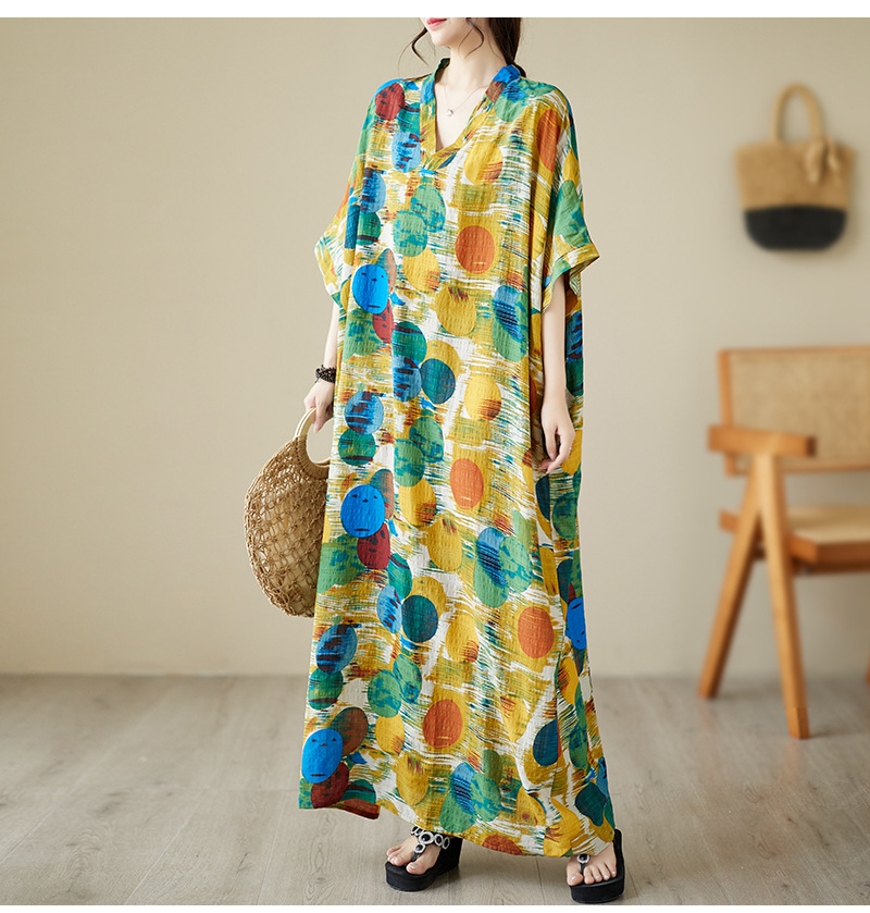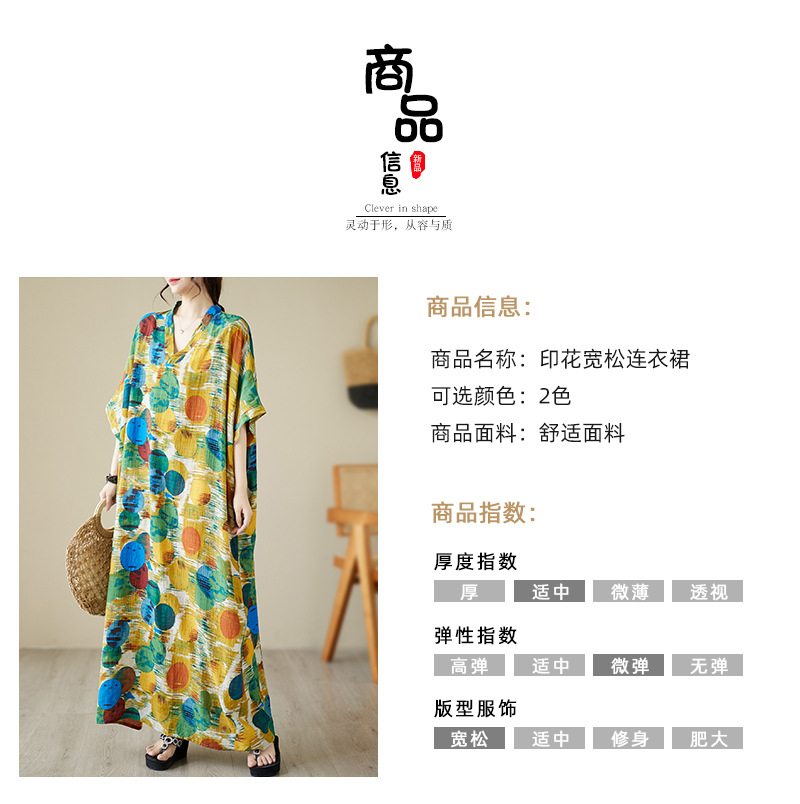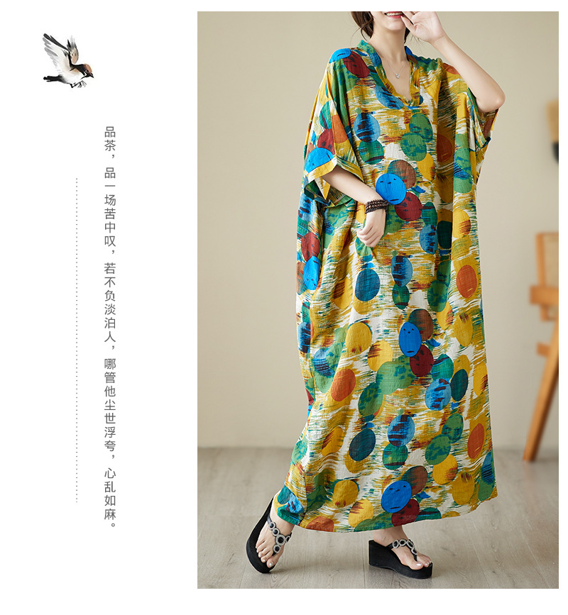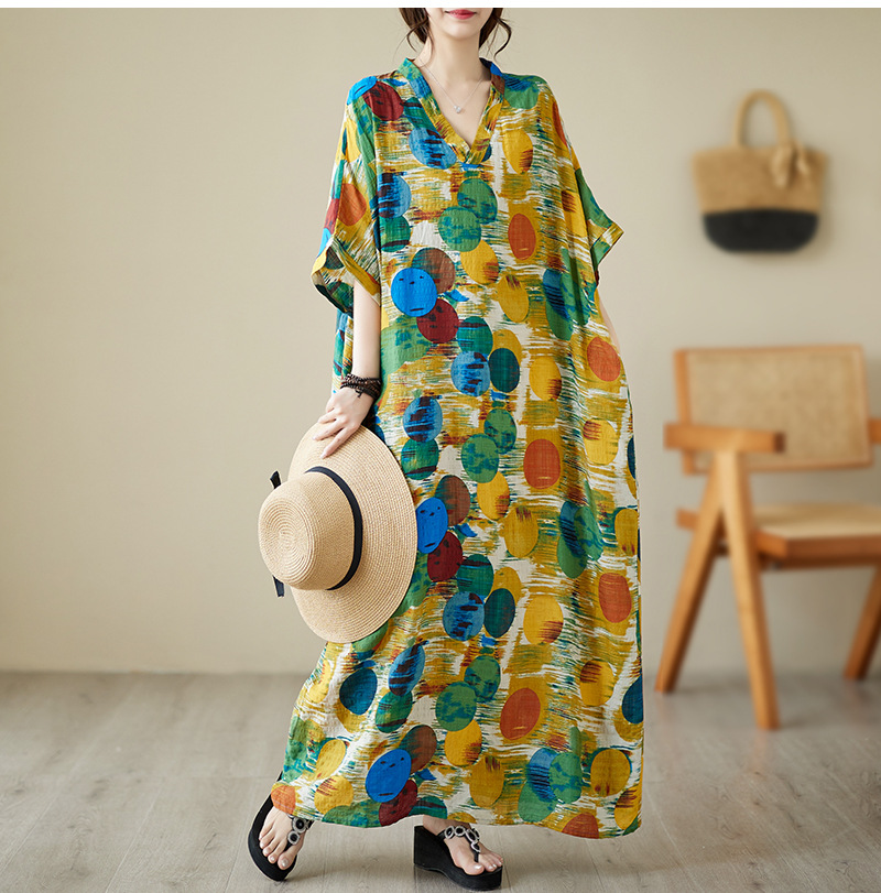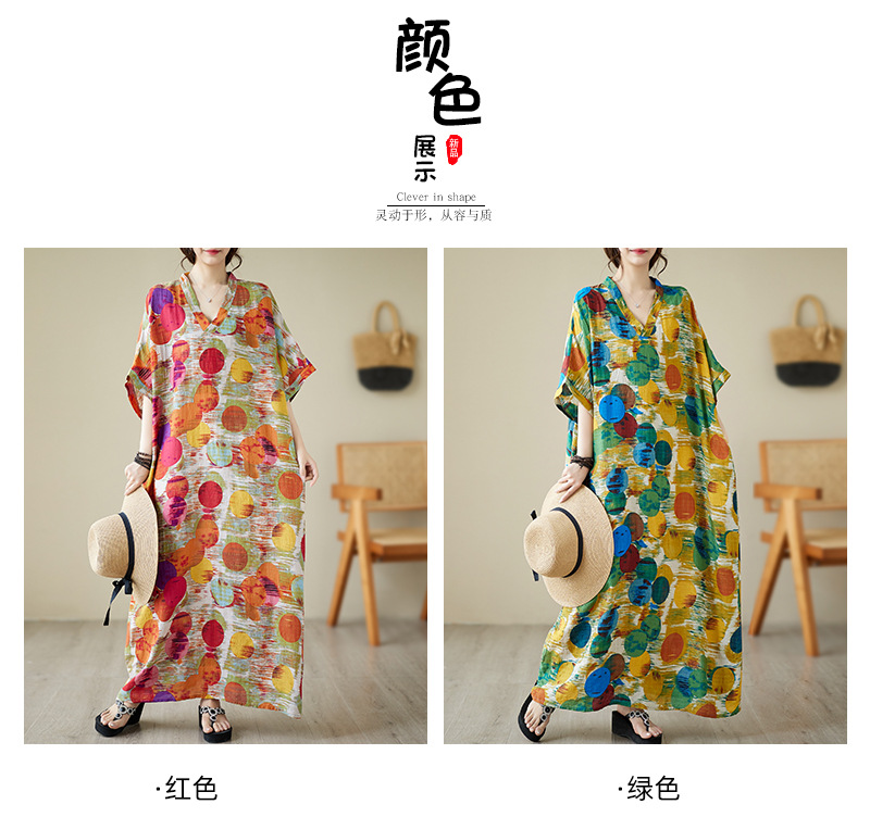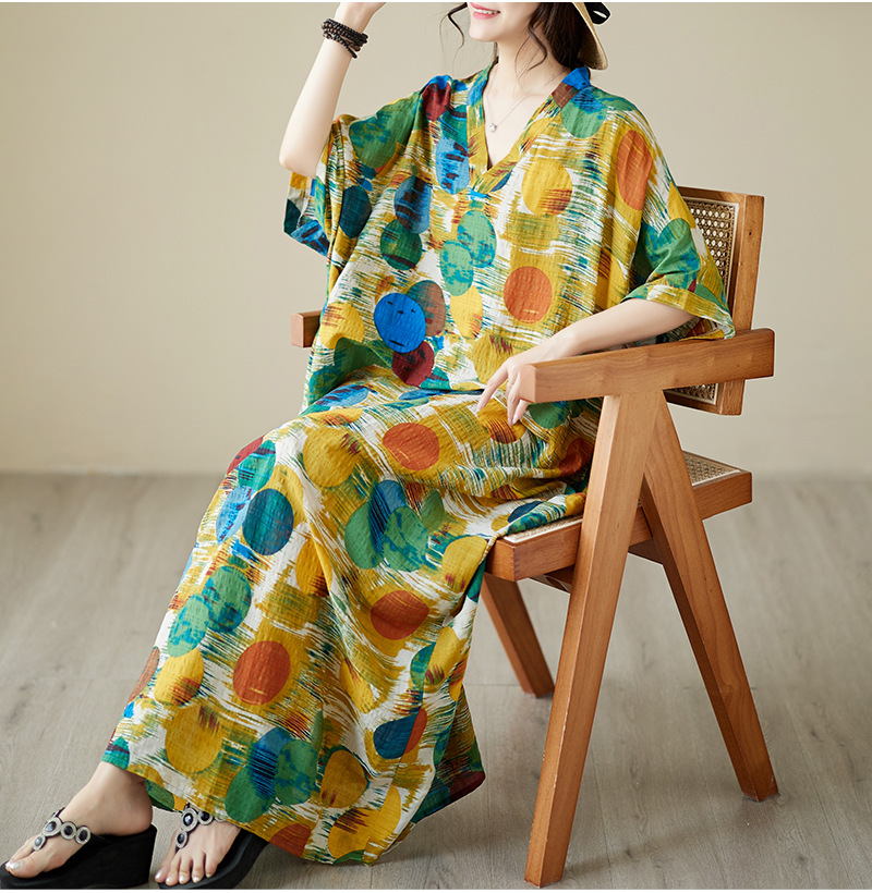 Real shot 2025 summer thin V-neck cotton and linen large size loose literary holiday wind beach dress long women