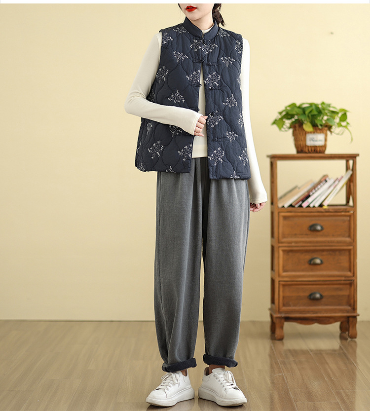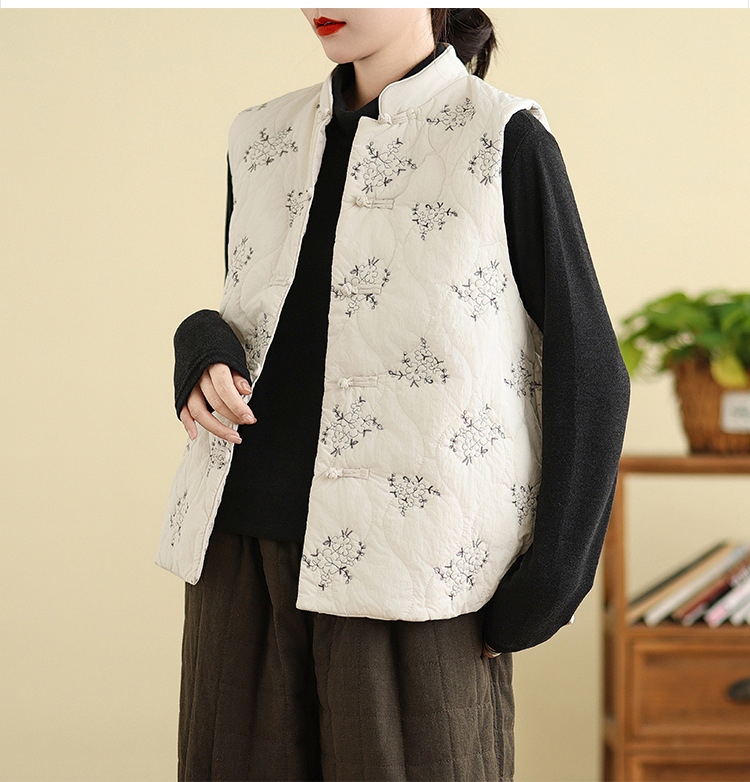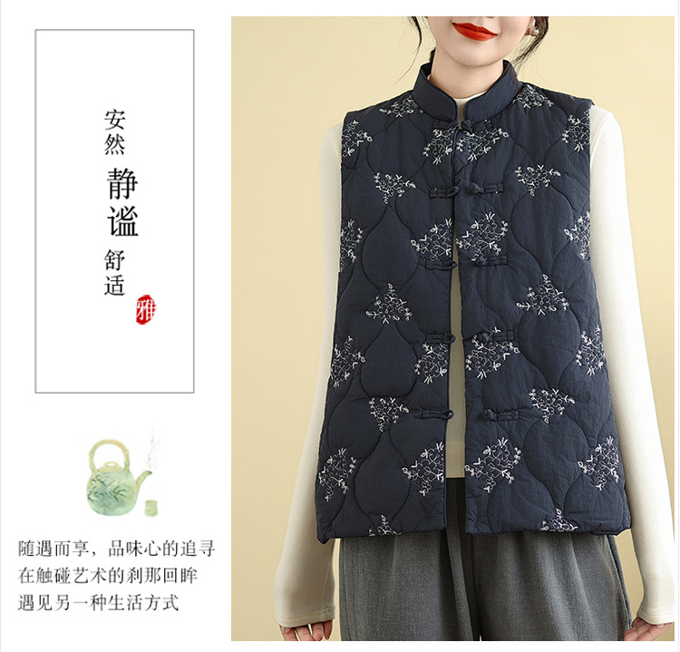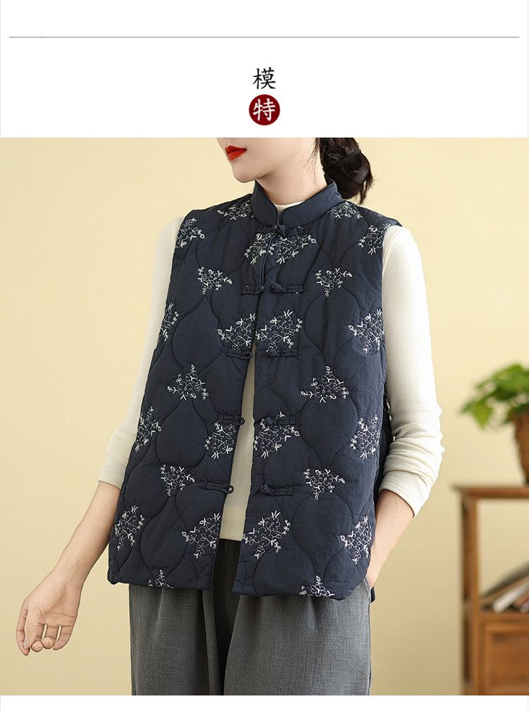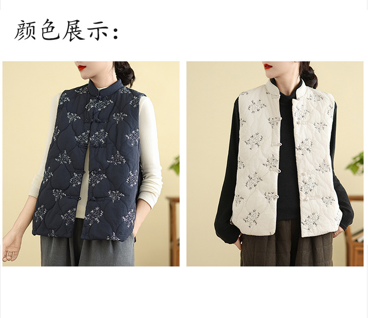 Real shot 2025 winter new heavy industry embroidered down cotton clothes vest retro new Chinese vest warm jacket