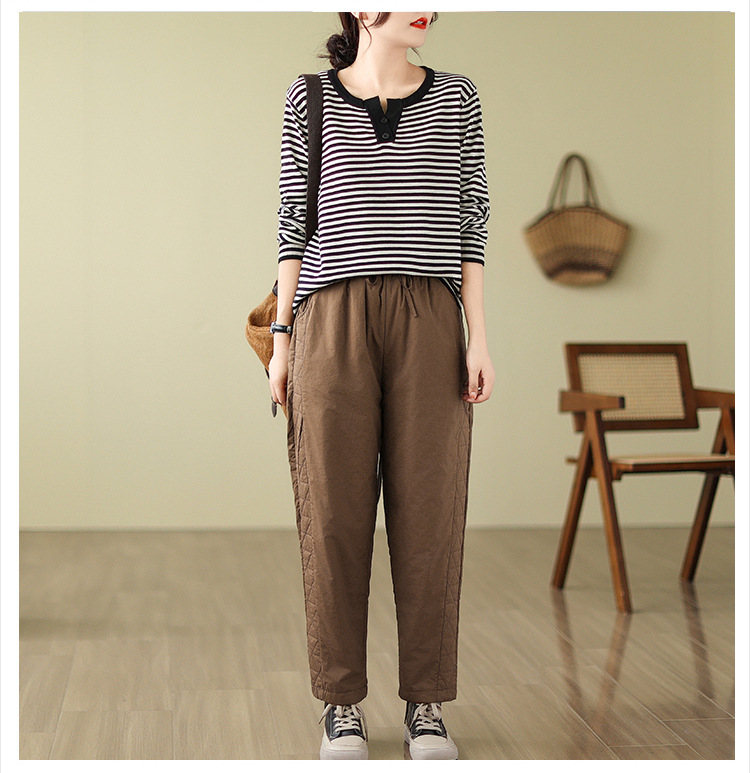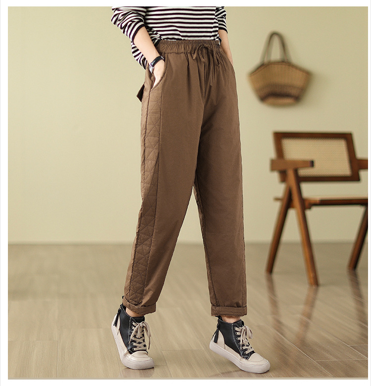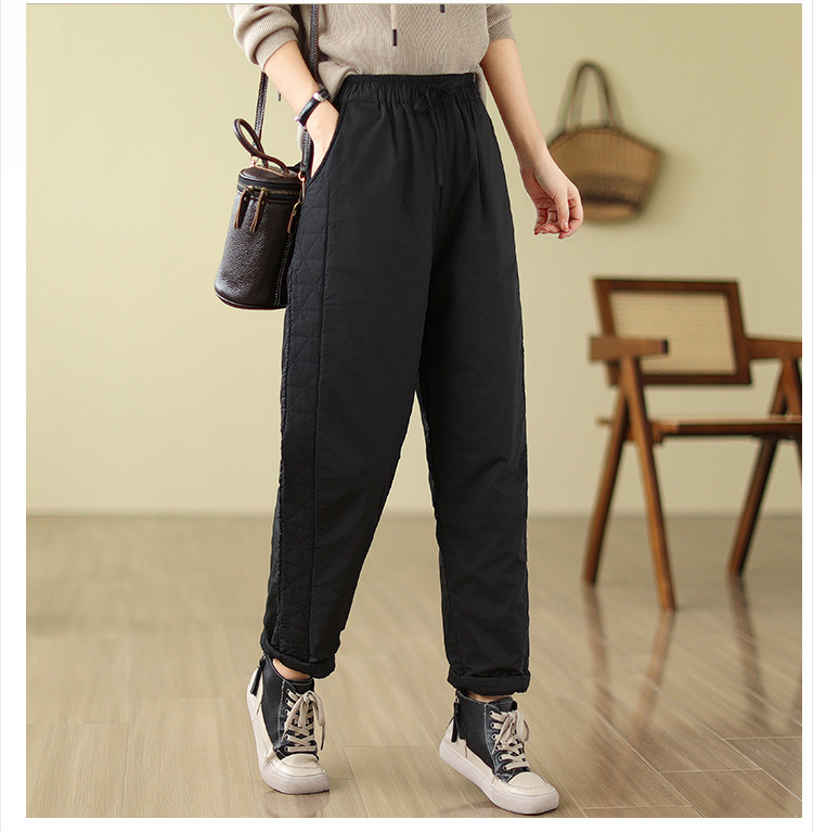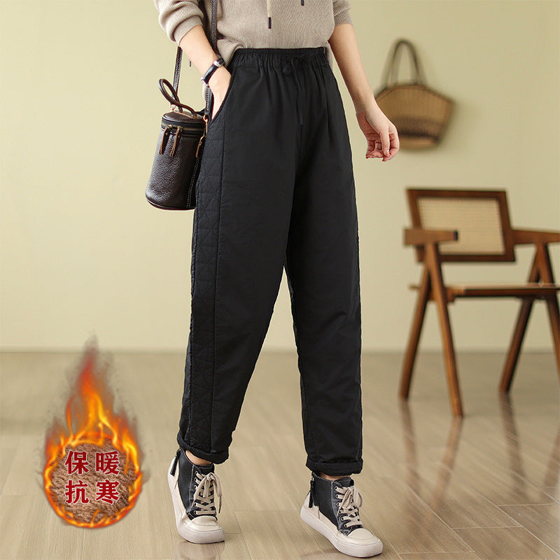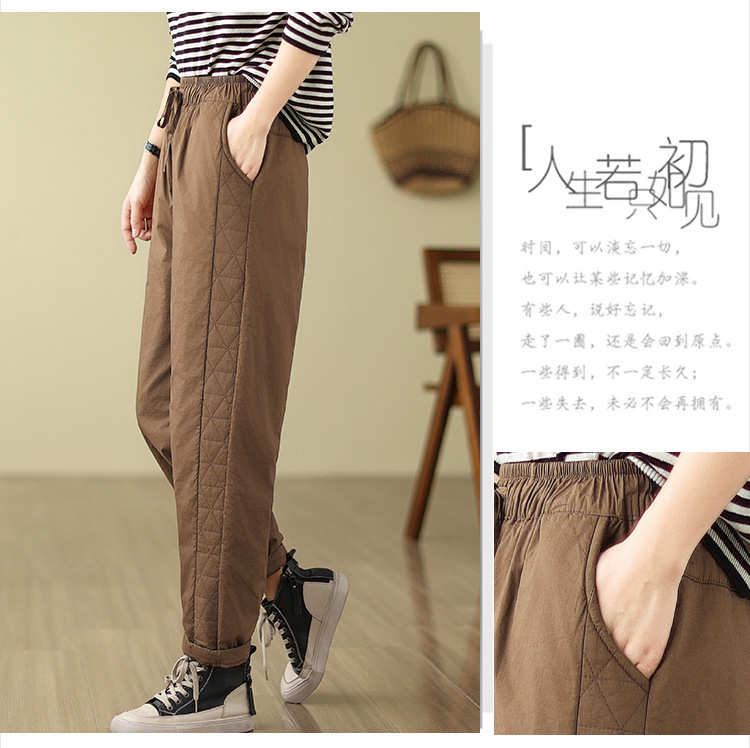Real shot 2025 winter new retro padded thickened casual and thin Harlan pants loose outer cotton pants women