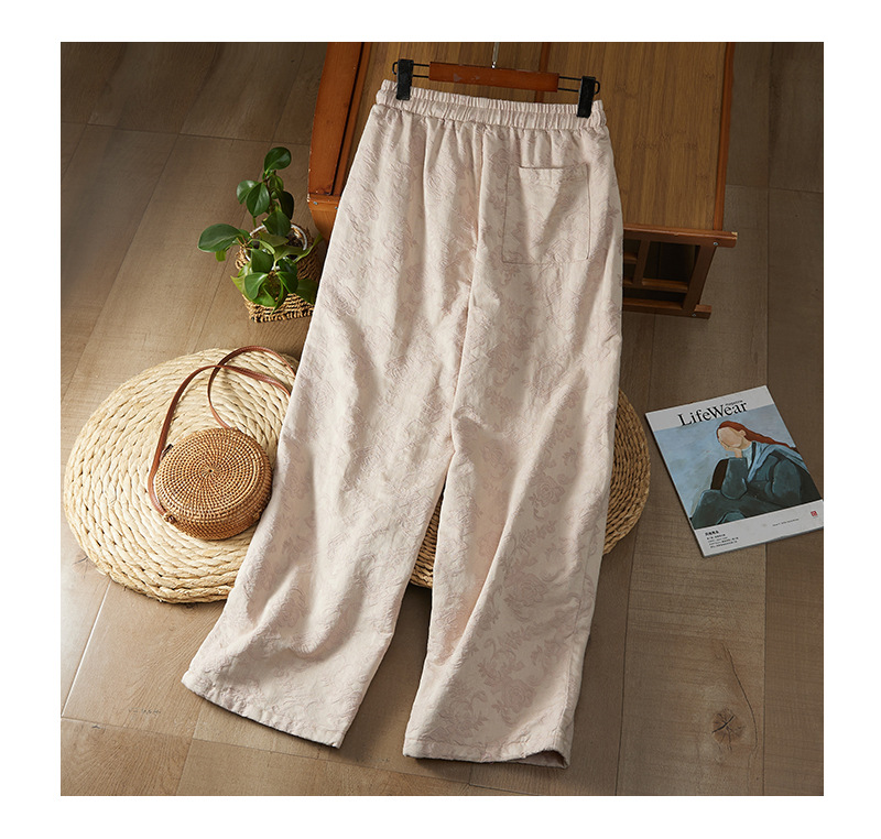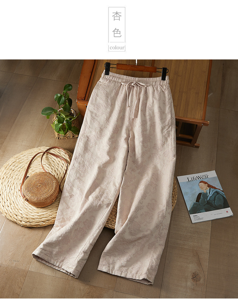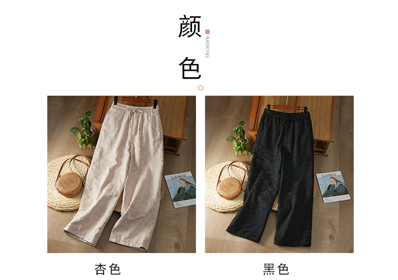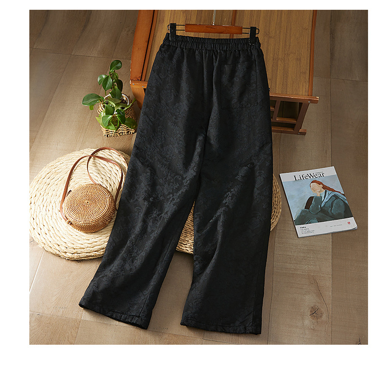 Real shot new Chinese jacquard 2025 winter national style retro loose and thin casual thickened cotton-padded wide-leg pants outer wear