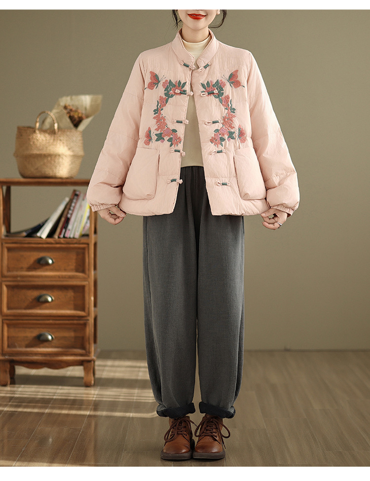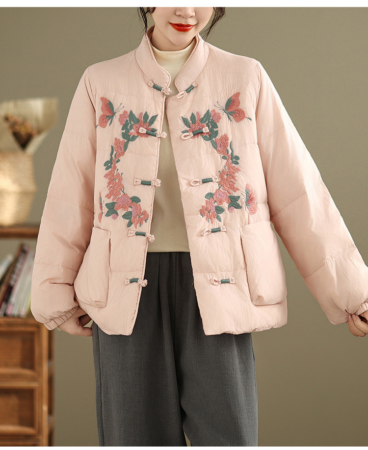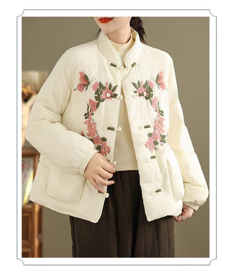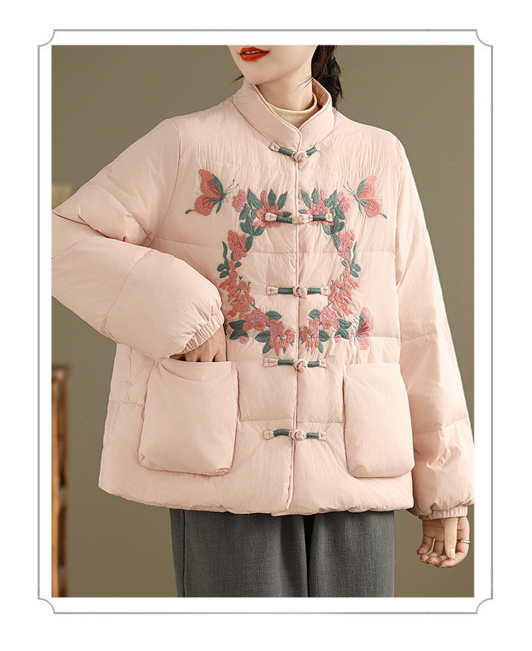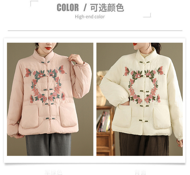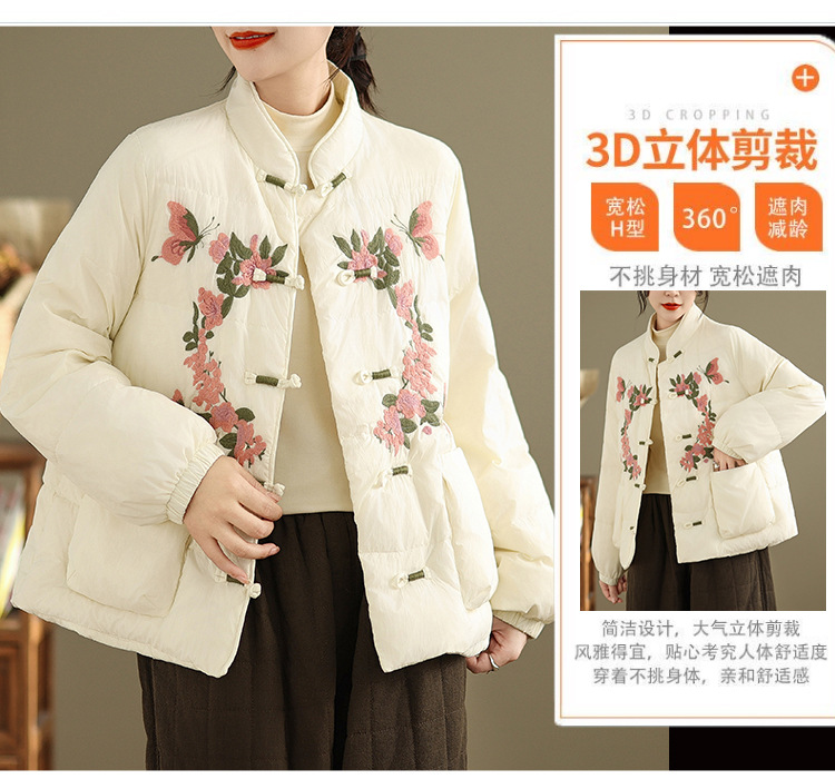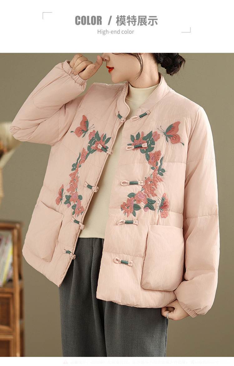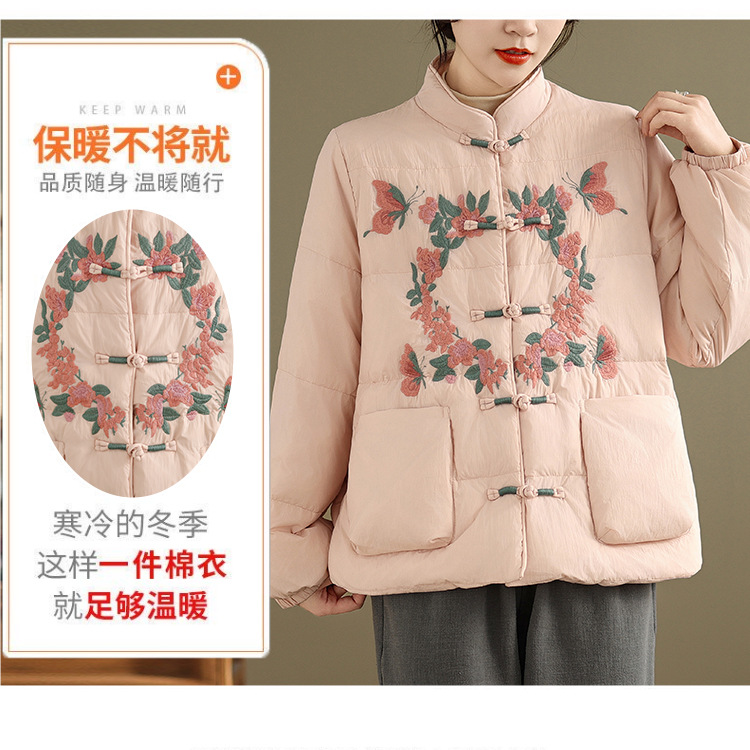 Real shot original winter 2025 new down cotton heavy industry embroidered stand-up collar cotton jacket women's light national style buckle jacket