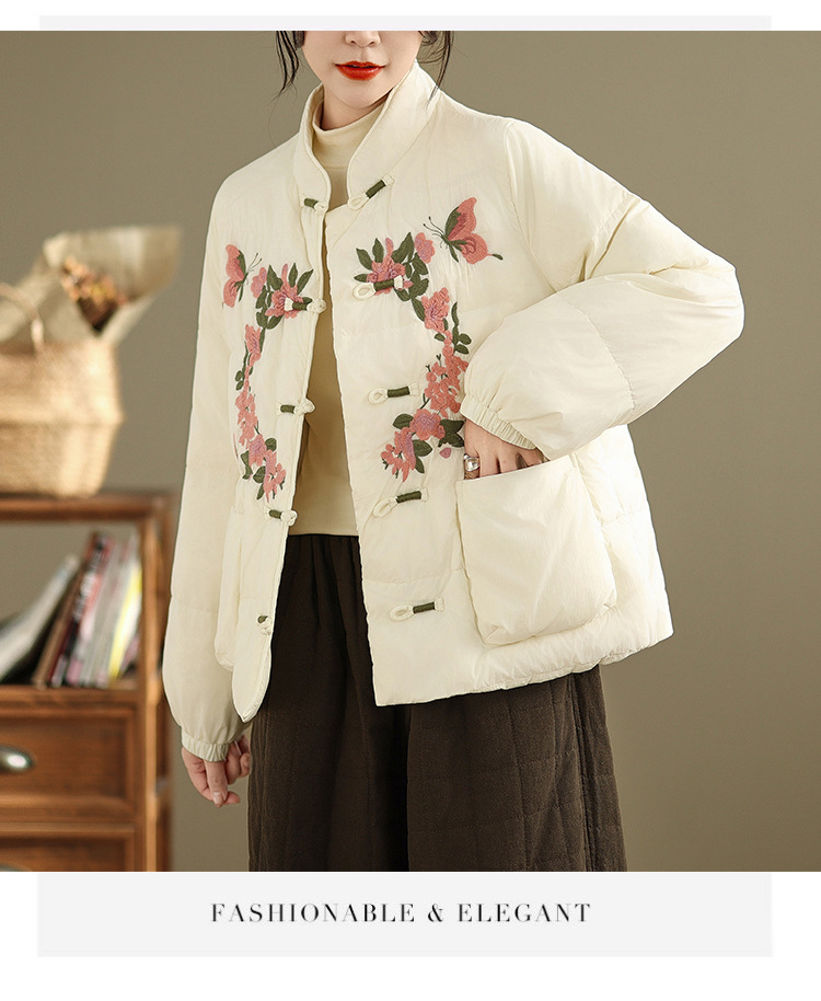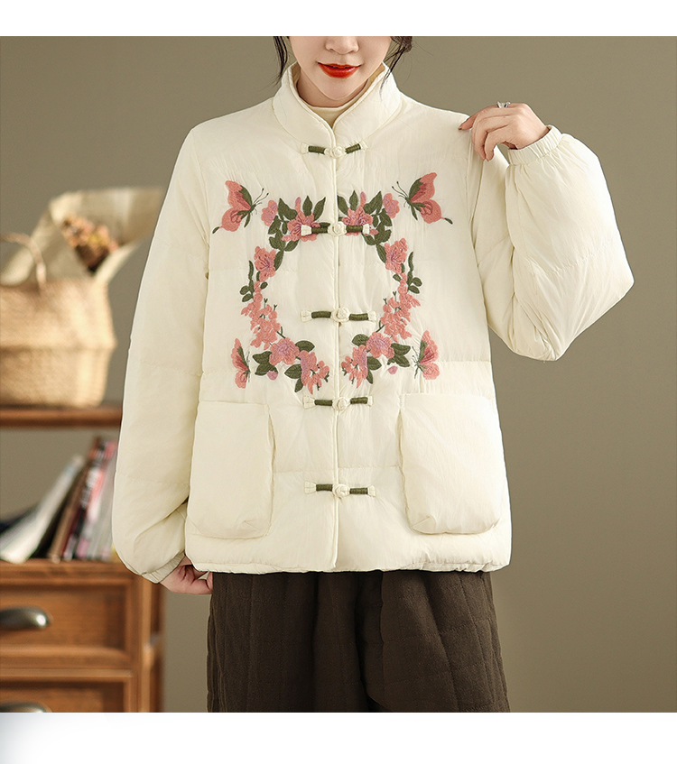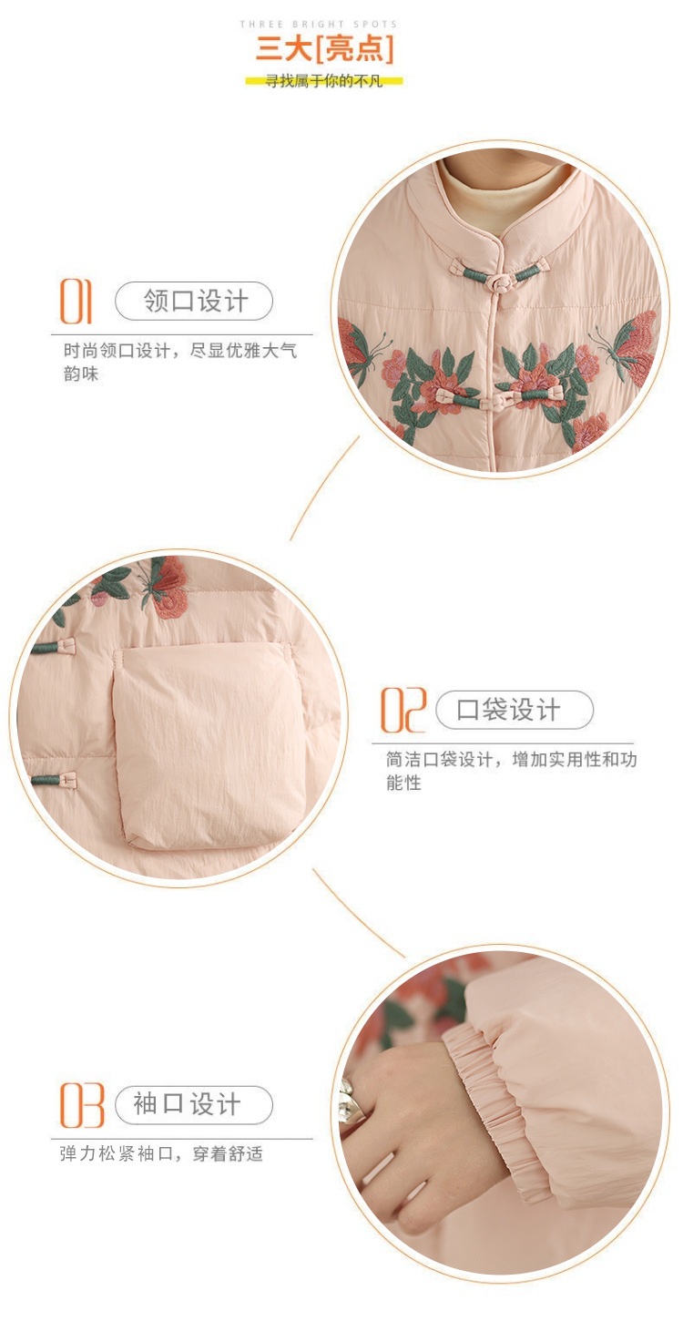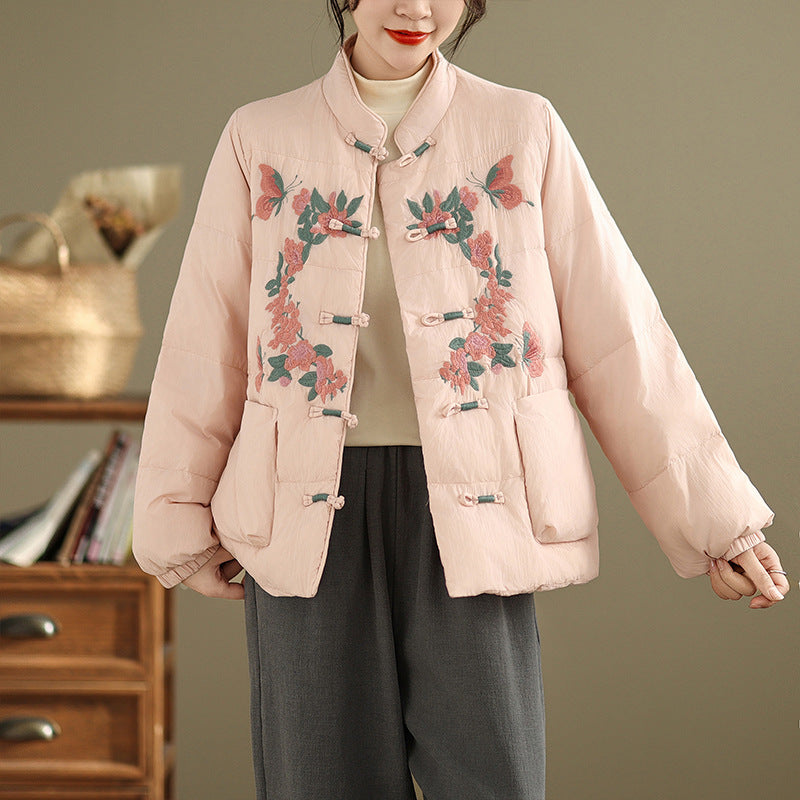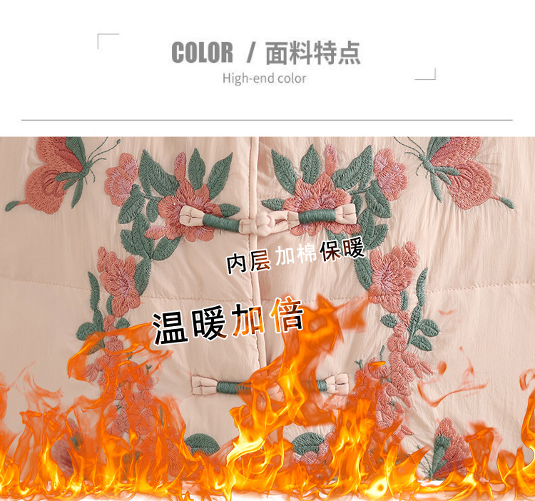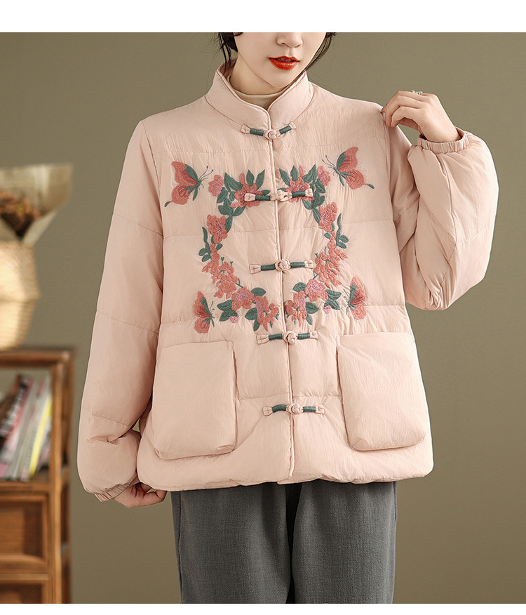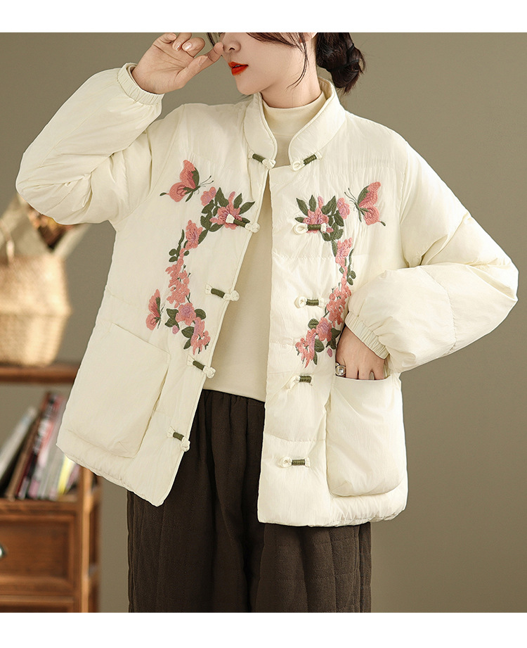 Real shot original winter 2025 new down cotton heavy industry embroidered stand-up collar cotton jacket women's light national style buckle jacket