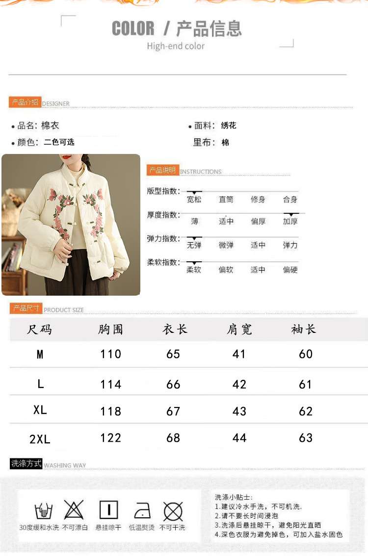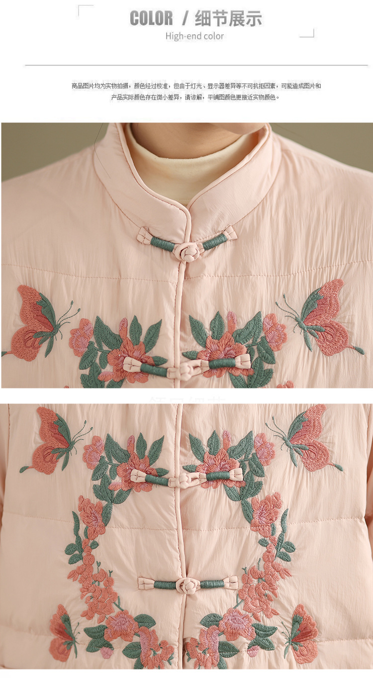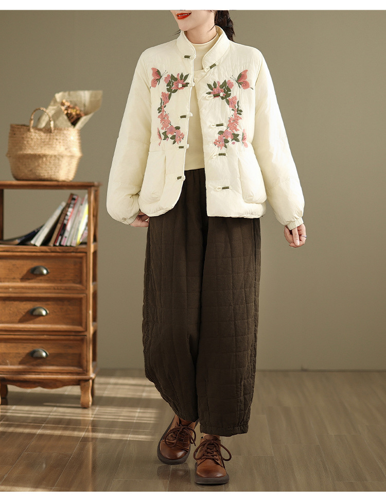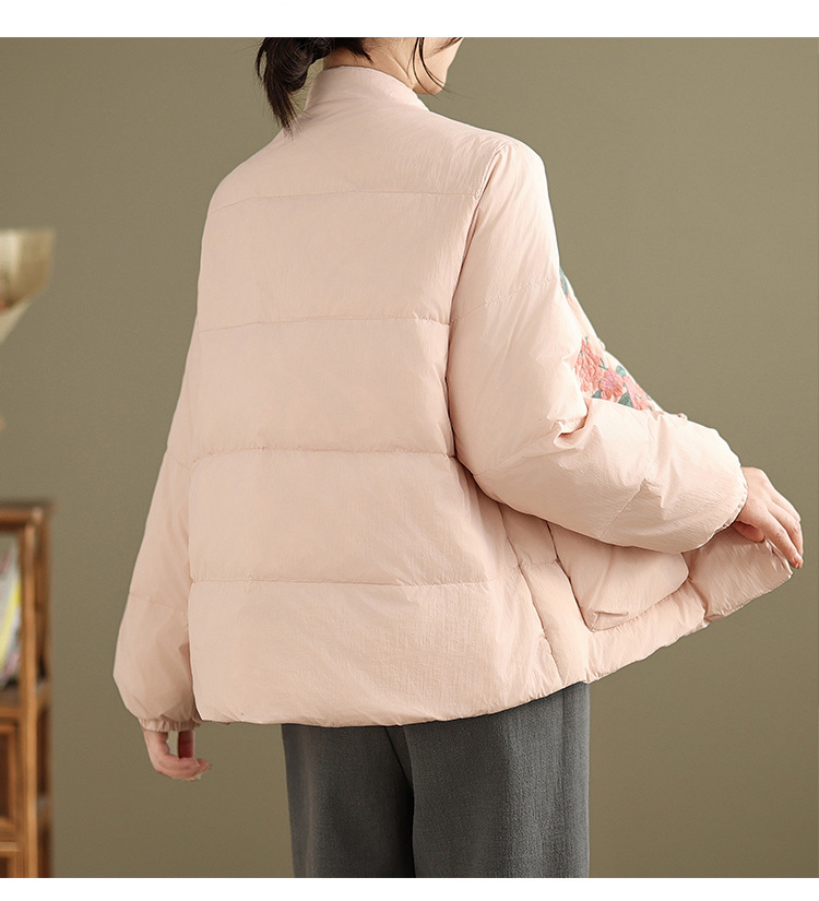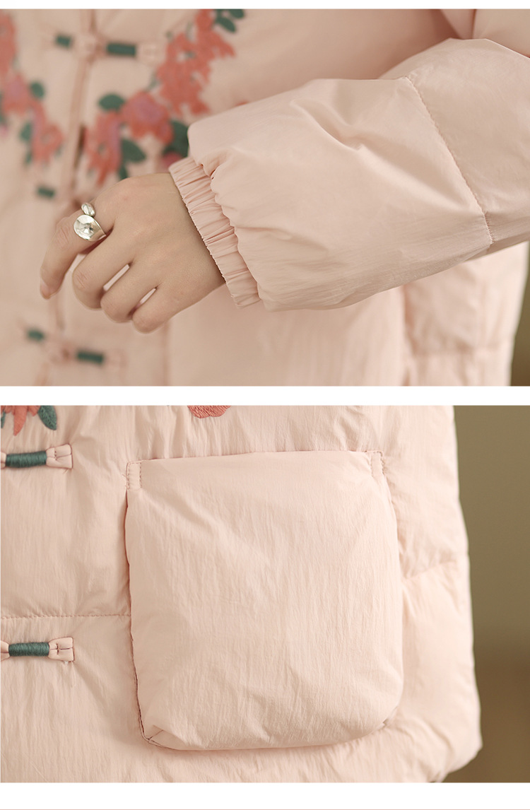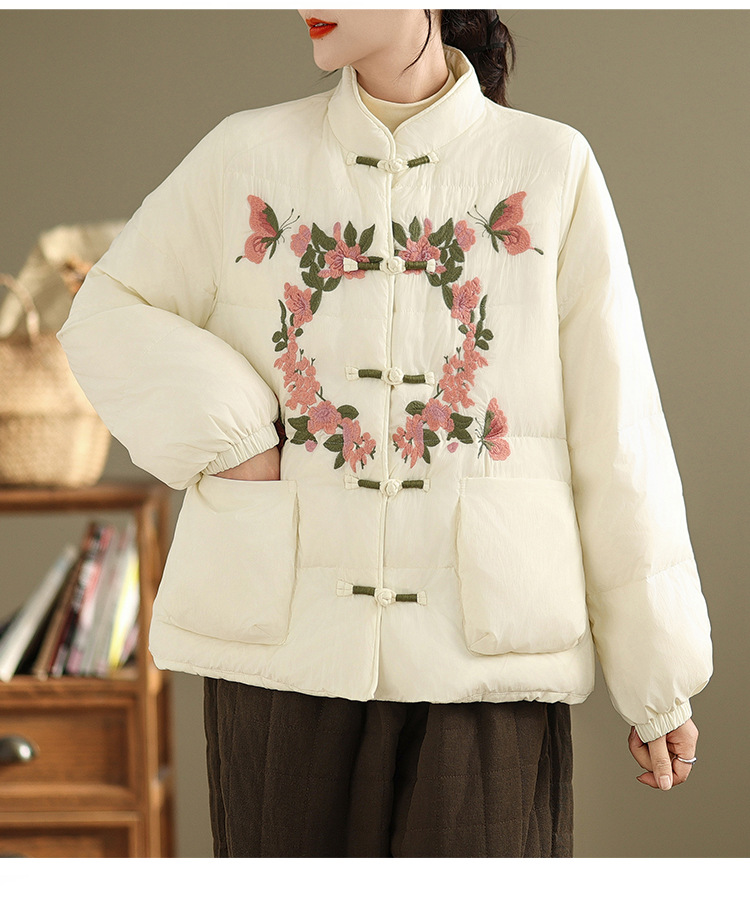 Real shot original winter 2025 new down cotton heavy industry embroidered stand-up collar cotton jacket women's light national style buckle jacket