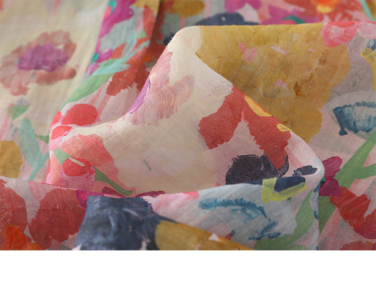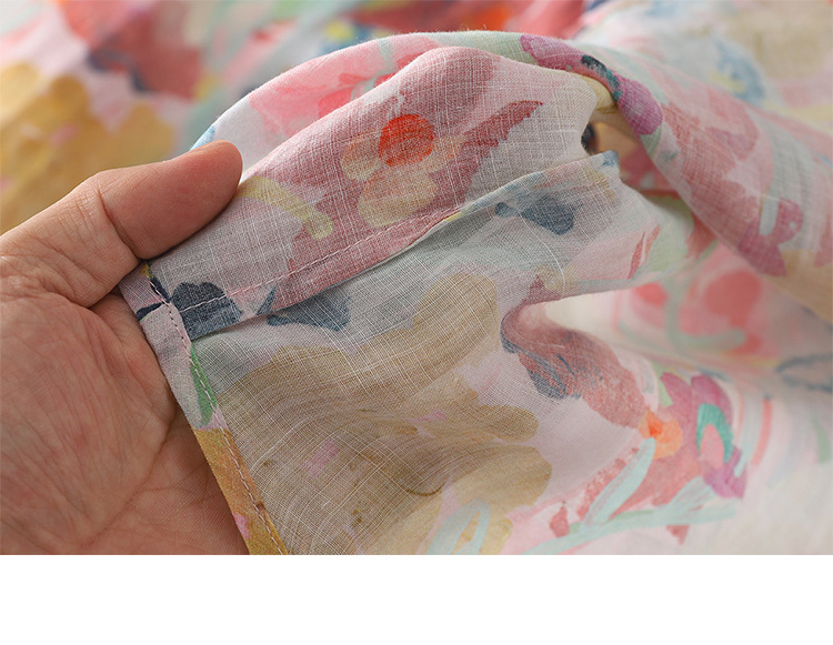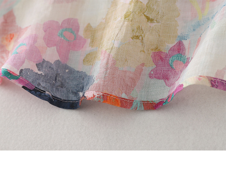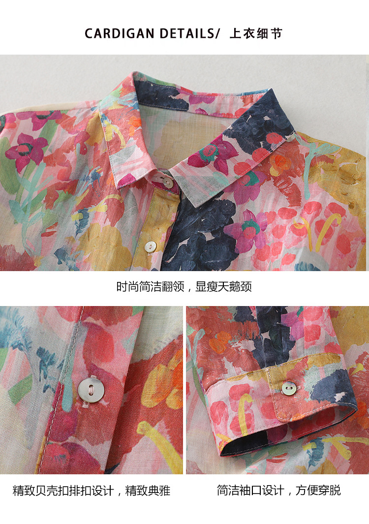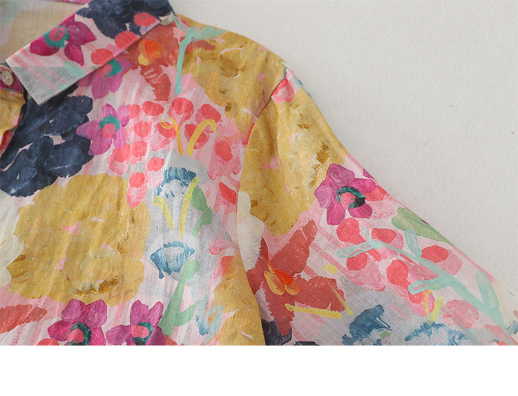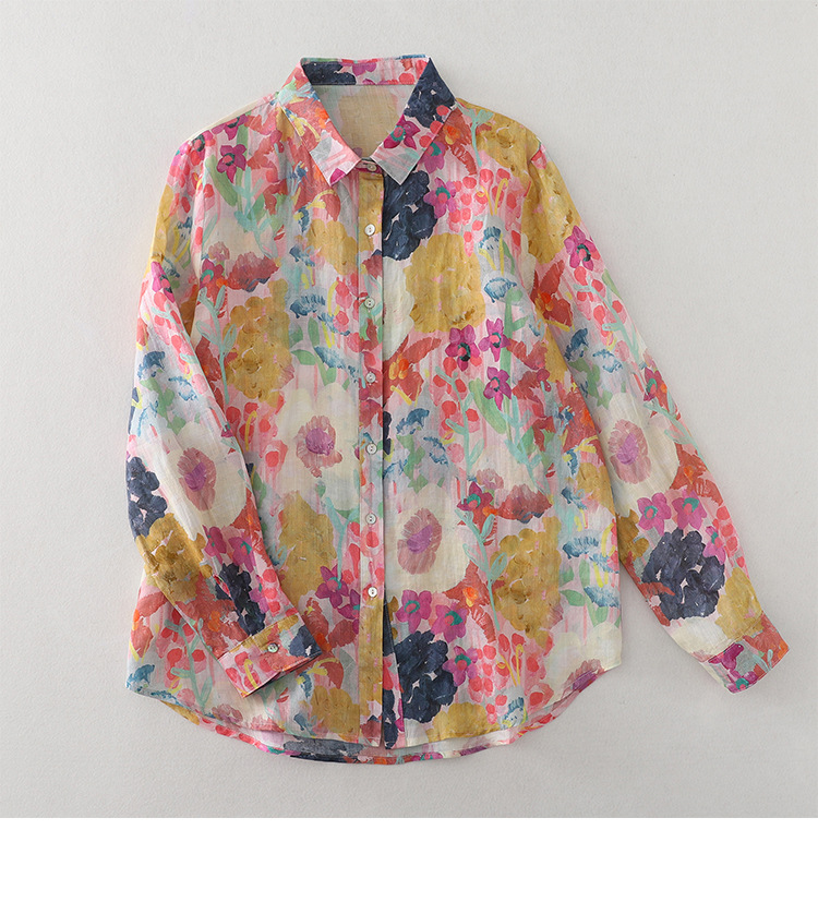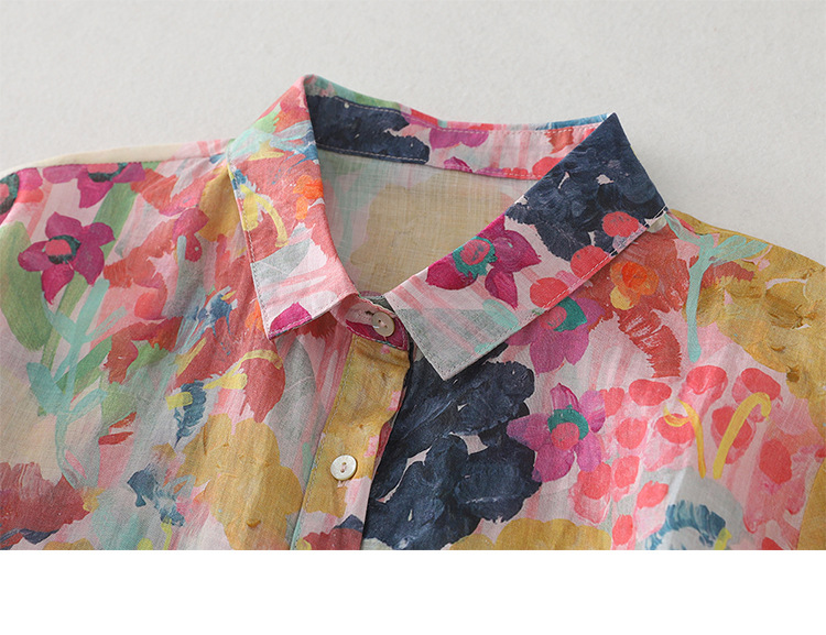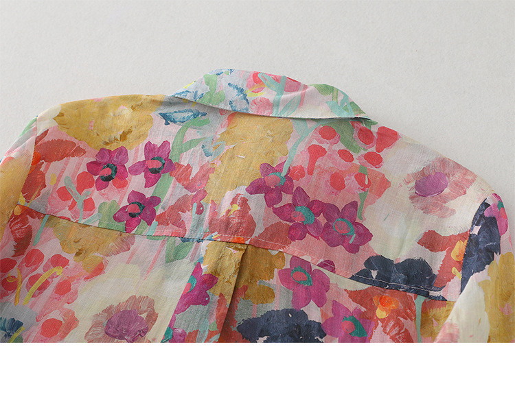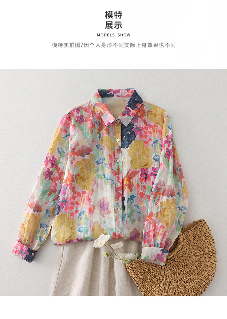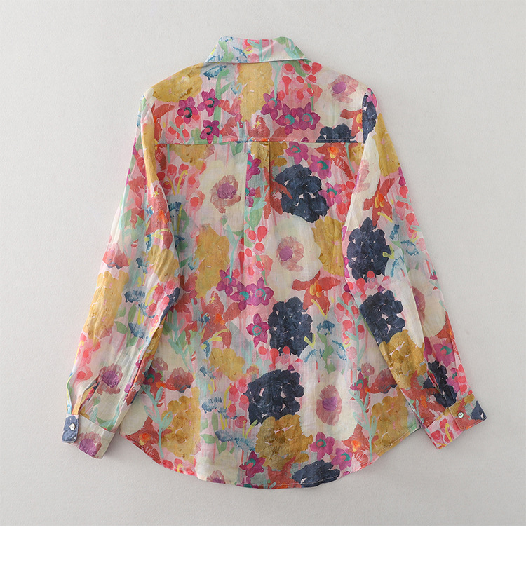 Real shot Spring 2025 new cotton and linen floral French niche printing long-sleeved shirt blouse #1077
