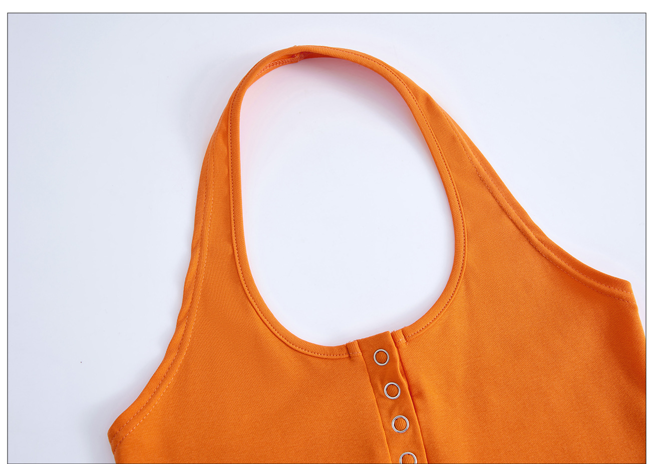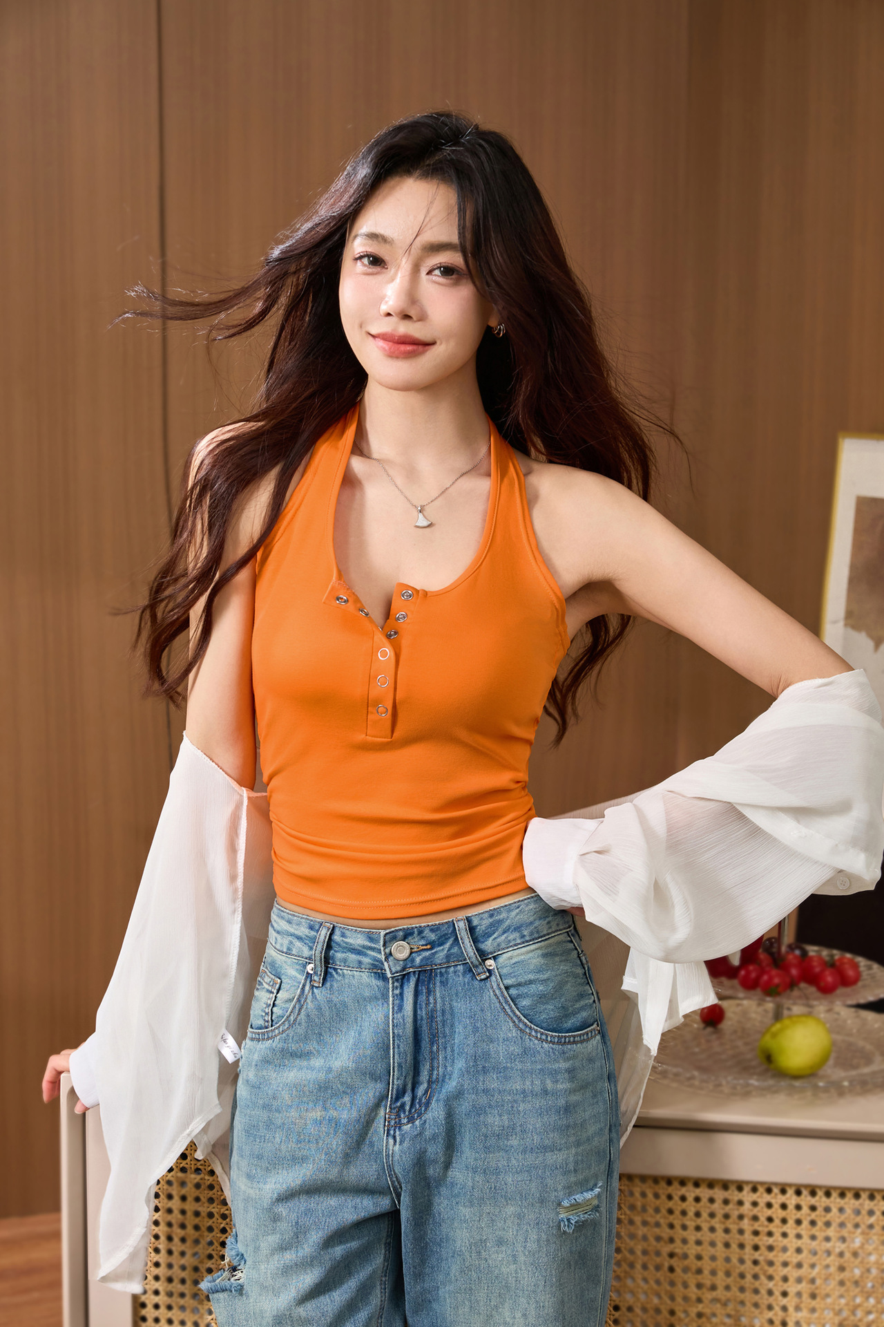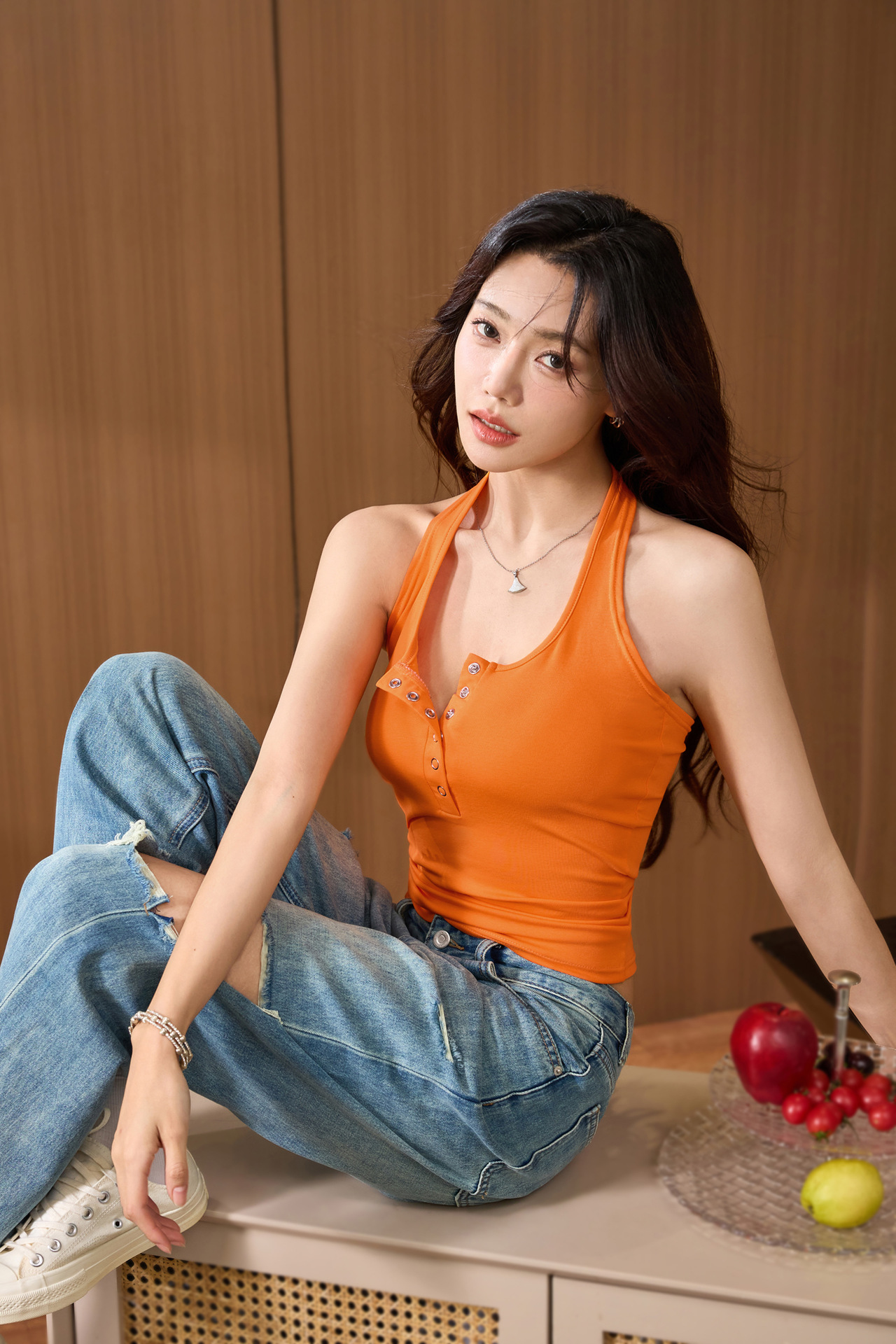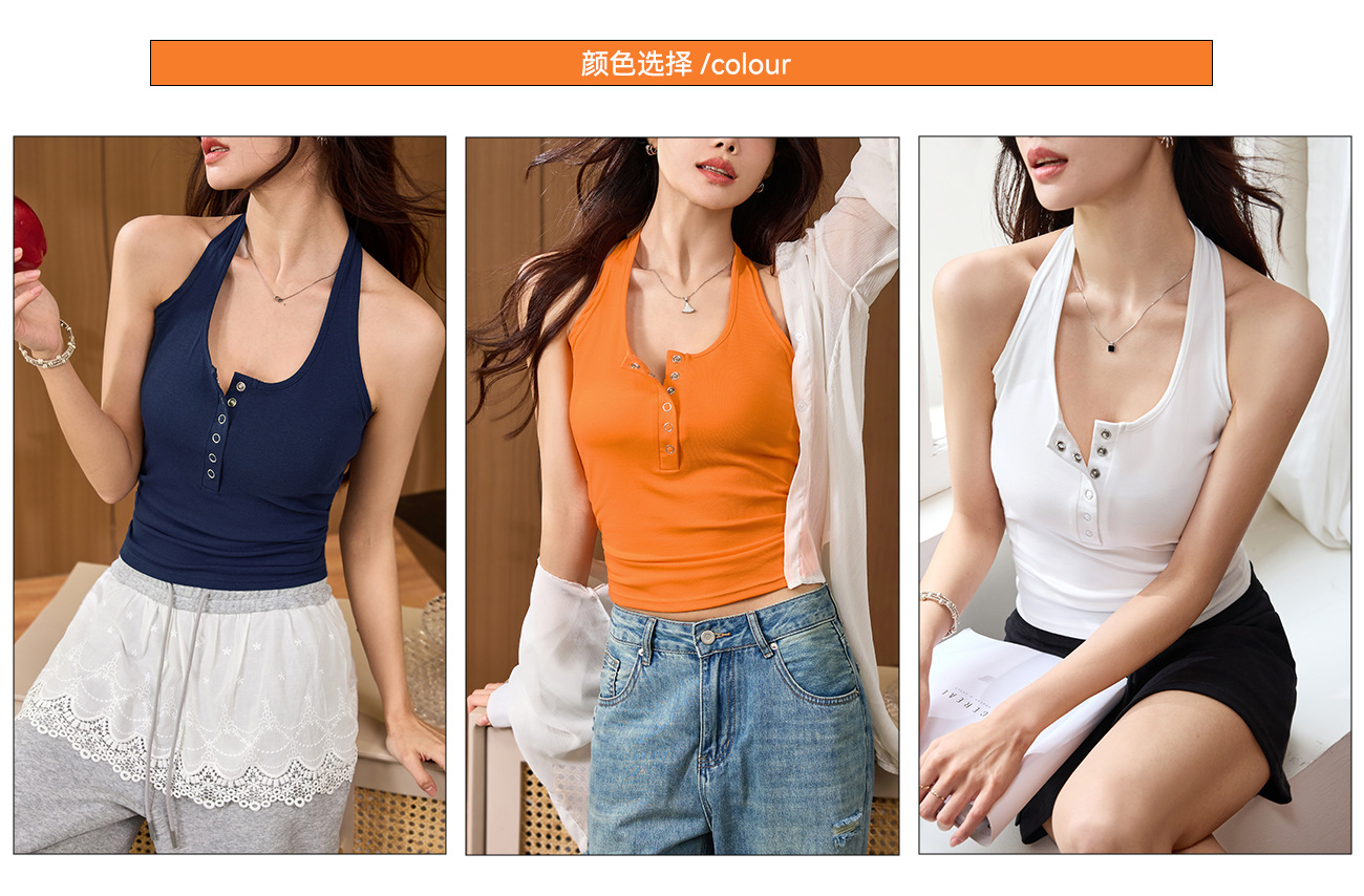 #Redo buttons #Cotton temperament Spice girl sexy vest neck sling top women's summer halter back bottoming top