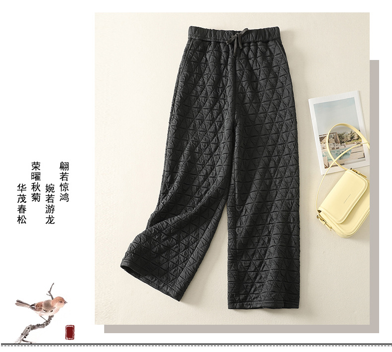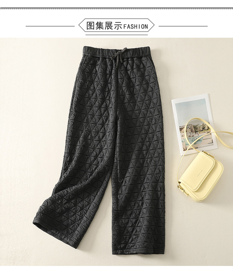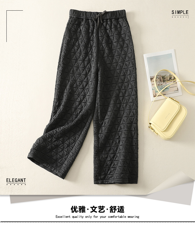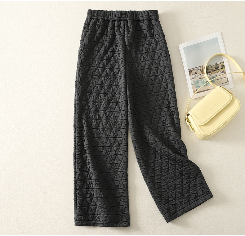 Rhombus drape cotton pants women's winter 2025 new casual warm loose large size wide leg pants