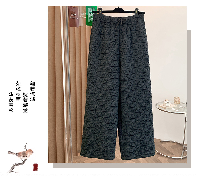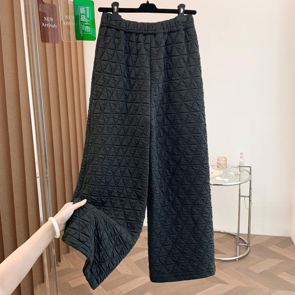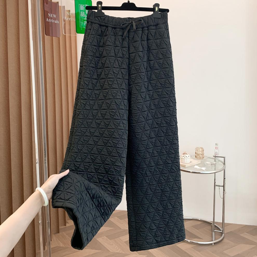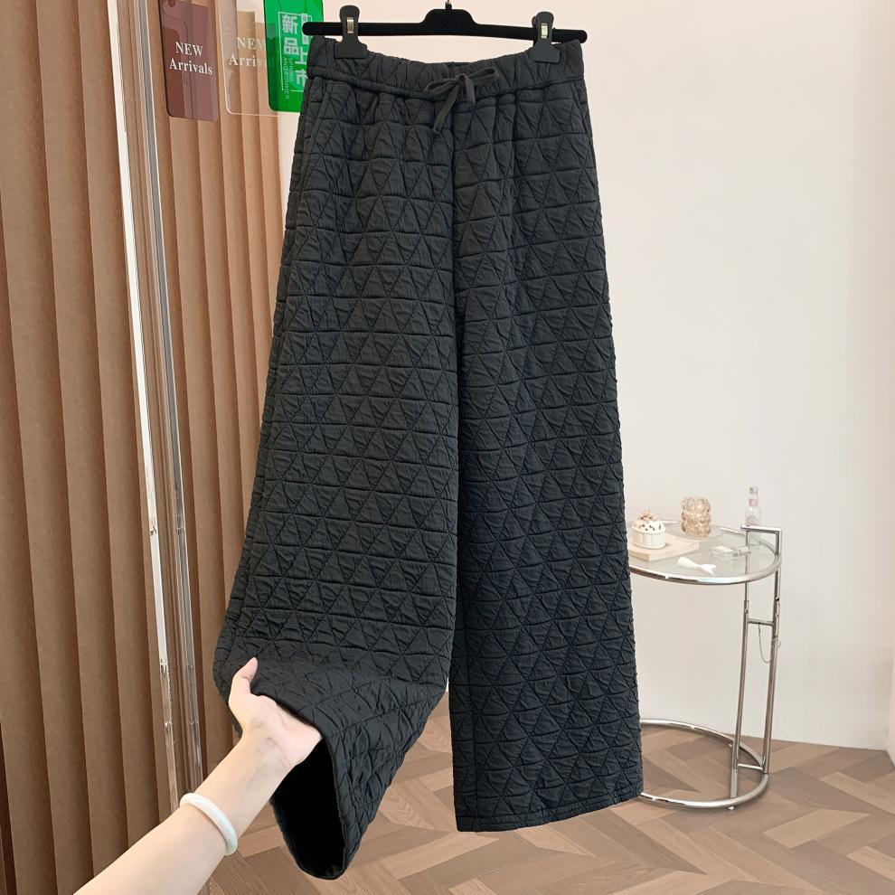 Rhombus drape cotton pants women's winter 2025 new casual warm loose large size wide leg pants