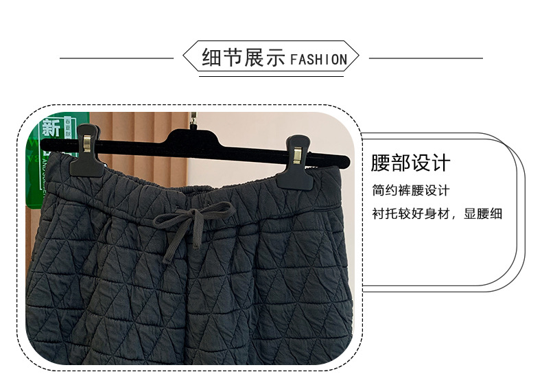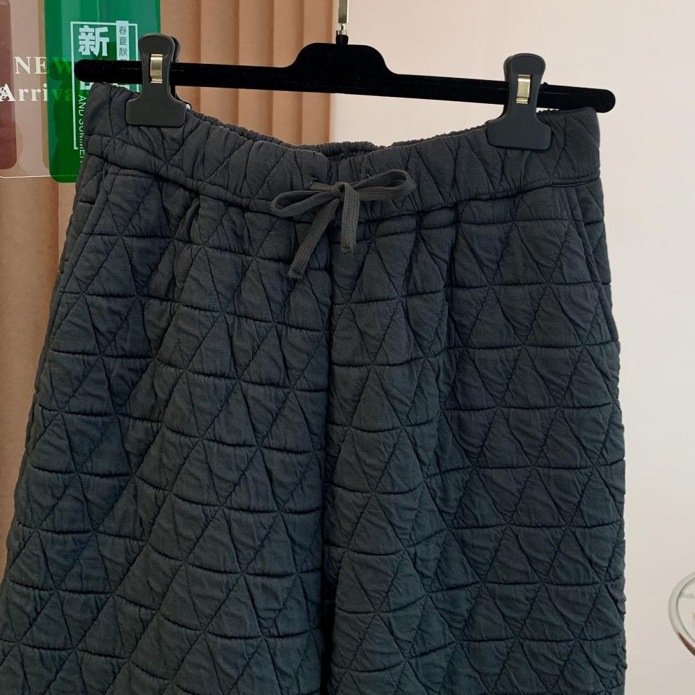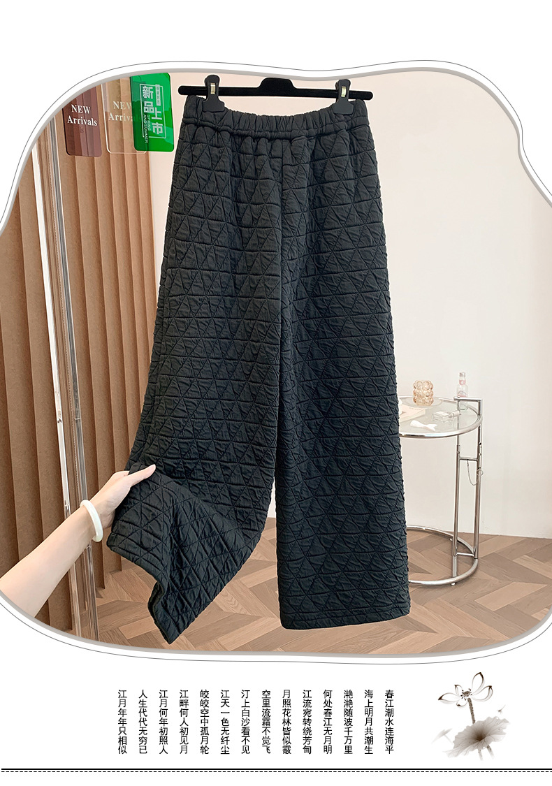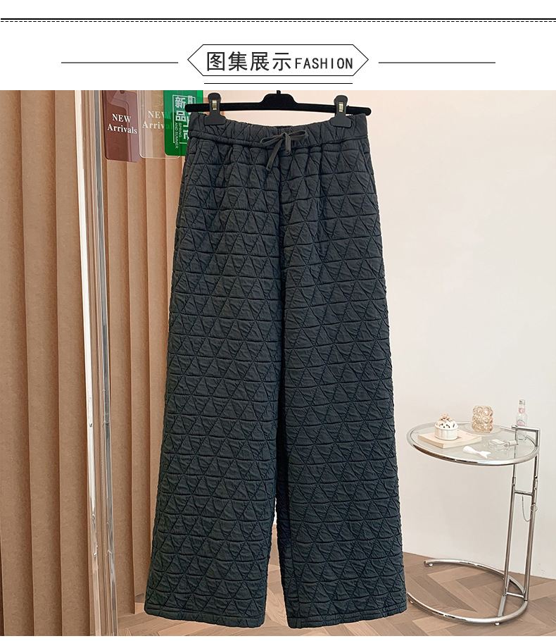 Rhombus drape cotton pants women's winter 2025 new casual warm loose large size wide leg pants
