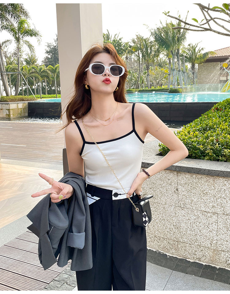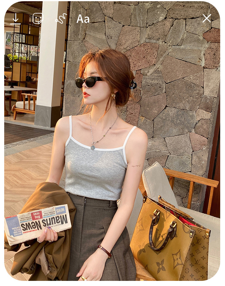 Selection of high elastic threaded temperament versatile sling vest for women's summer outer wear 2026 new pure cotton sleeveless bottoming top